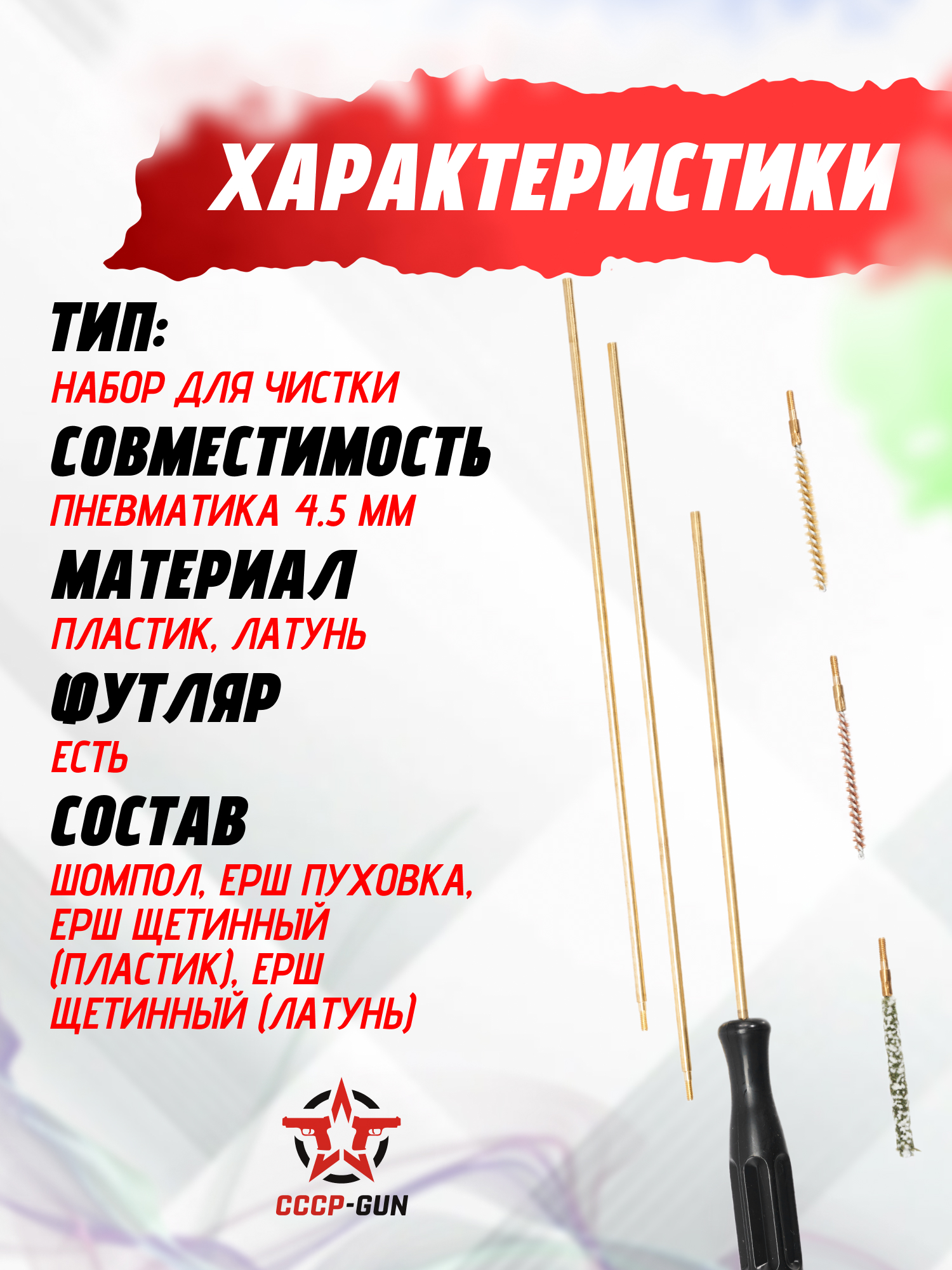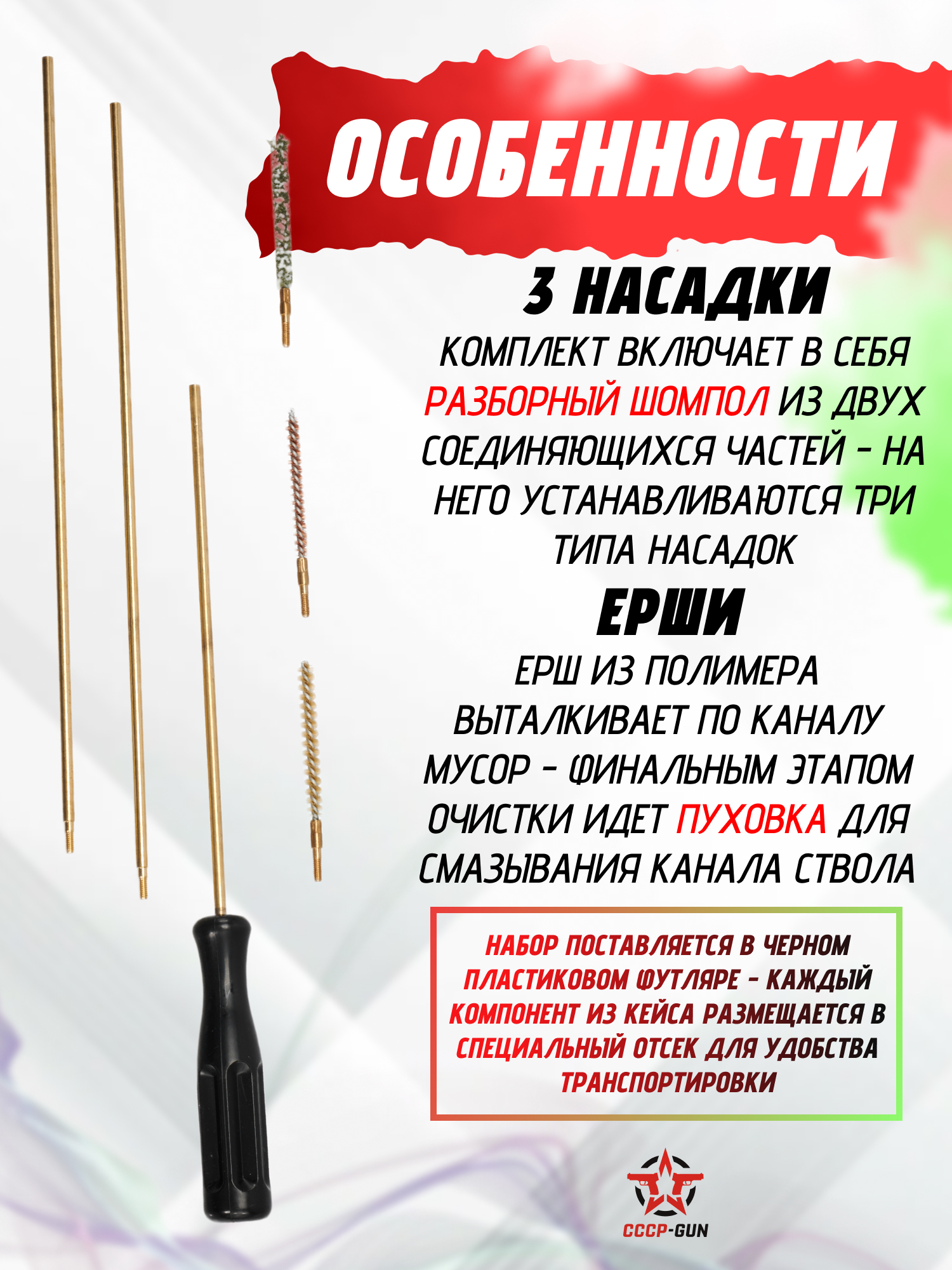 | Комплект поставки | Шомпол сборный, 3 ершика различной жесткости, пластиковый пенал, упаковка |