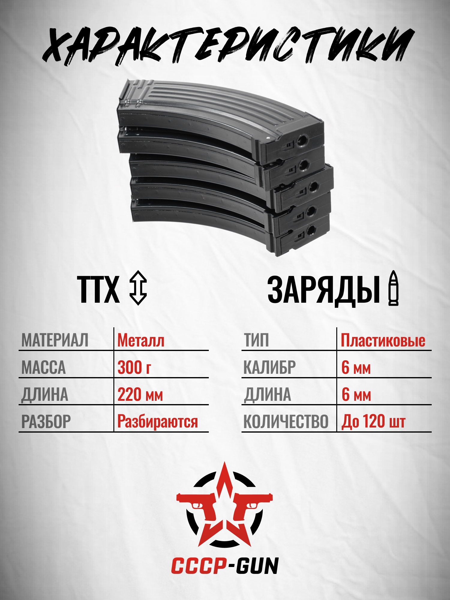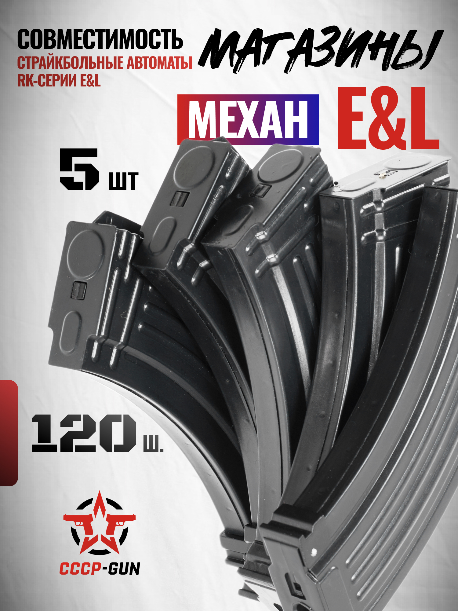 Набор механических магазинов E&L EL-47X5 (120 шаров, RK-47, металл, 5 шт)