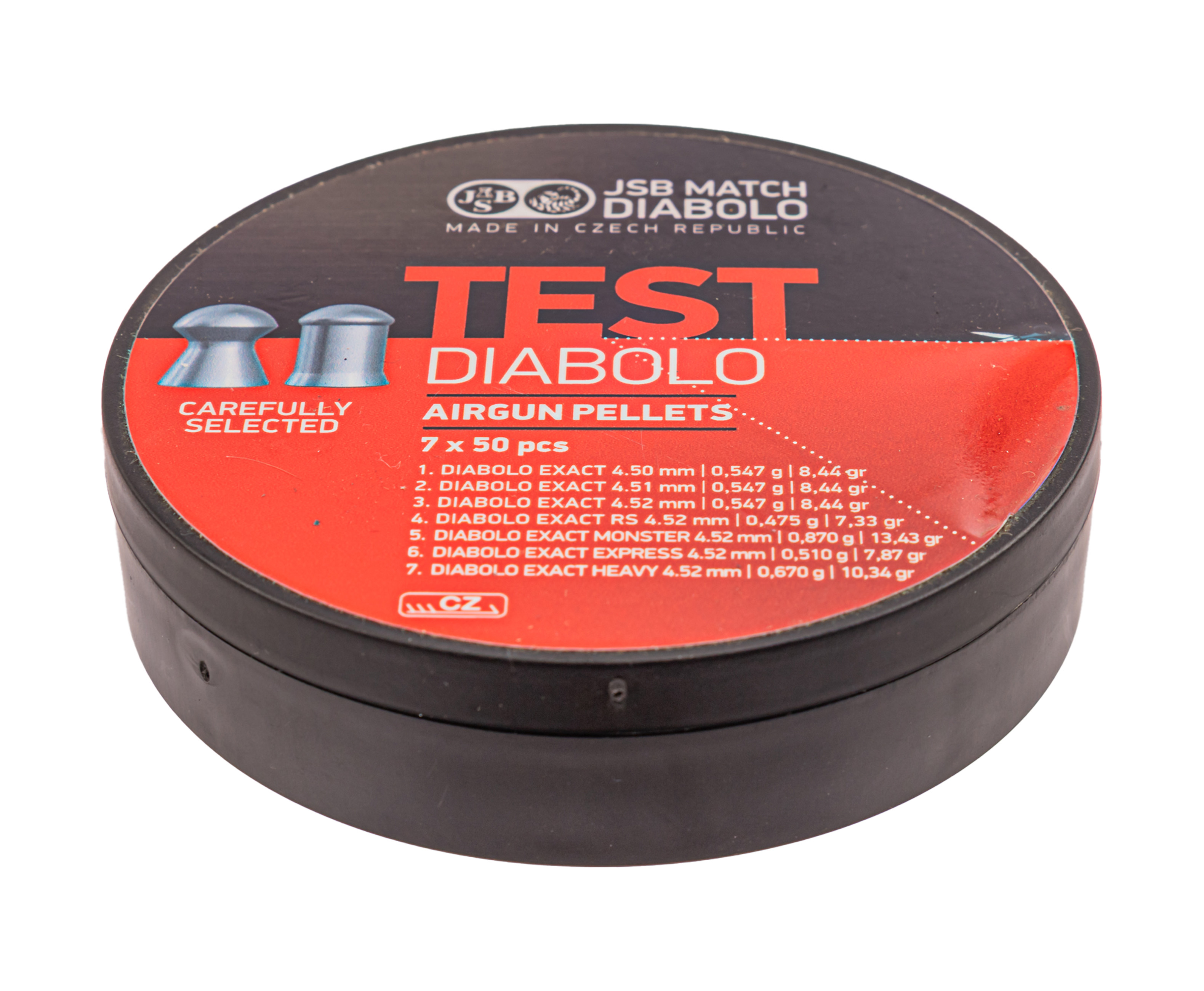 | Комплект поставки | Пули JSB Exact RS Diabolo (4.52 мм) - 50 шт, пули JSB Exact Express Diabolo (4.52 мм) - 50 шт, пули JSB Exact Diabolo (4.50 мм) - 50 шт, пули JSB Exact Diabolo (4.51 мм) - 50 шт, пули JSB Exact Diabolo (4.52 мм) - 50 шт, пули JSB Exact Heavy Diabolo (4.52 мм) - 50 шт, пули JSB Exact Monster Diabolo (4.52 мм) - 50 шт, упаковка |