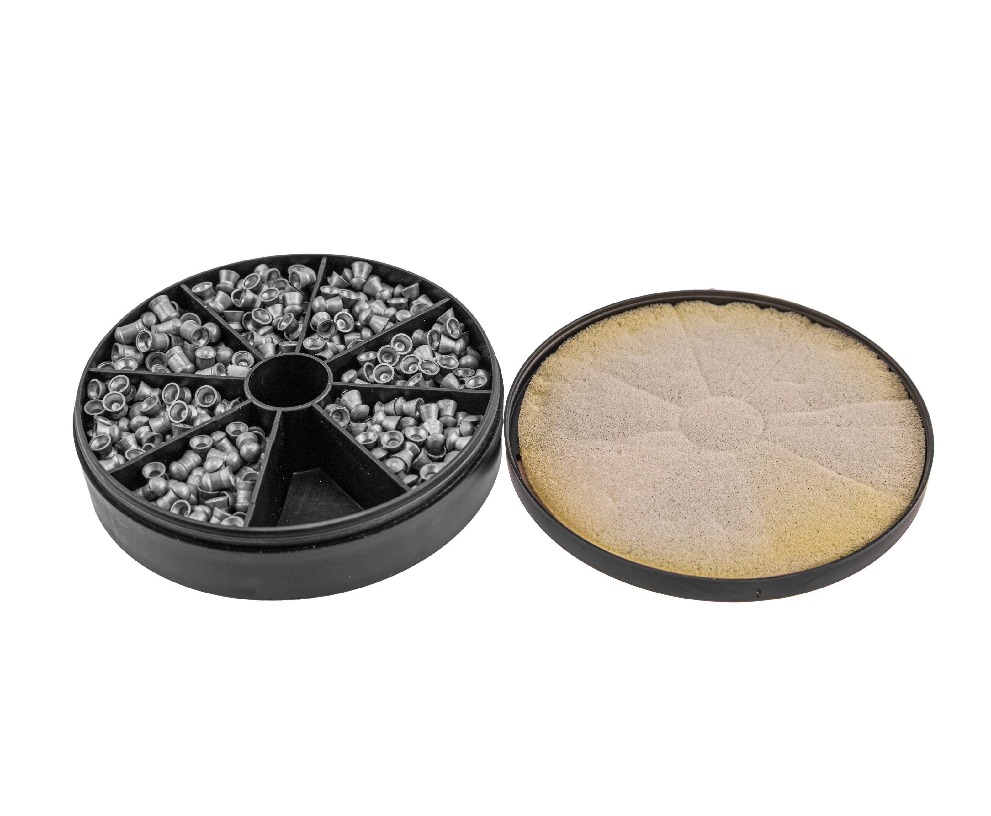 Общая вместимость банки составляет 350 единиц, что предоставляет пользователю достаточный объем зарядов для полноценного отстрела и выявления требуемой развесовки боеприпаса. Обозреваемые пули для пневматики JSB 4.5 обладают воланчиковой формой с полусферической геометрией головной части - гладкая передняя часть снаряда повышает аэродинамические качества при движении, а расширяющаяся юбка стабилизирует траекторию после вылета из ствола.