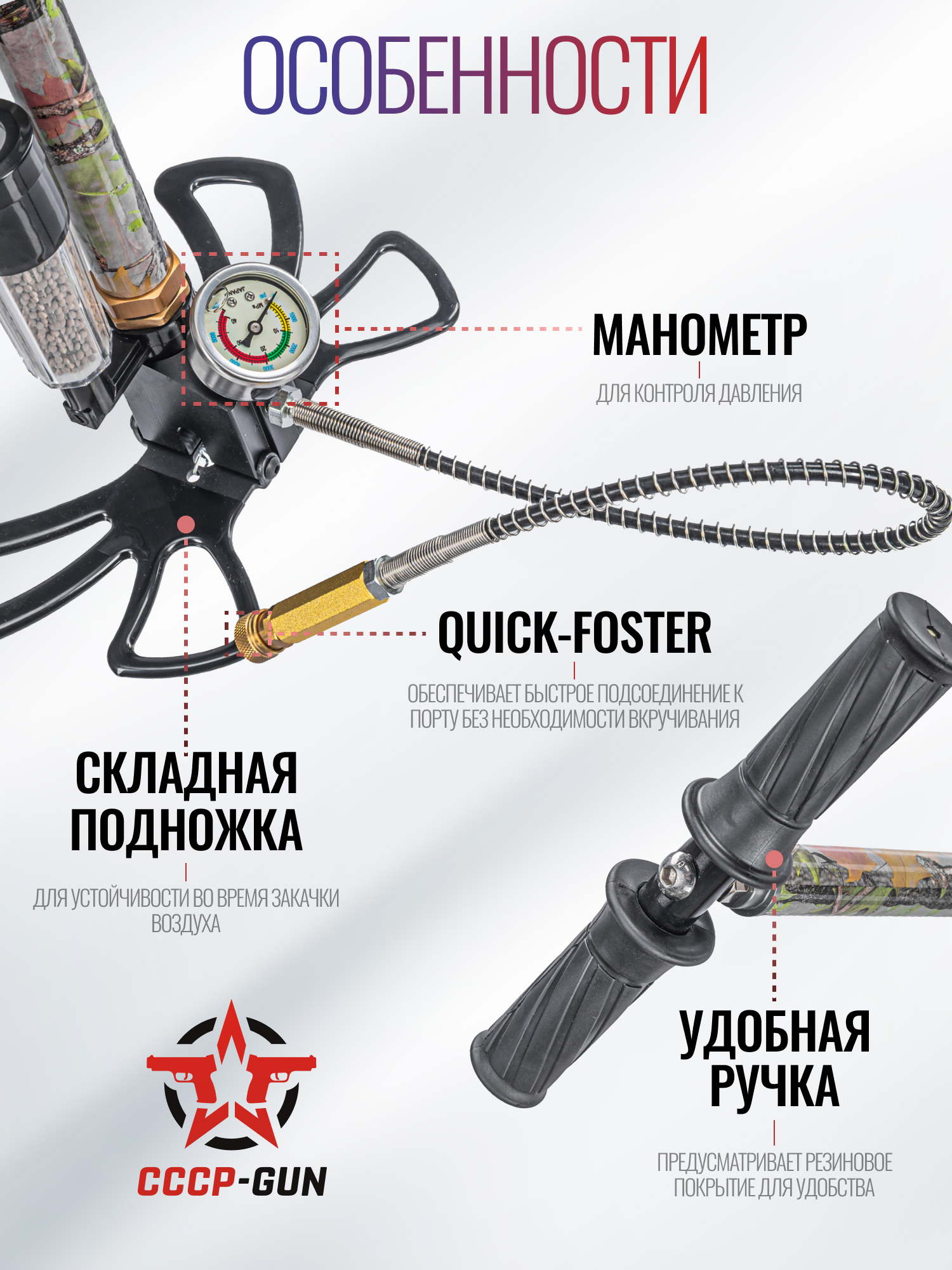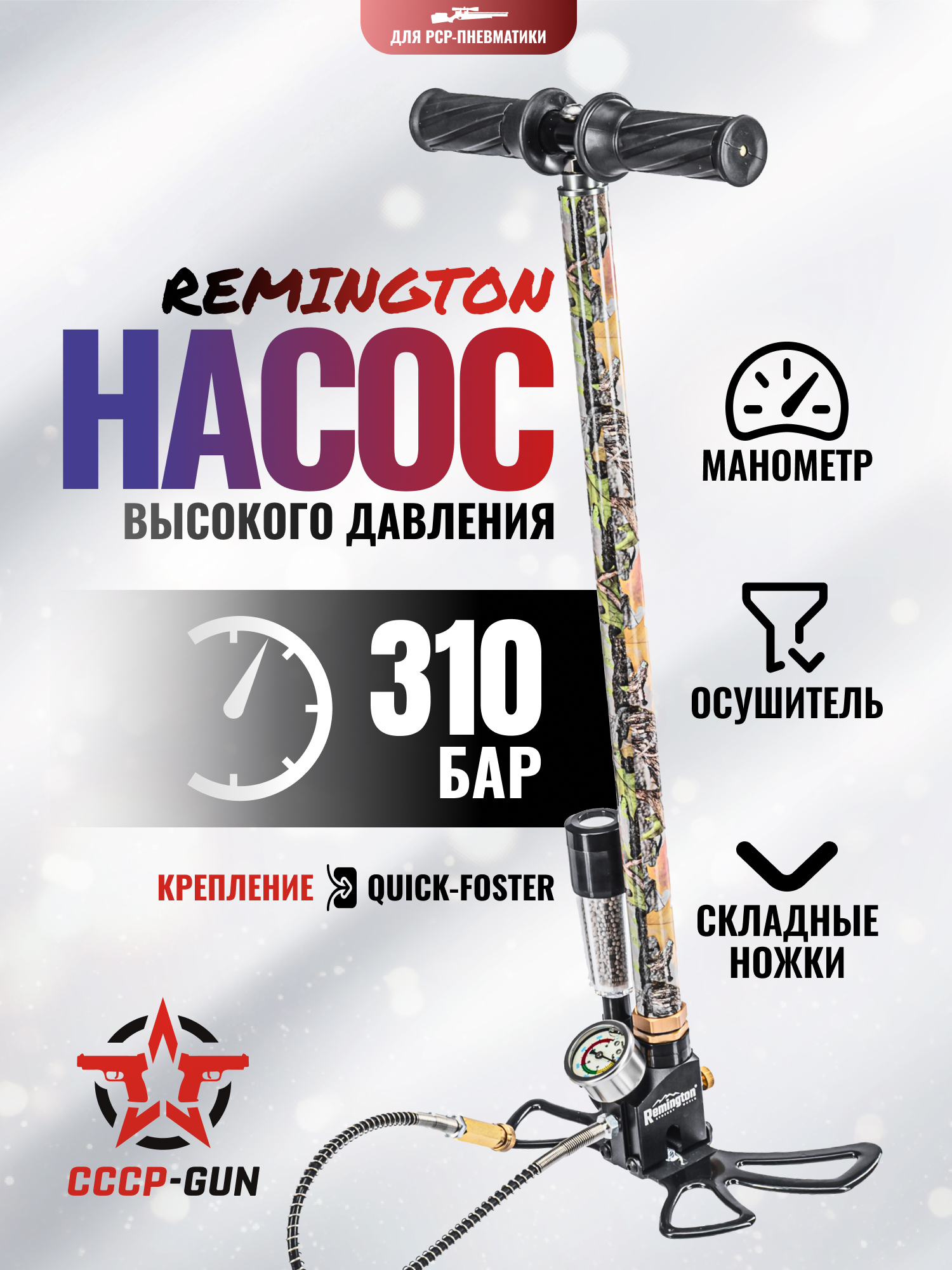 Насос высокого давления Remington (осушитель, складной, манометр, 310 Бар)