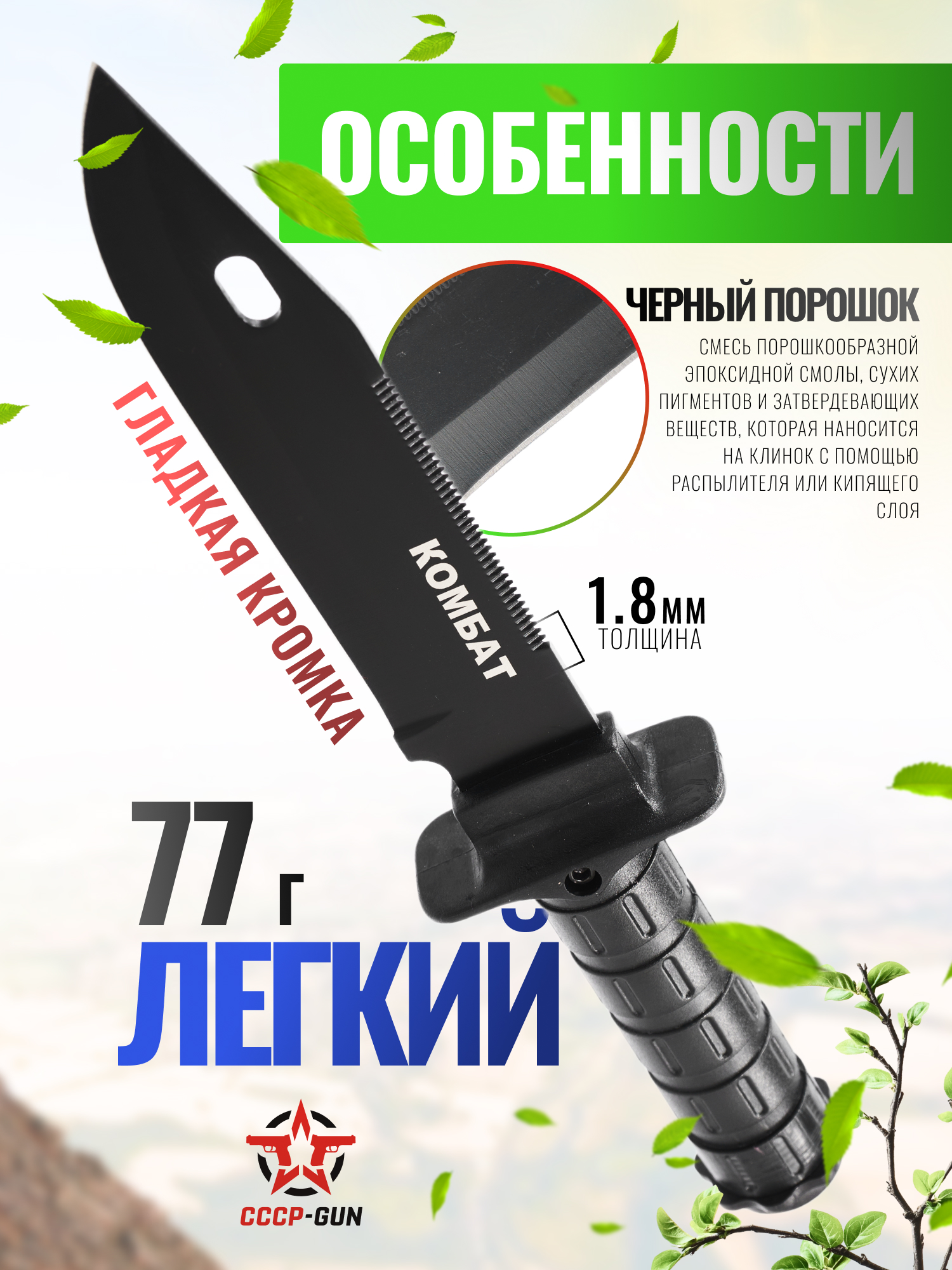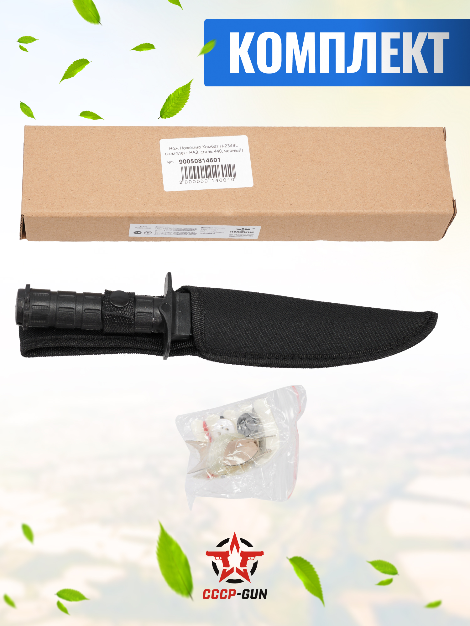 Нож Ножемир Комбат H-234BL (комплект НАЗ, сталь 440, черный)