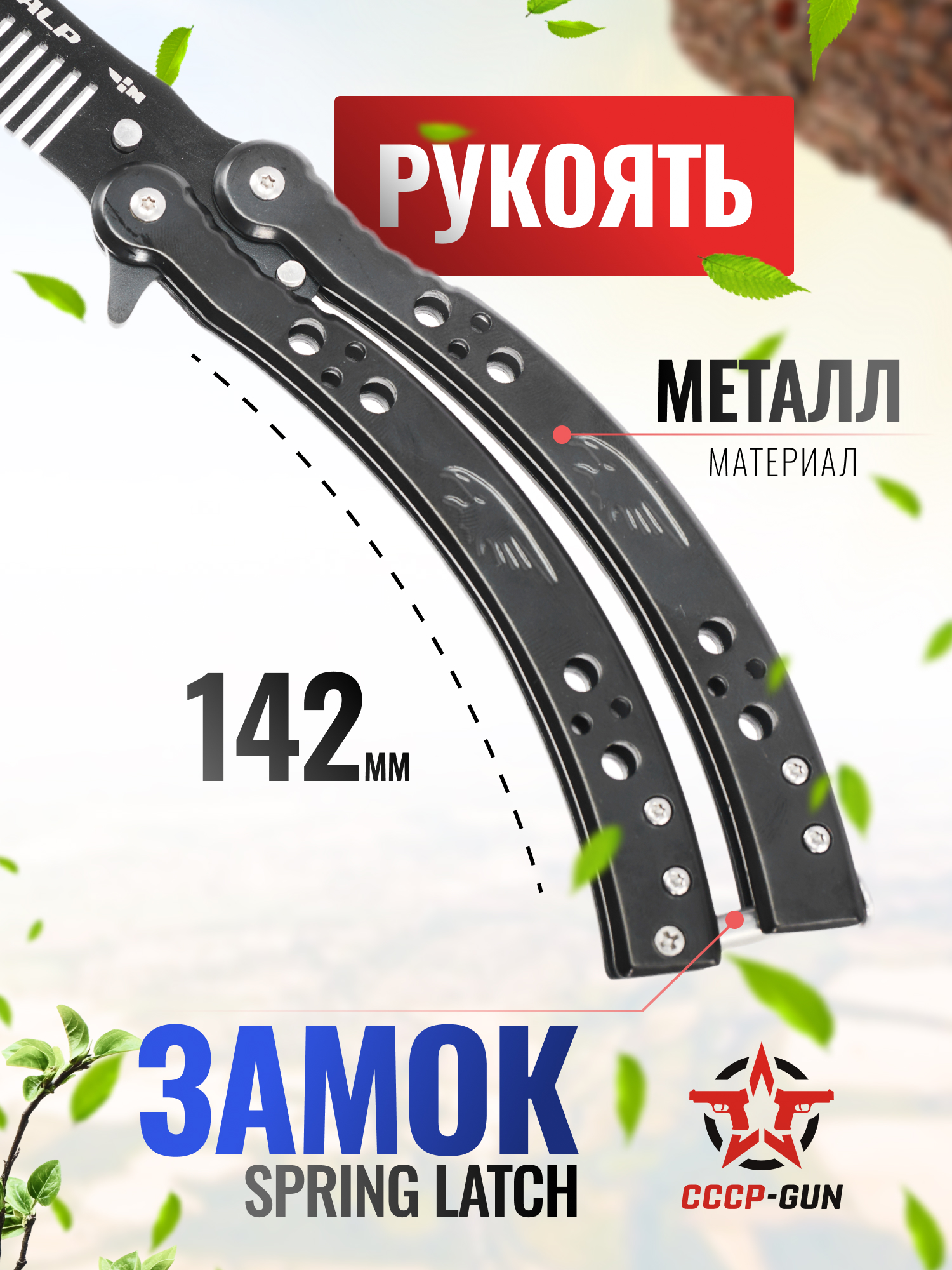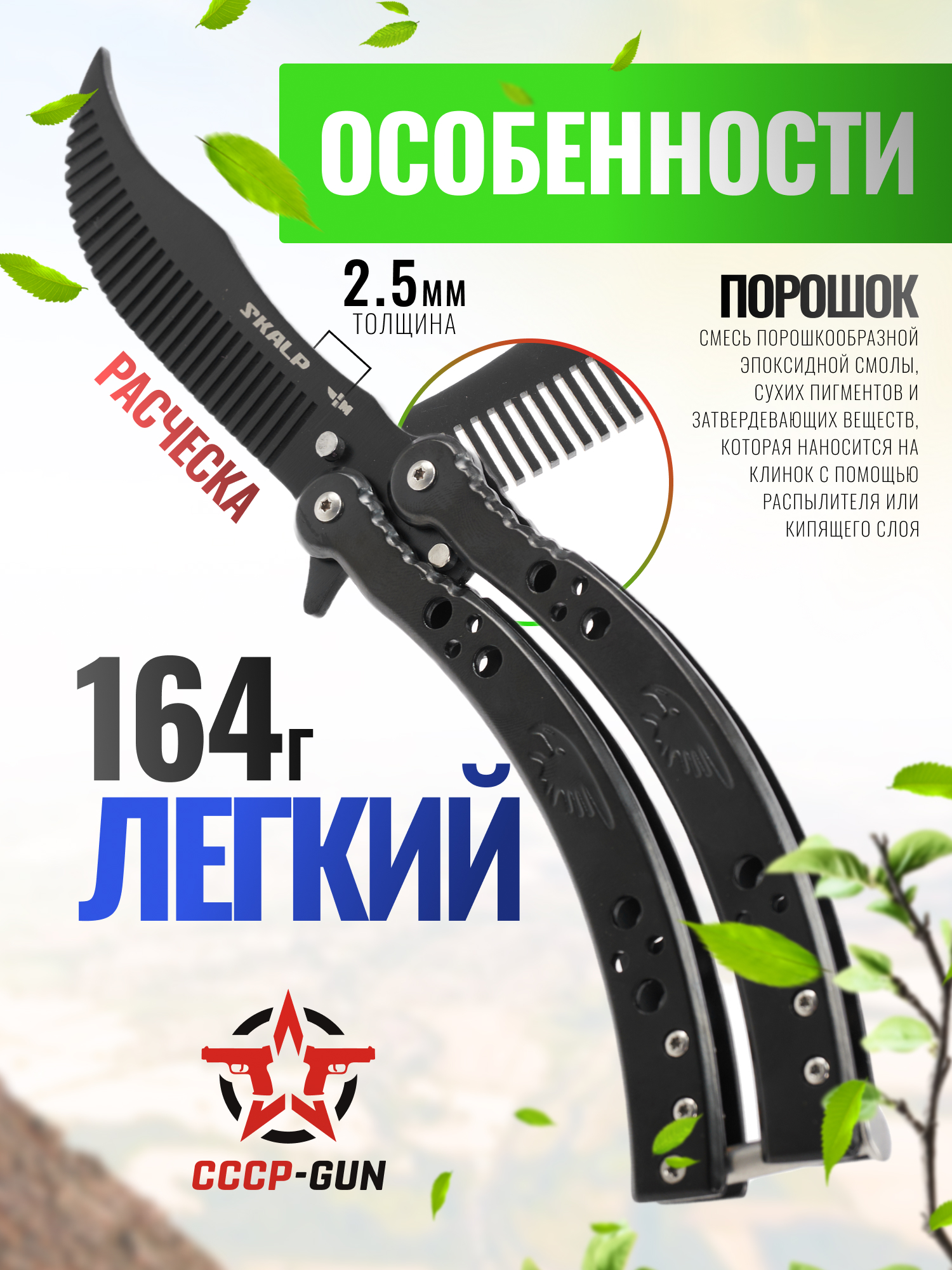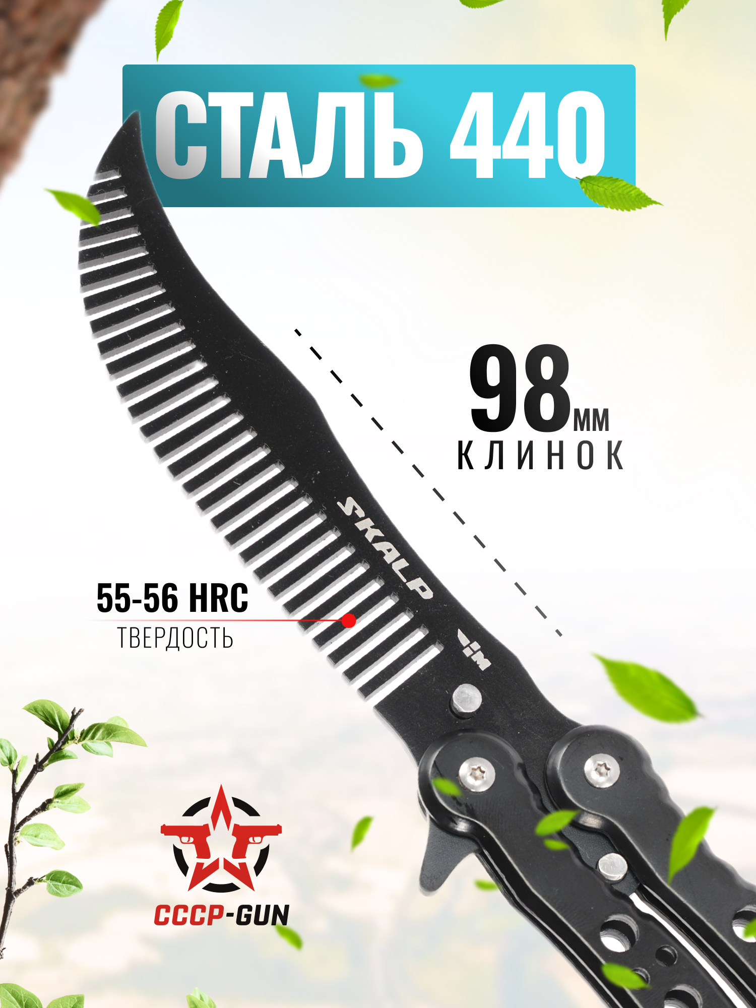 Нож тренировочный Ножемир Skalp BRA-27 (бабочка, расческа, черный)