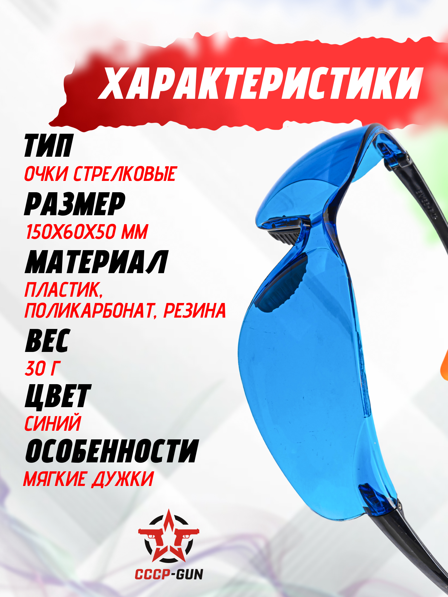 Очки защитные Zark Arms Z4-OZ001G (голубые, стрелковые)