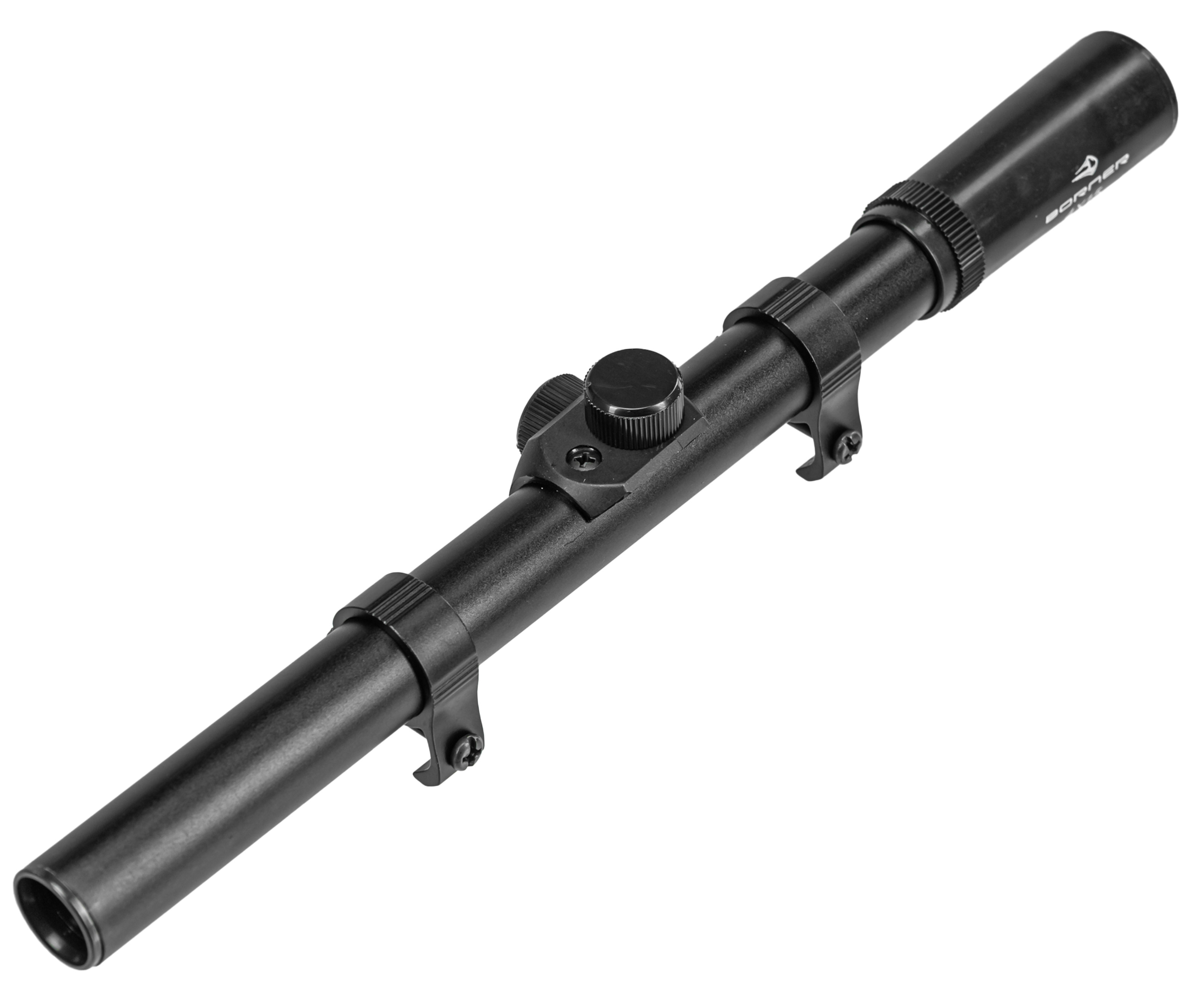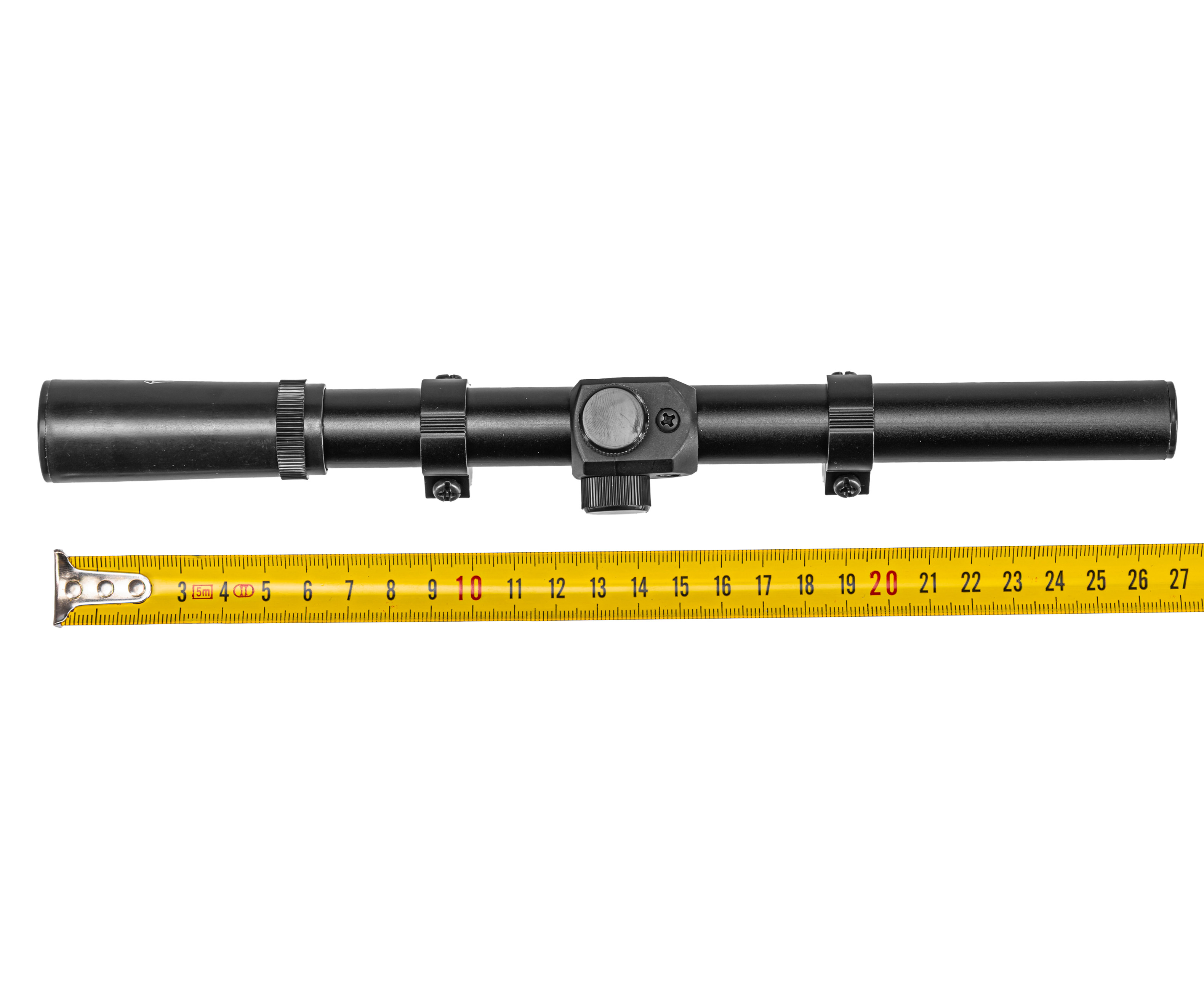 Обозреваемый экземпляр относится к категории базовых образцов, которые помогут сделать первые шаги в освоении стрельбы с применением оптики. Модель обладает фиксированной кратностью 4х - универсальное приближение для большинства пневматических винтовок, позволяющее работать на эффективных дальностях такого оружия. Конструкция не перегружена сложными элементами, что упрощает знакомство с оптикой для новичков.