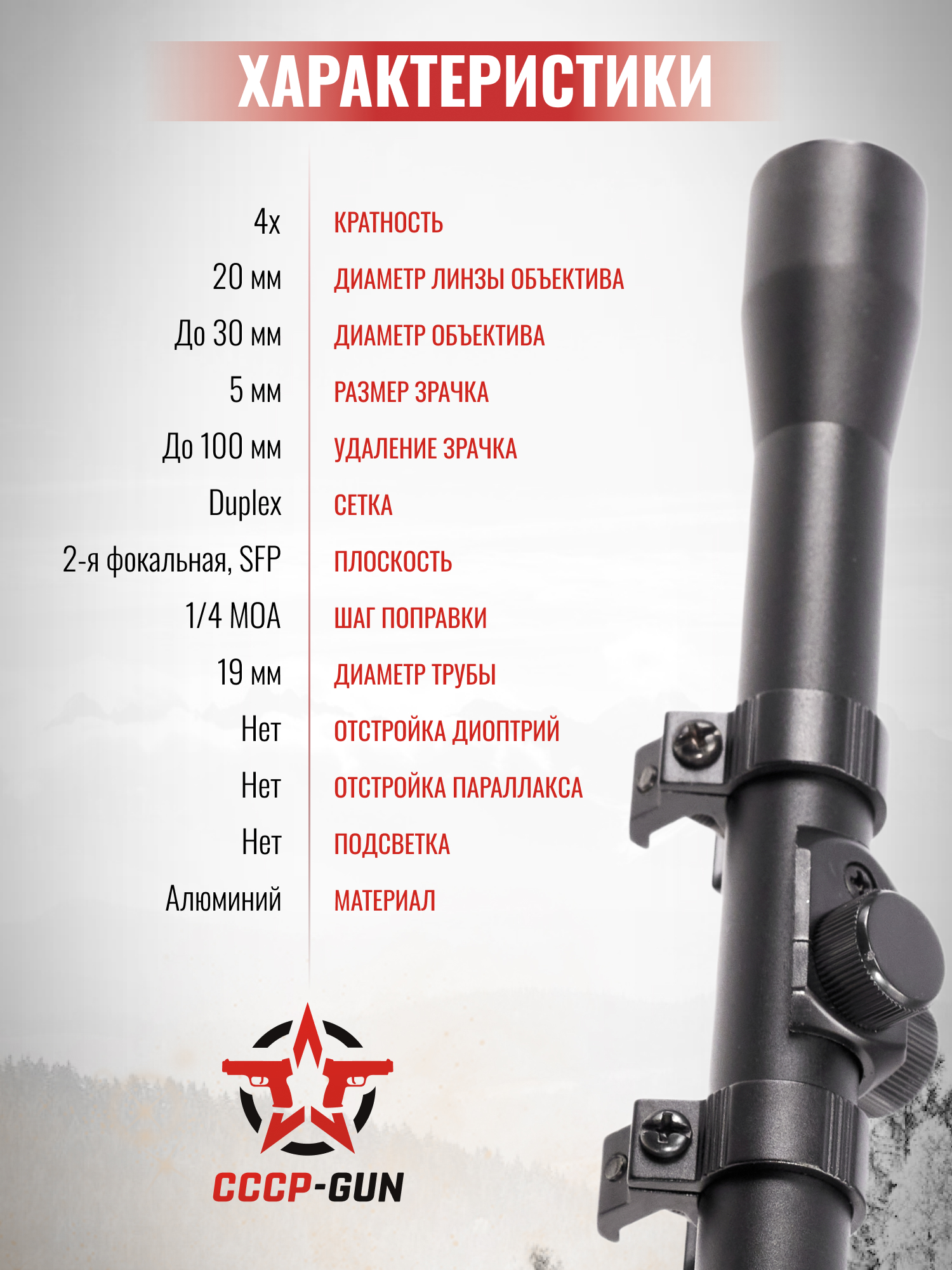 | Комплектация | Оптический прицел, упаковка, кольца крепления |