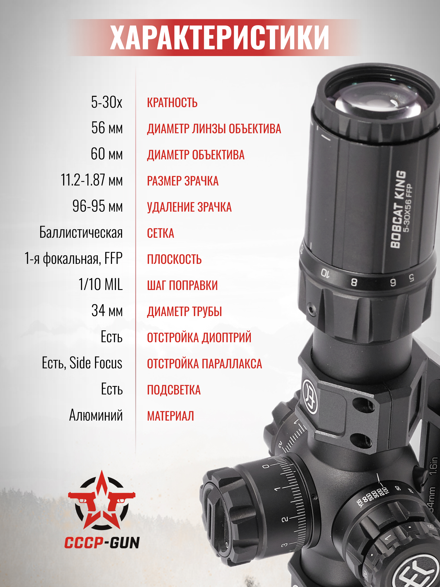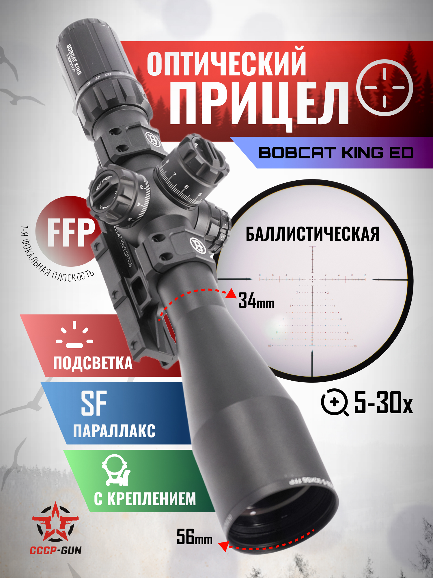 Оптический прицел Bobcat King ED 5-30x56 SFIR FFP (34 мм, подсветка, Zero Stop)