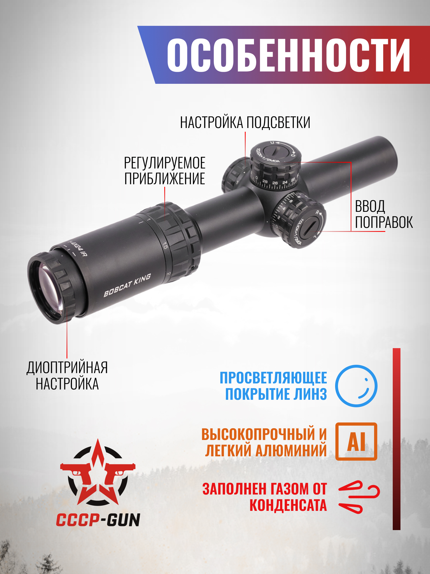 Оптический прицел Bobcat King HD 1-6x24 IR (30 мм, подсветка, Крест)