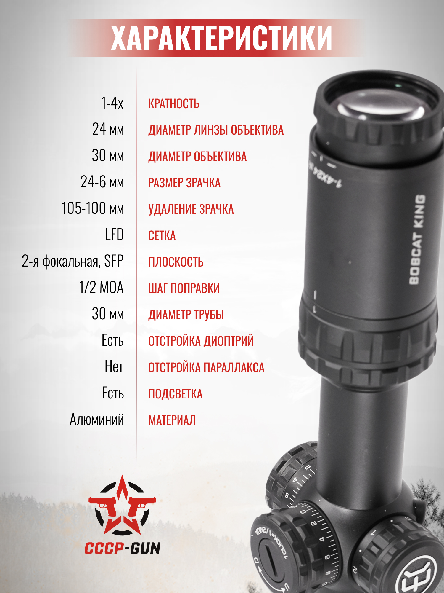 Оптический прицел Bobcat King HD 1-4x24 IR (30 мм, подсветка, LFD)