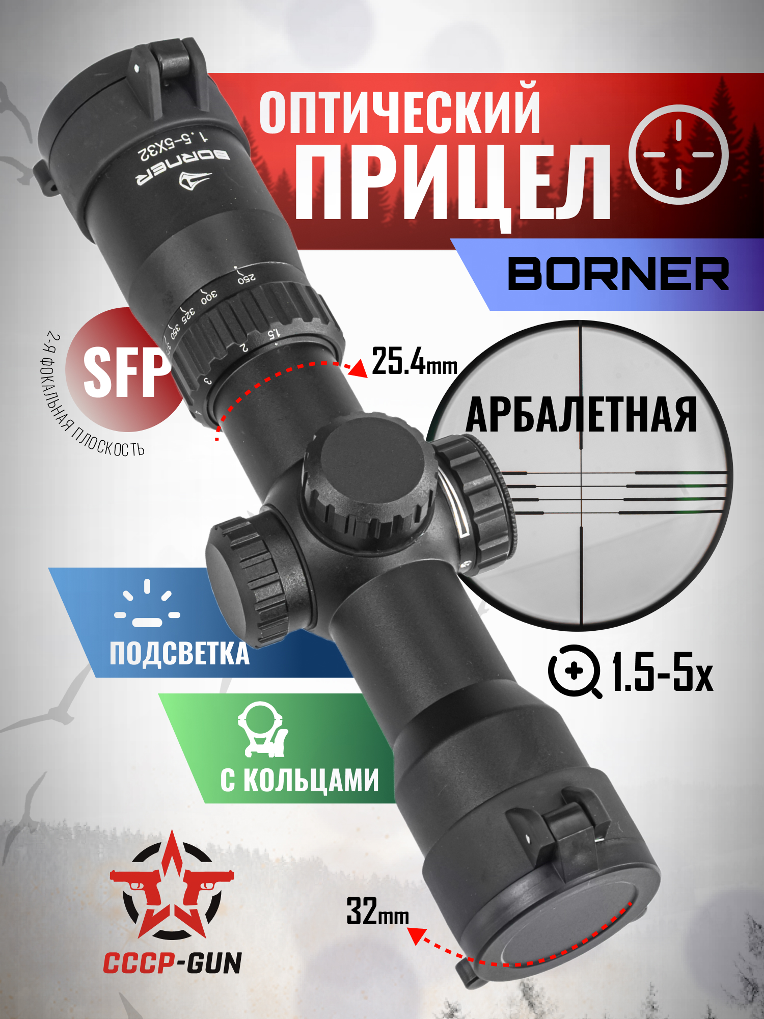 Оптический прицел Borner 4x32 EG (Weaver, для арбалета, подсветка, 25.4 мм)