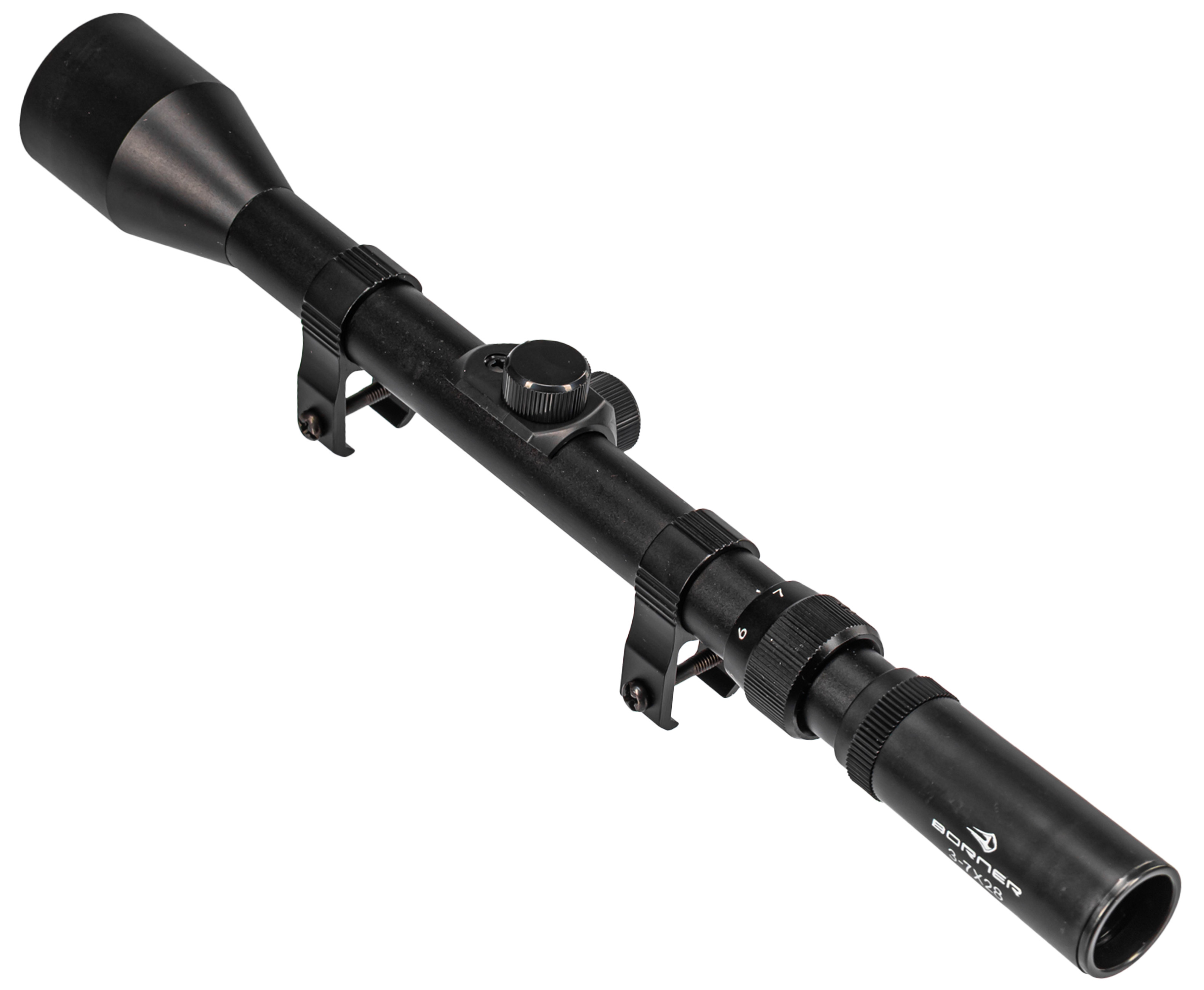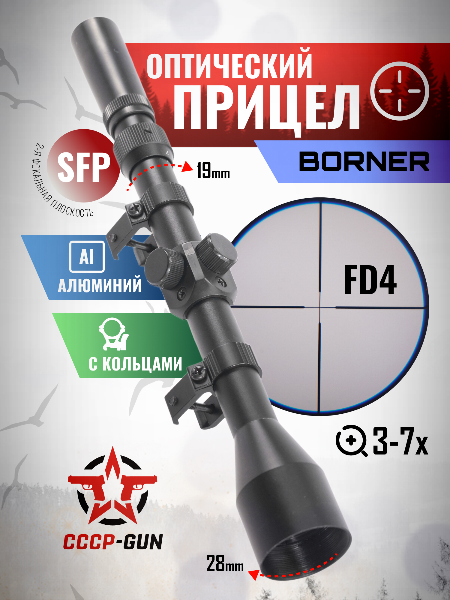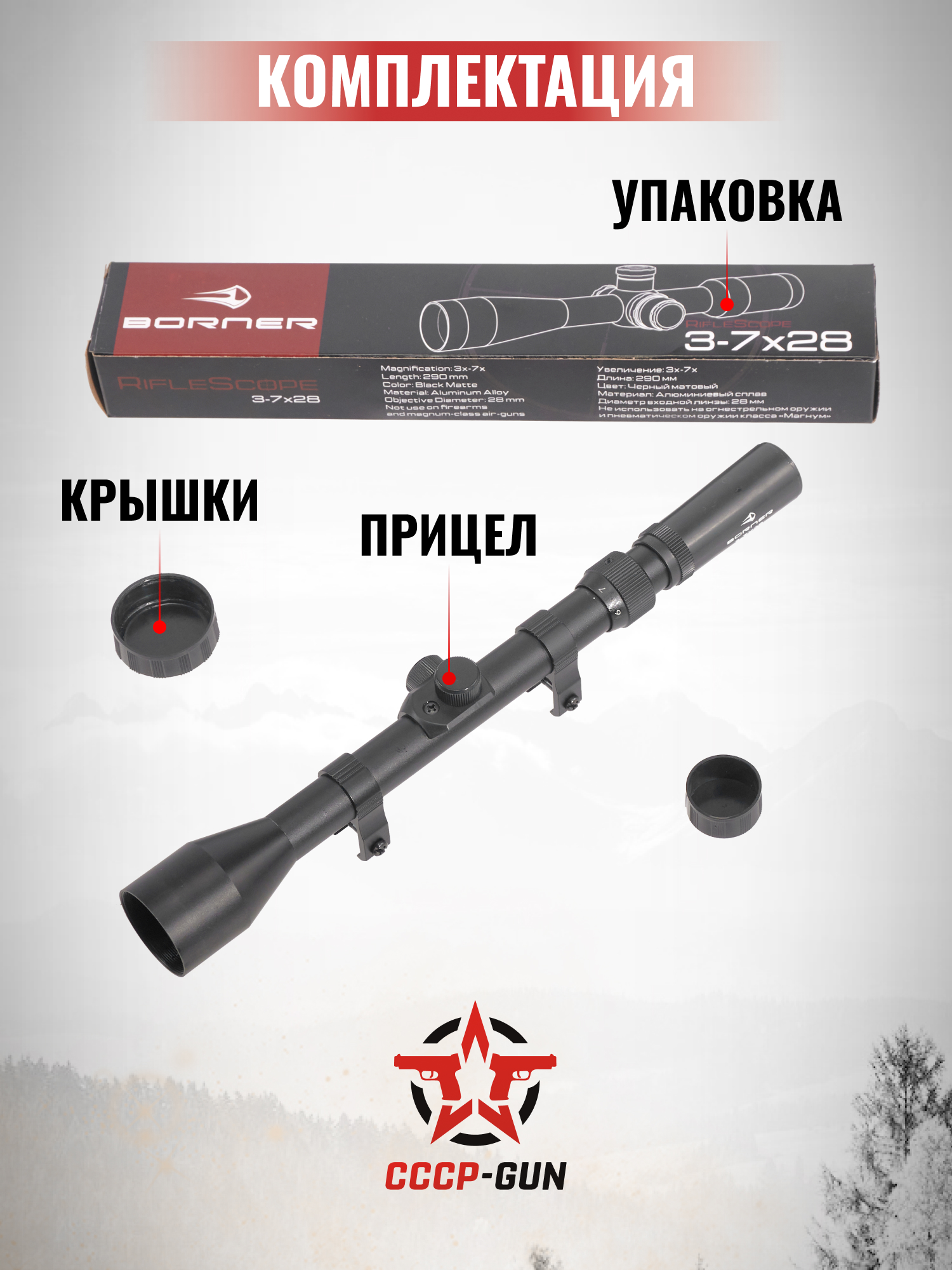 Образец обладает 28 миллиметровым объективом, что помимо расширения уже упомянутого поля зрения также насыщает трубку прицела Borner светом - благодаря этому обеспечивается ясность картинки и четкость деталей. Как линза объектива, так и окуляра защищена специальными крышками - они не позволят им поцарапаться. Жесткость посадки заглушек исключит сползание под собственным весом.