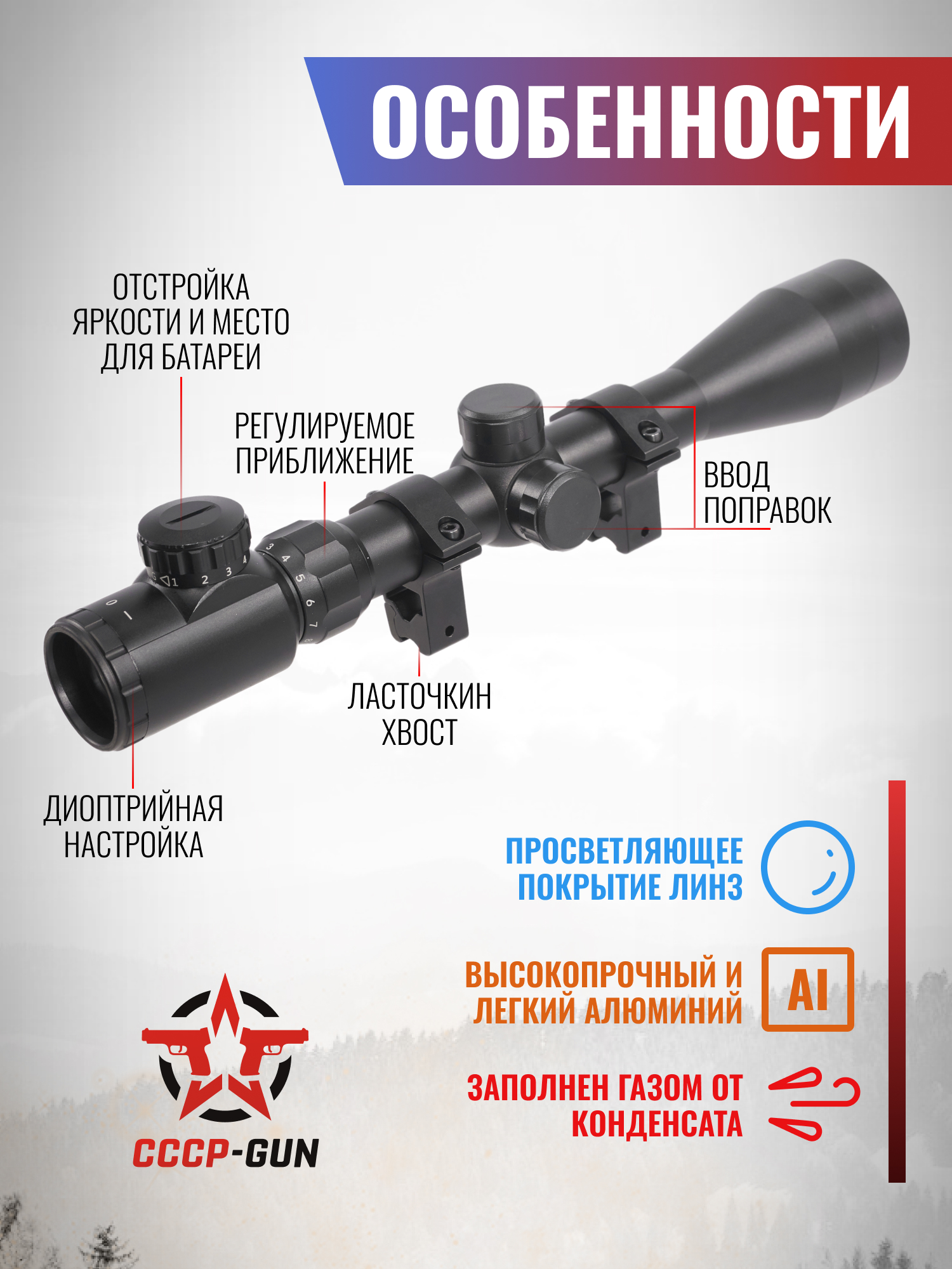 | Комплект поставки | Прицел, защитные крышки, кольца (Ласточкин хвост), салфетка для протирки, документация |