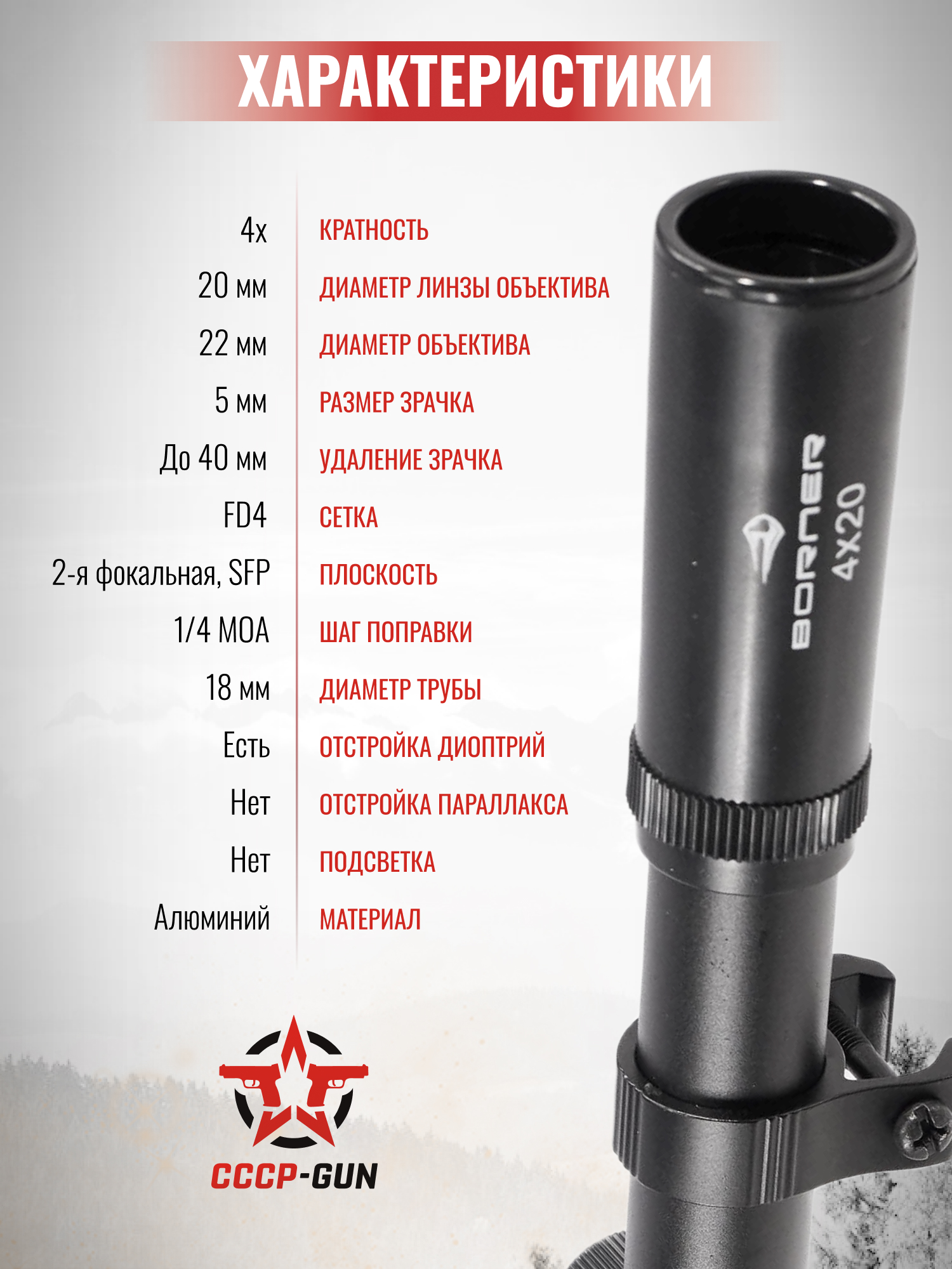 Оптика - не дешевый апгрейд оружия, но существуют исключения. Среди таковых стоит выделить предприятие Борнер, прославившееся изготовлением пистолетов и винтовок - помимо них компания запустила серию оптических прицелов, которые подойдут к бюджетным моделям пневматики. Несмотря на свою стоимость продукция завода отличается безотказностью.