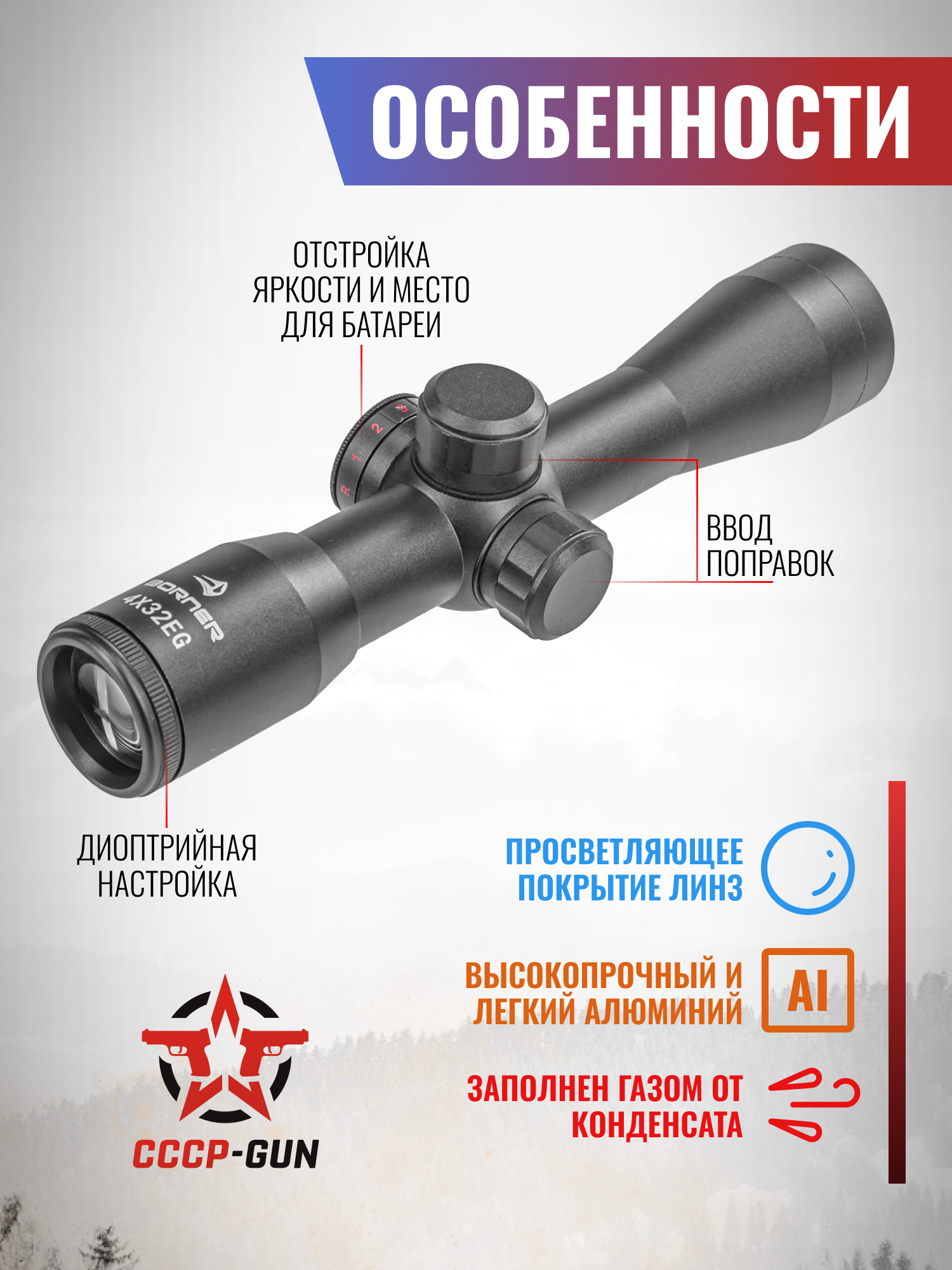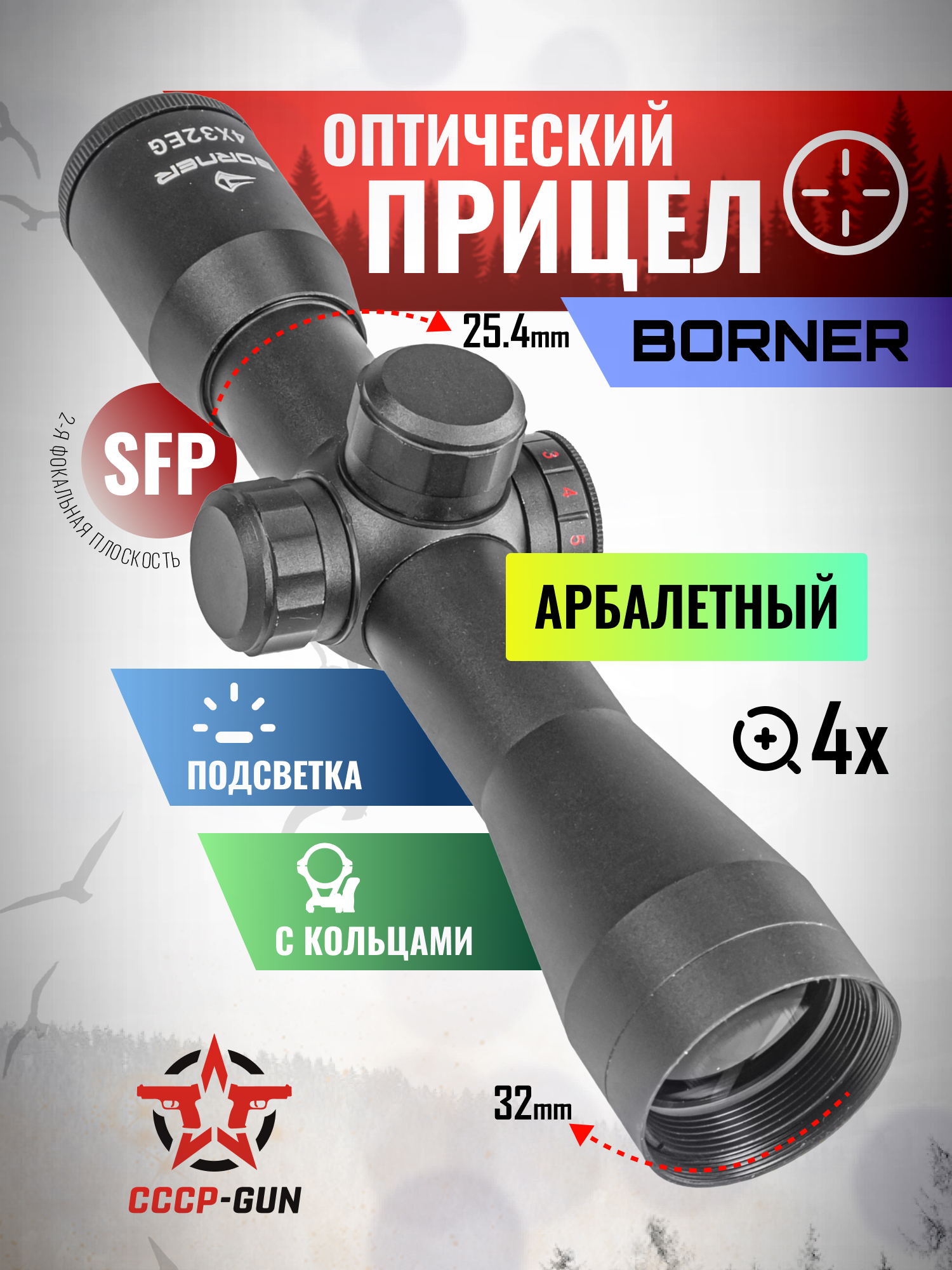 Оптический прицел Borner 4x32 EG (Weaver, для арбалета, подсветка, 25.4 мм)