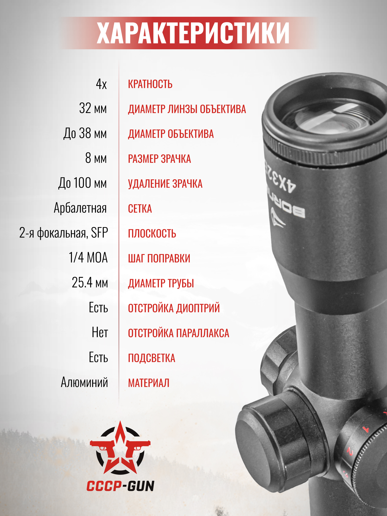 Оптический прицел Borner 4x32 S (Mil-Dot, 25.4 мм)
