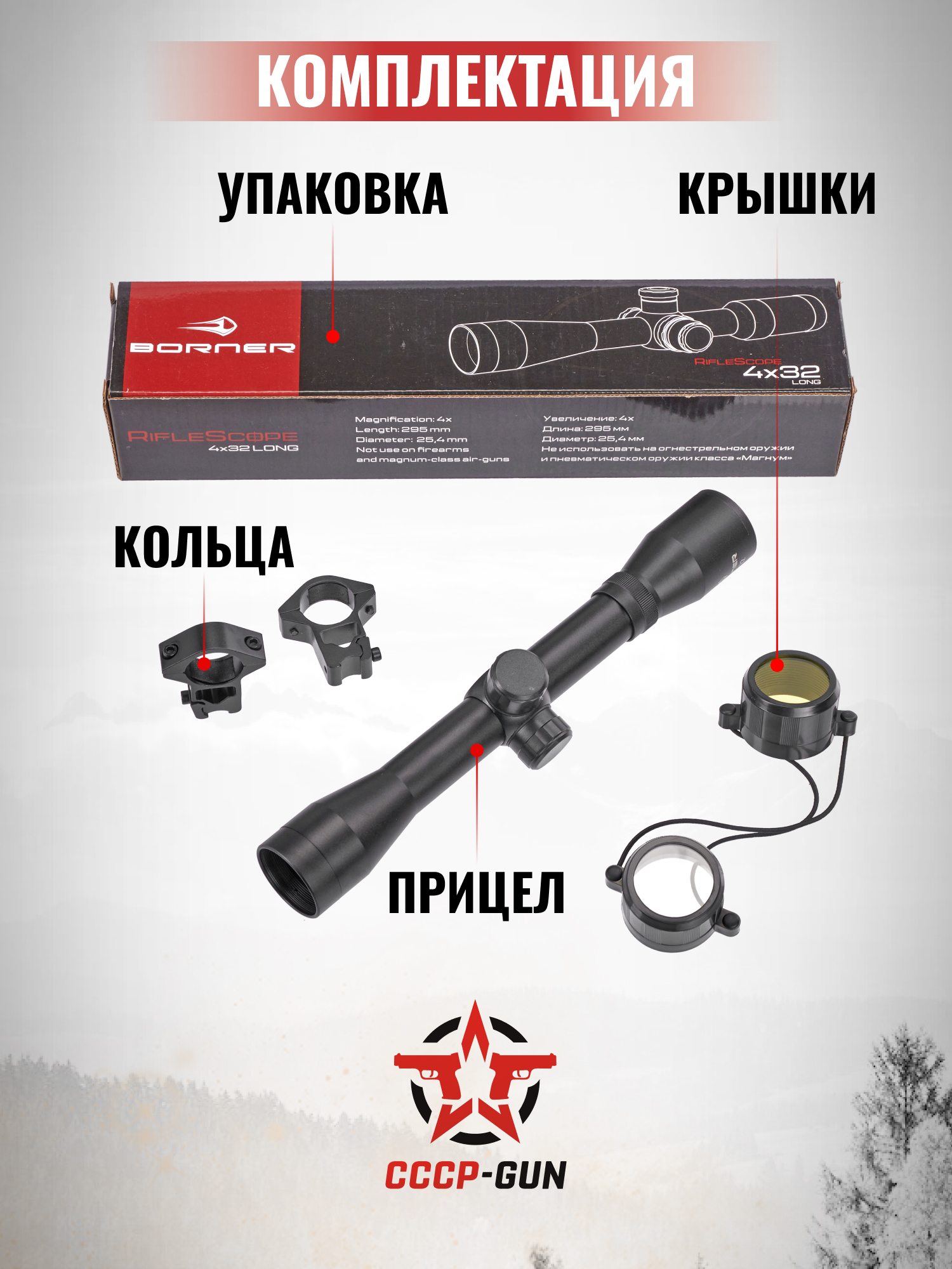 Как и большинство массовых образцов прицелов этот экземпляр предполагает использование дюймового диаметра - рынок предлагает массу креплений под трубу 25.4 мм. При этом завод Borner позаботился о том, чтобы у владельца прицела была возможность установить изделие сразу же после получения - в набор добавили пару колец «Ласточкин хвост». Указанный стандарт встречается в подавляющей части бюджетных пневматических винтовок.
