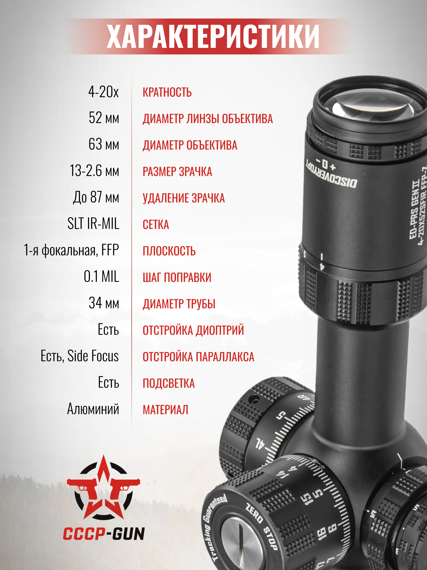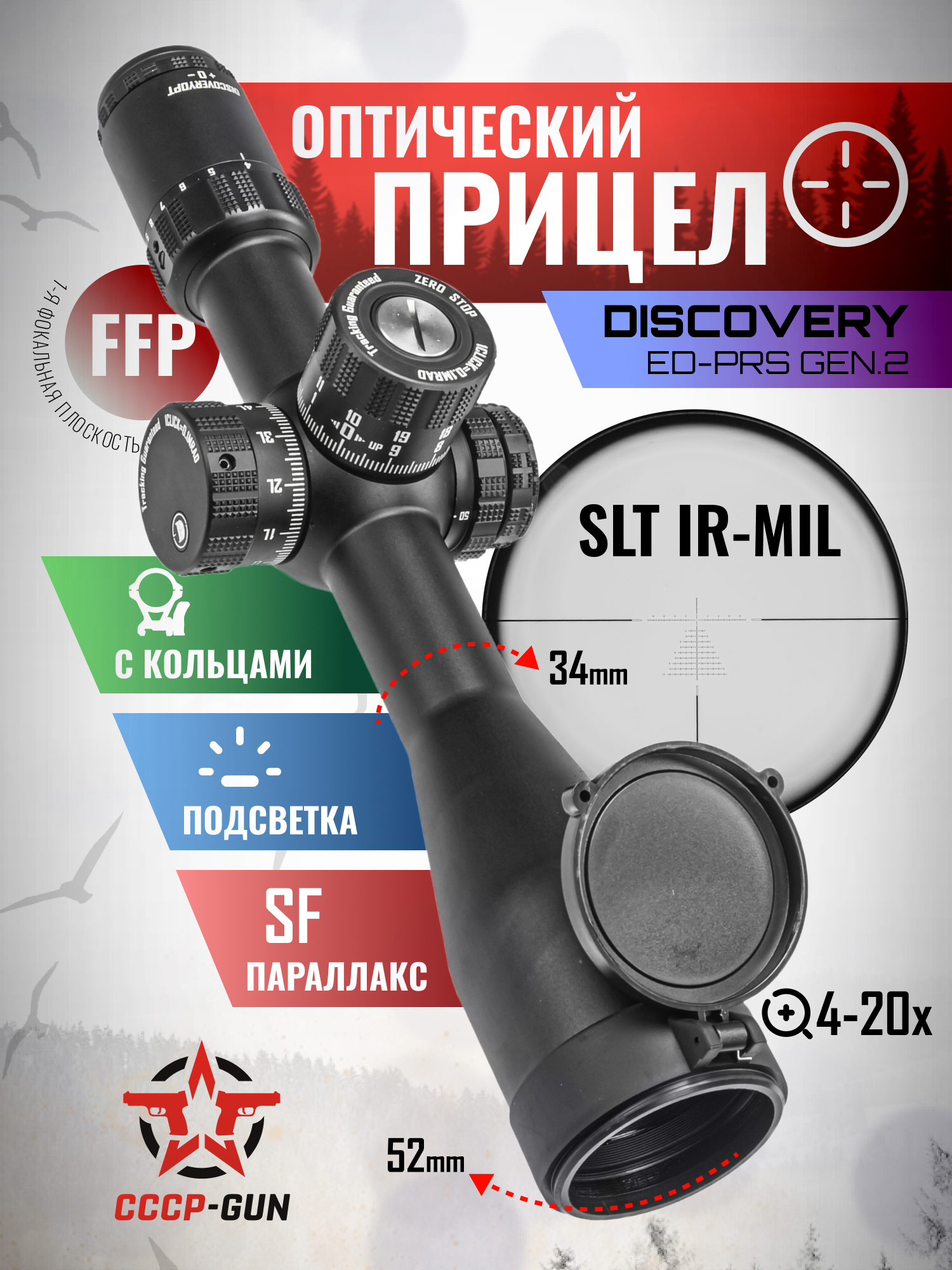 Оптический прицел Discovery ED-PRS 4-20x52 SFIR (34 мм, подсветка)