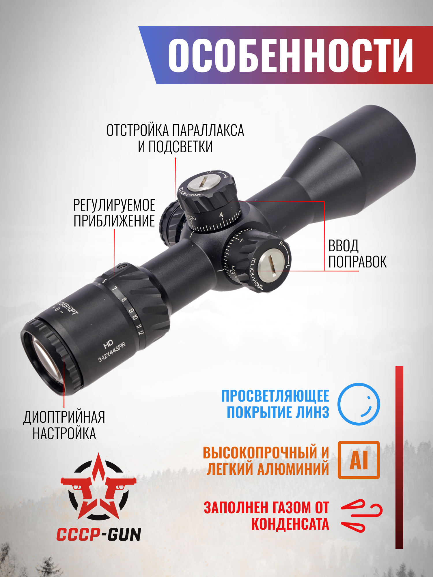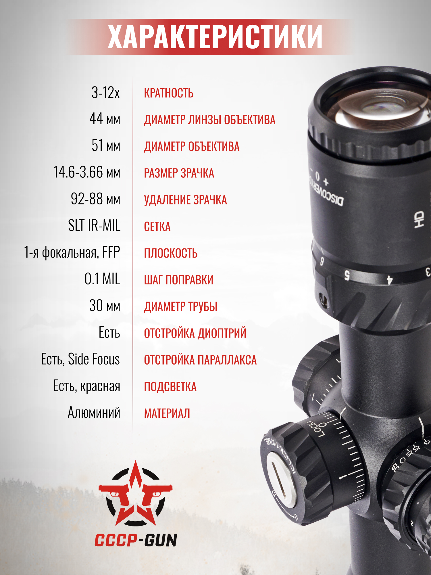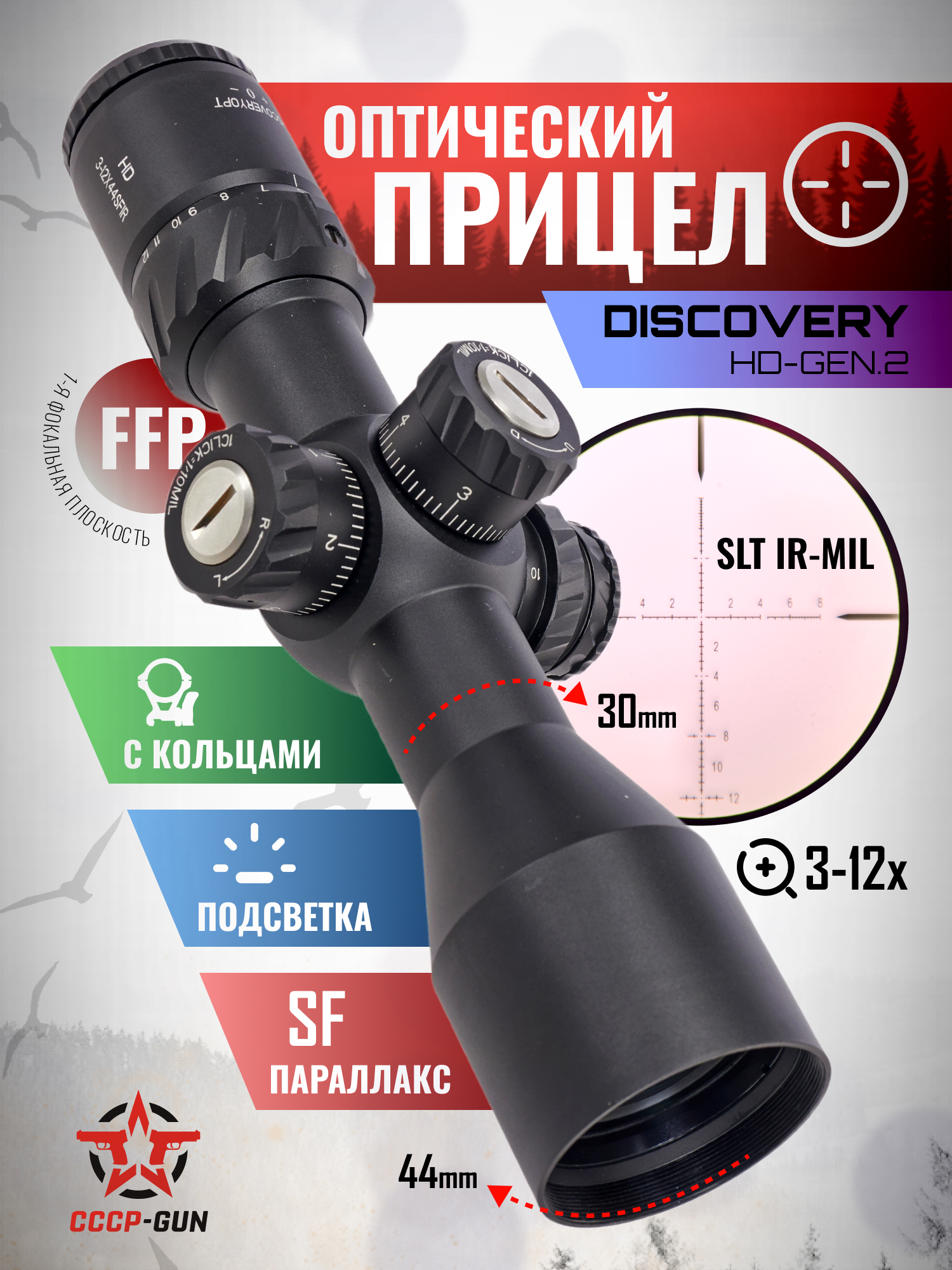 Оптический прицел Discovery HD-Gen.2 3-12x44 SFIR FFP (30 мм, Weaver, подсветка)