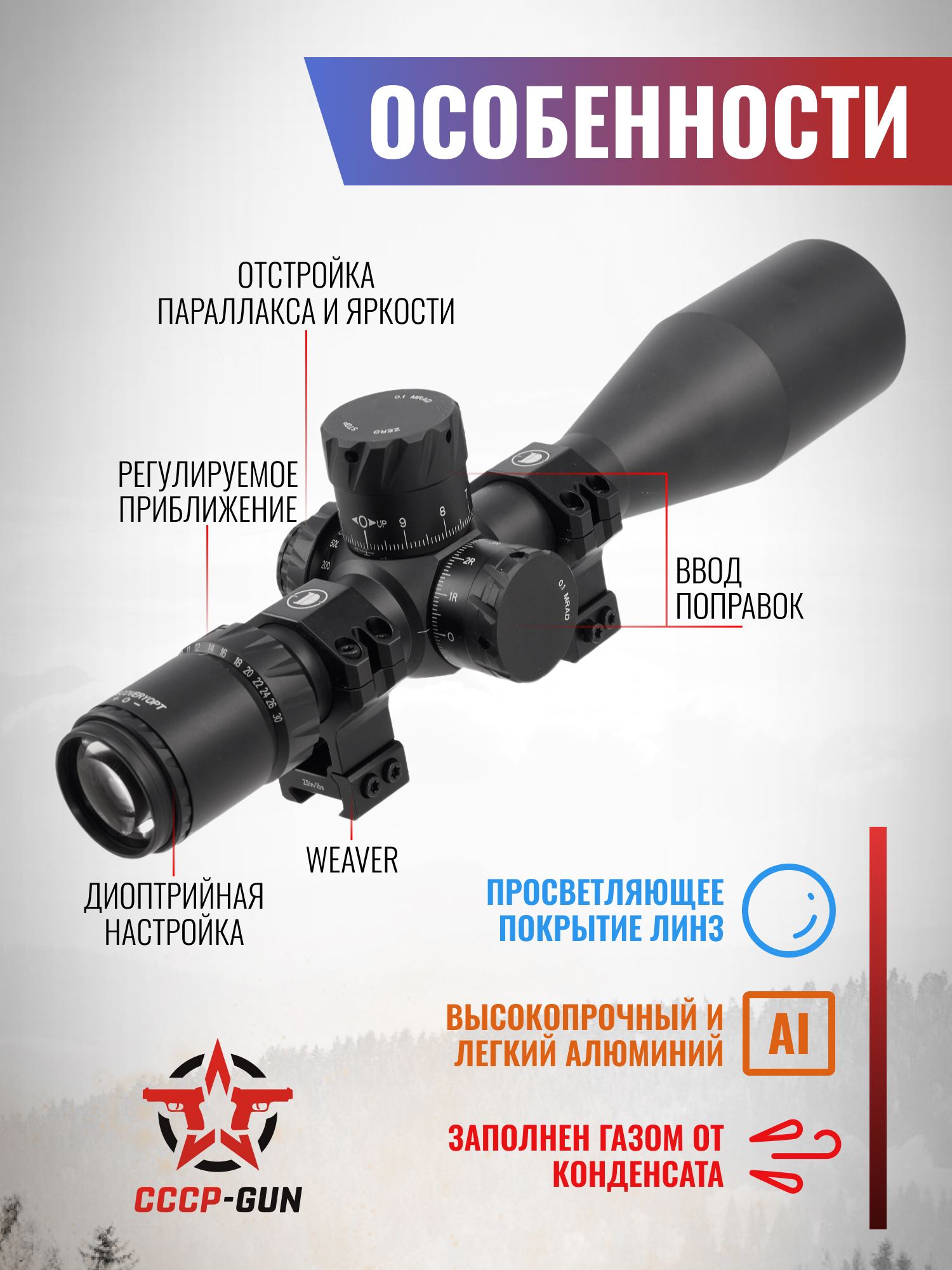 Оптический прицел Discovery MS 4-16x42 AOAC (Weaver, 25.4 мм, HMD, подсветка)