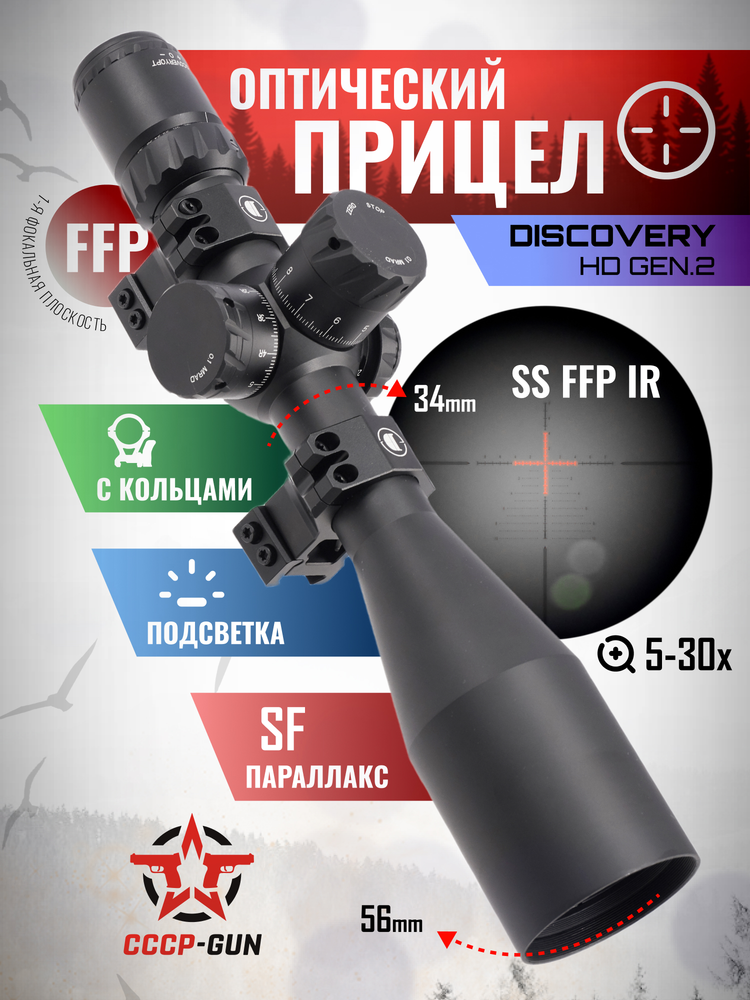 Оптический прицел Discovery ED-ELR 5-40x56SFIR (35 мм, оригинал)
