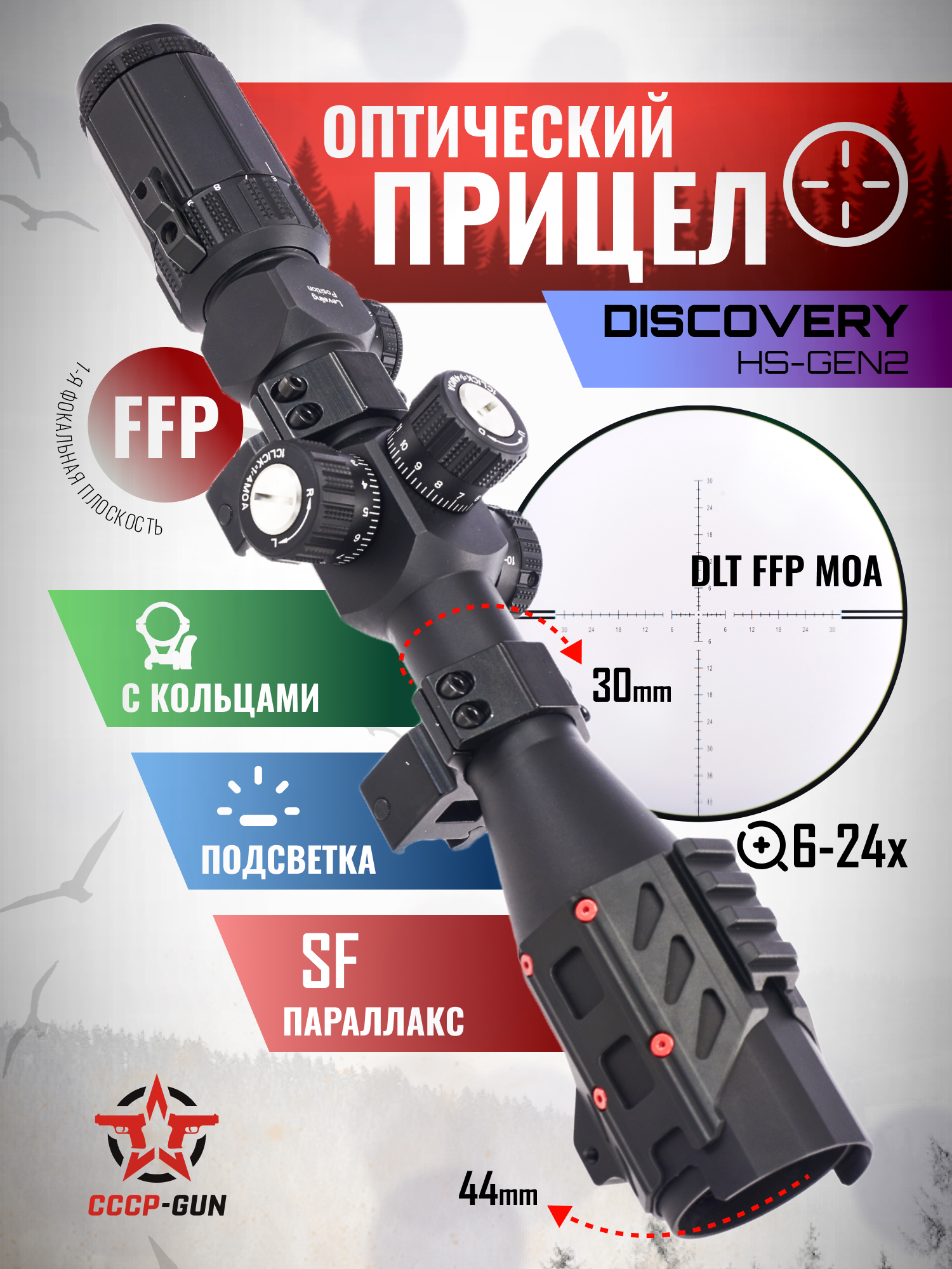 Оптический прицел Discovery HS-Gen.2 6-24x44 SF (30 мм, Weaver, подсветка)