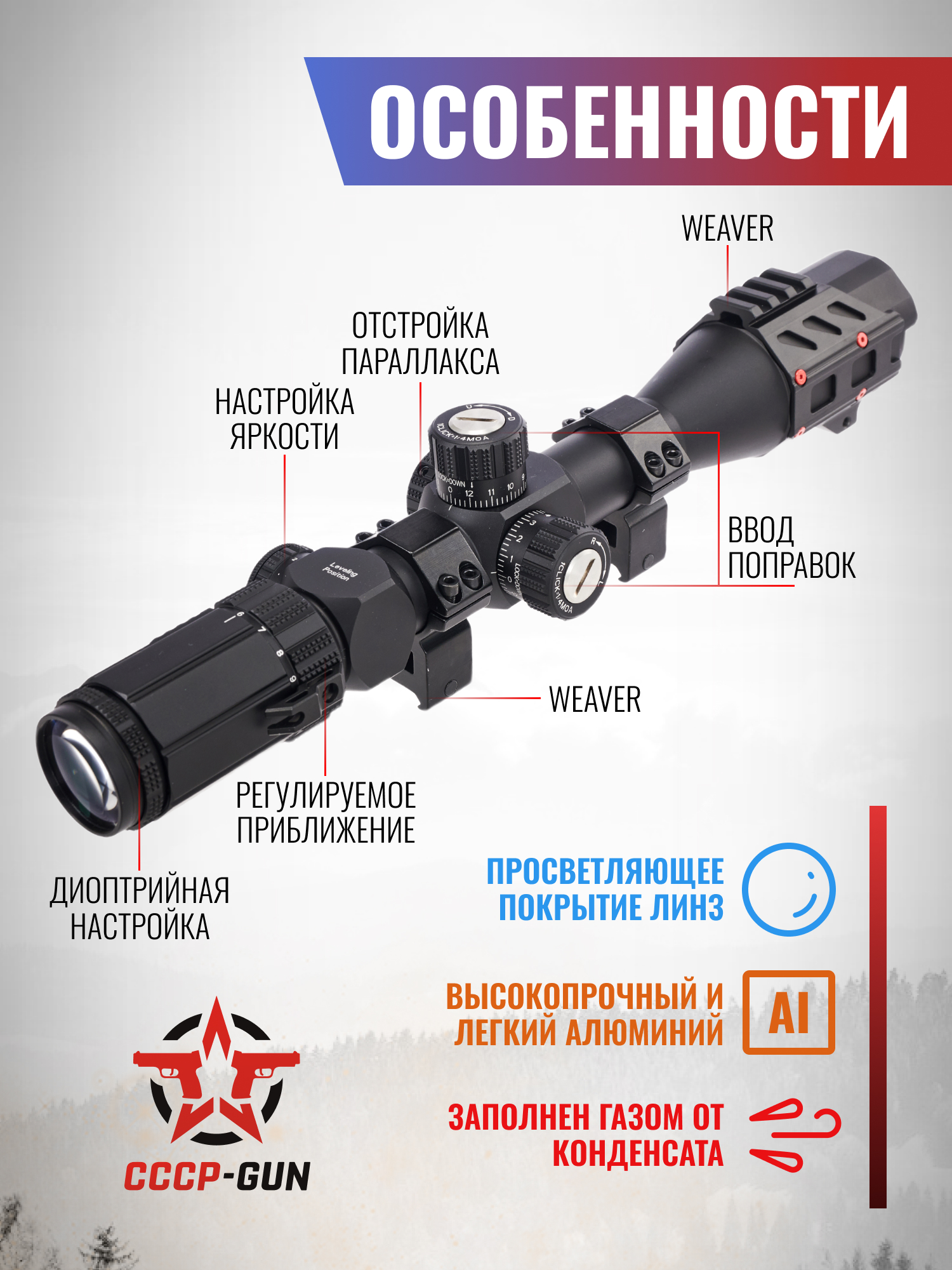 Оптический прицел Discovery MS 4-16x42 AOAC (Weaver, 25.4 мм, HMD, подсветка)