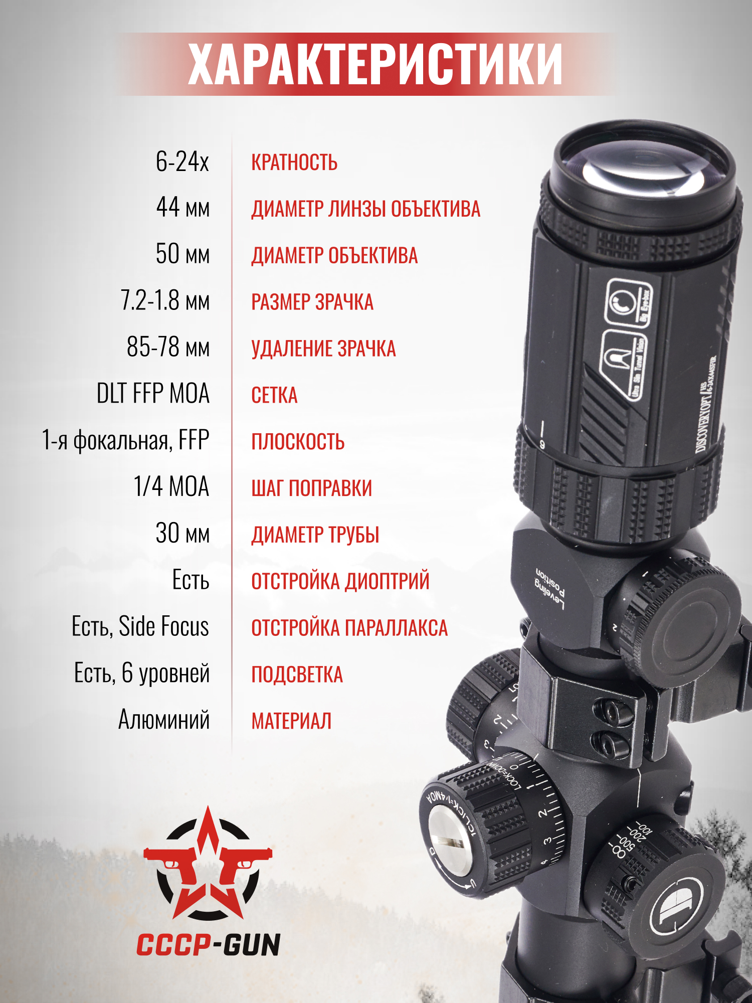 Оптический прицел Discovery ED-LHT Gen.2 3-15x50 SFIR FFP (30 мм, подсветка, MOA)