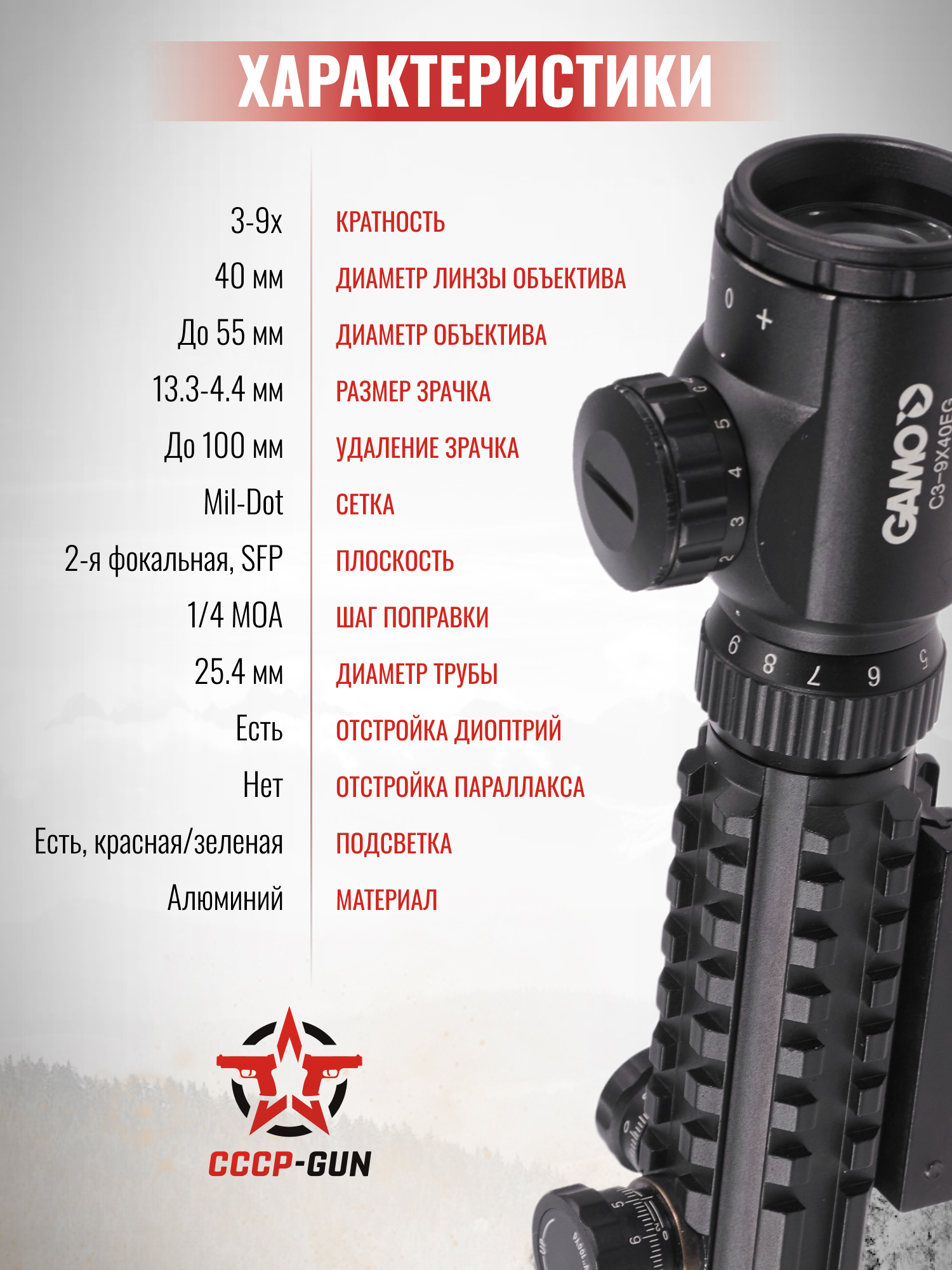 Рассматривая оптический прицел Гамо 3-9x40 ЕГД можно заметить, что цена прибора соизмерима с тему функциями, что предлагает производитель. Модель отлично подойдёт для стрельбы из пневматических винтовок любого калибра.