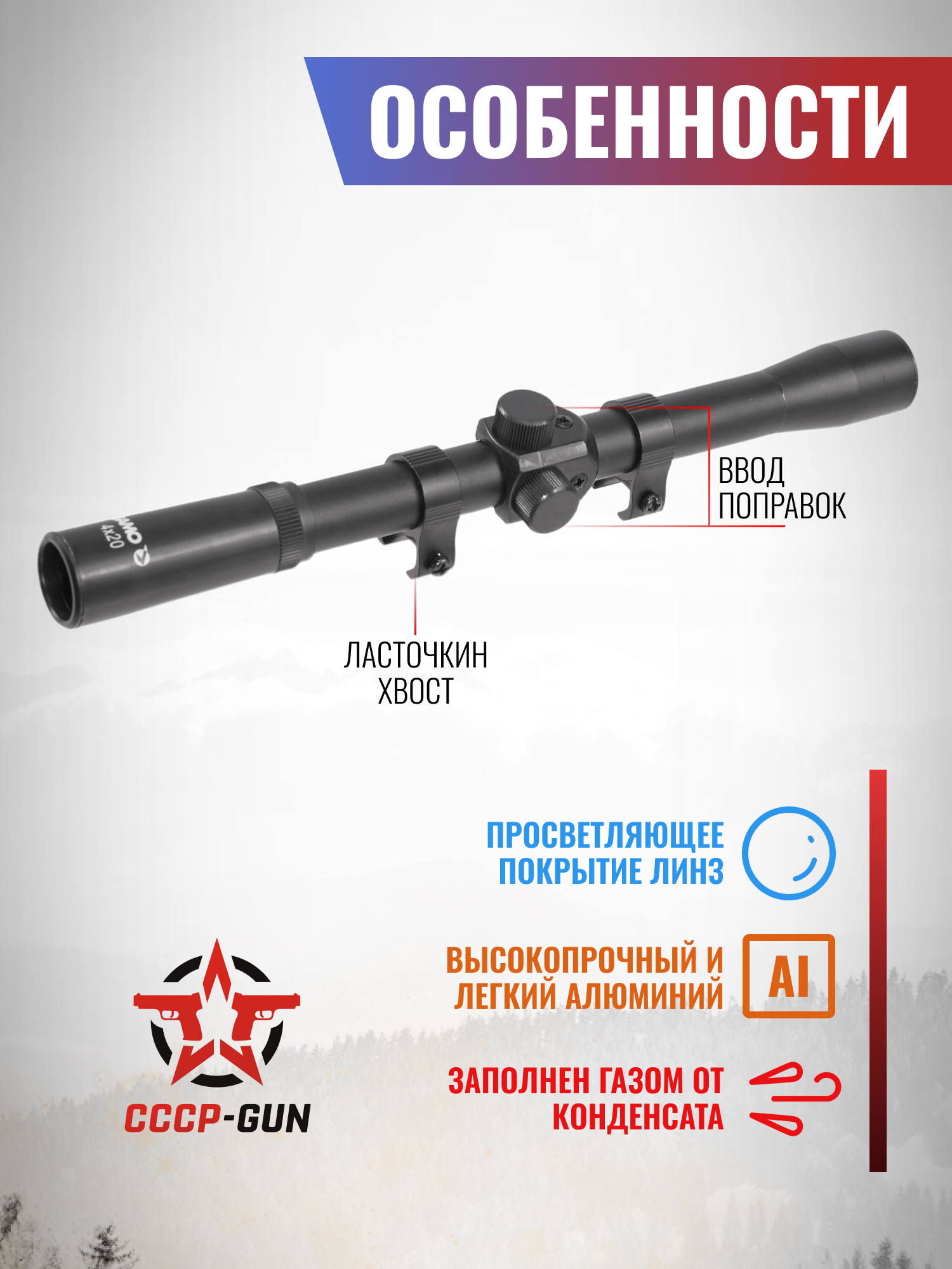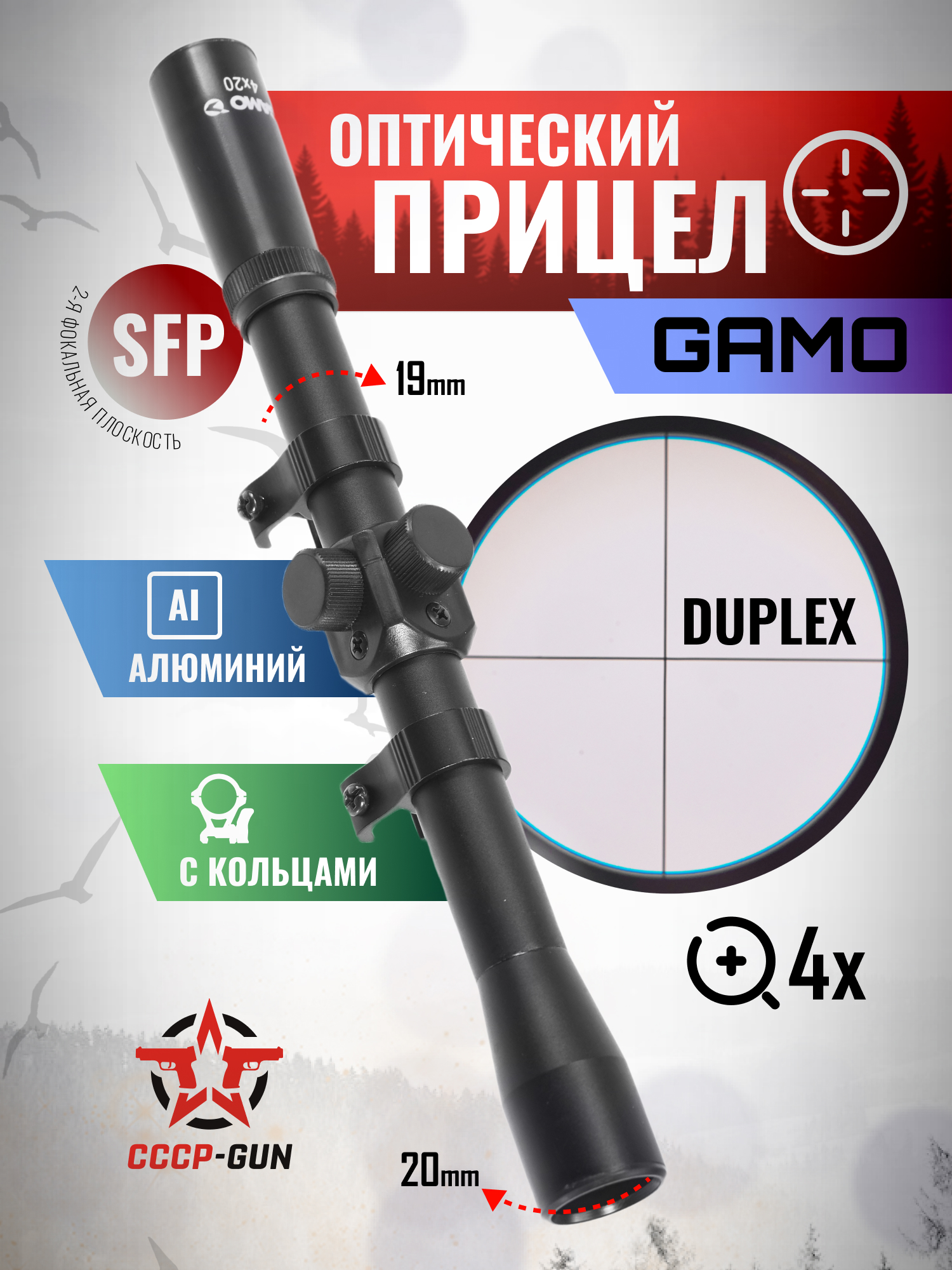 Оптический прицел Gamo 4x20 замечательно подойдет для установки на все виды пневматических винтовок. Модель объединяет в себе бюджетную стоимость, небольшие габариты, а так же неплохое качество сборки.