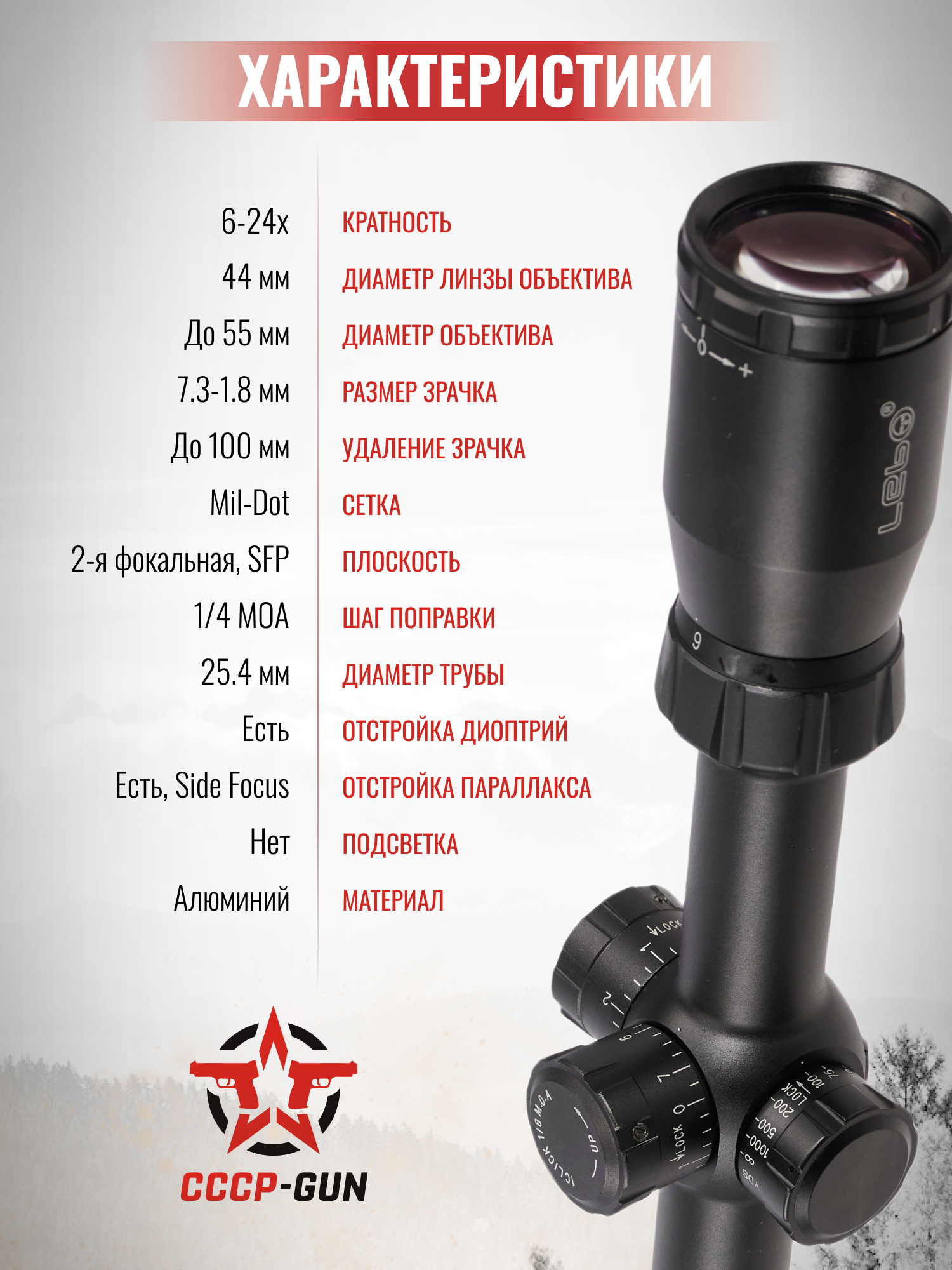 Оптический прицел Lebo RL 6-24х44 SP (BH-LEB64, 25.4 мм, Mil-Dot)