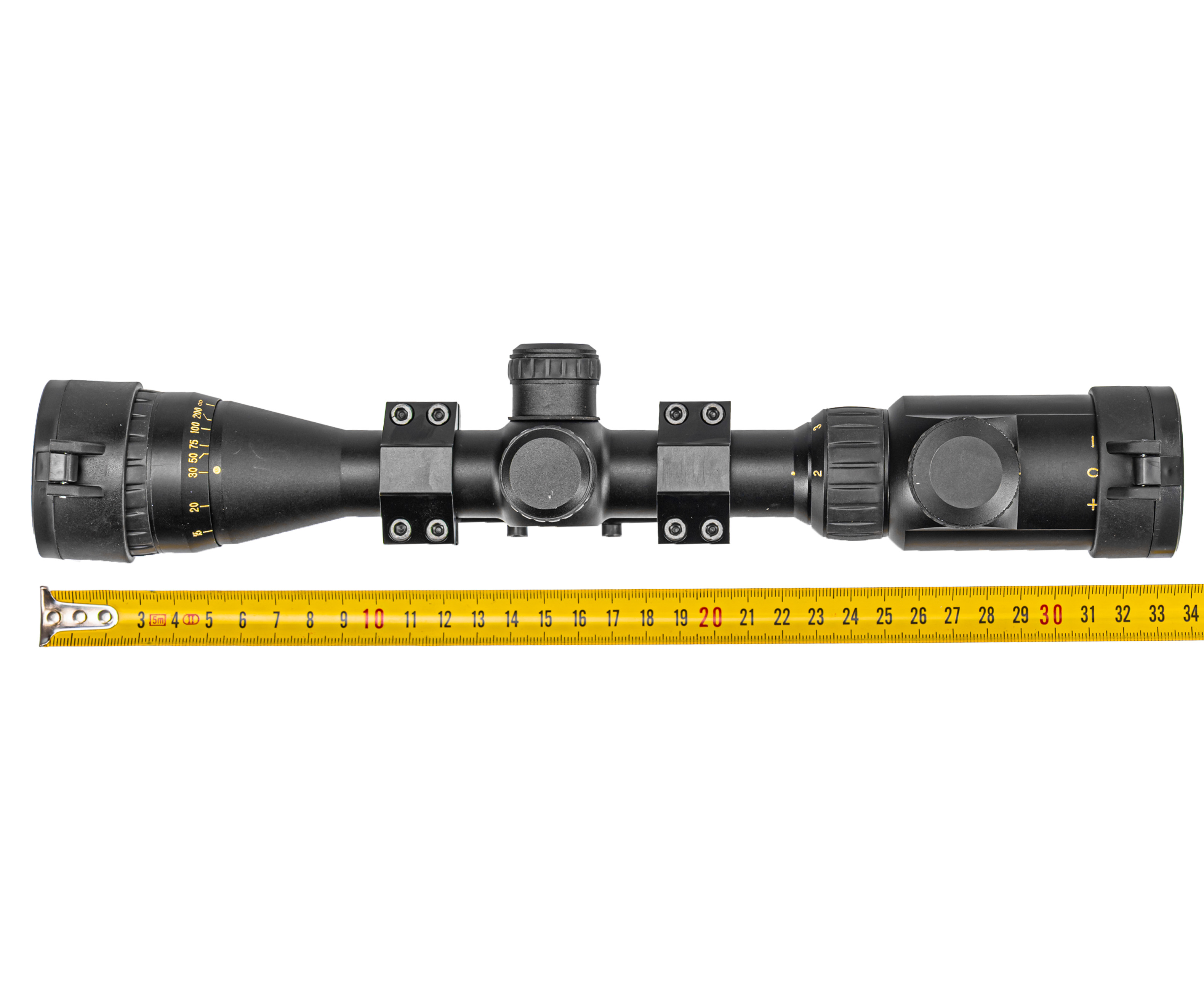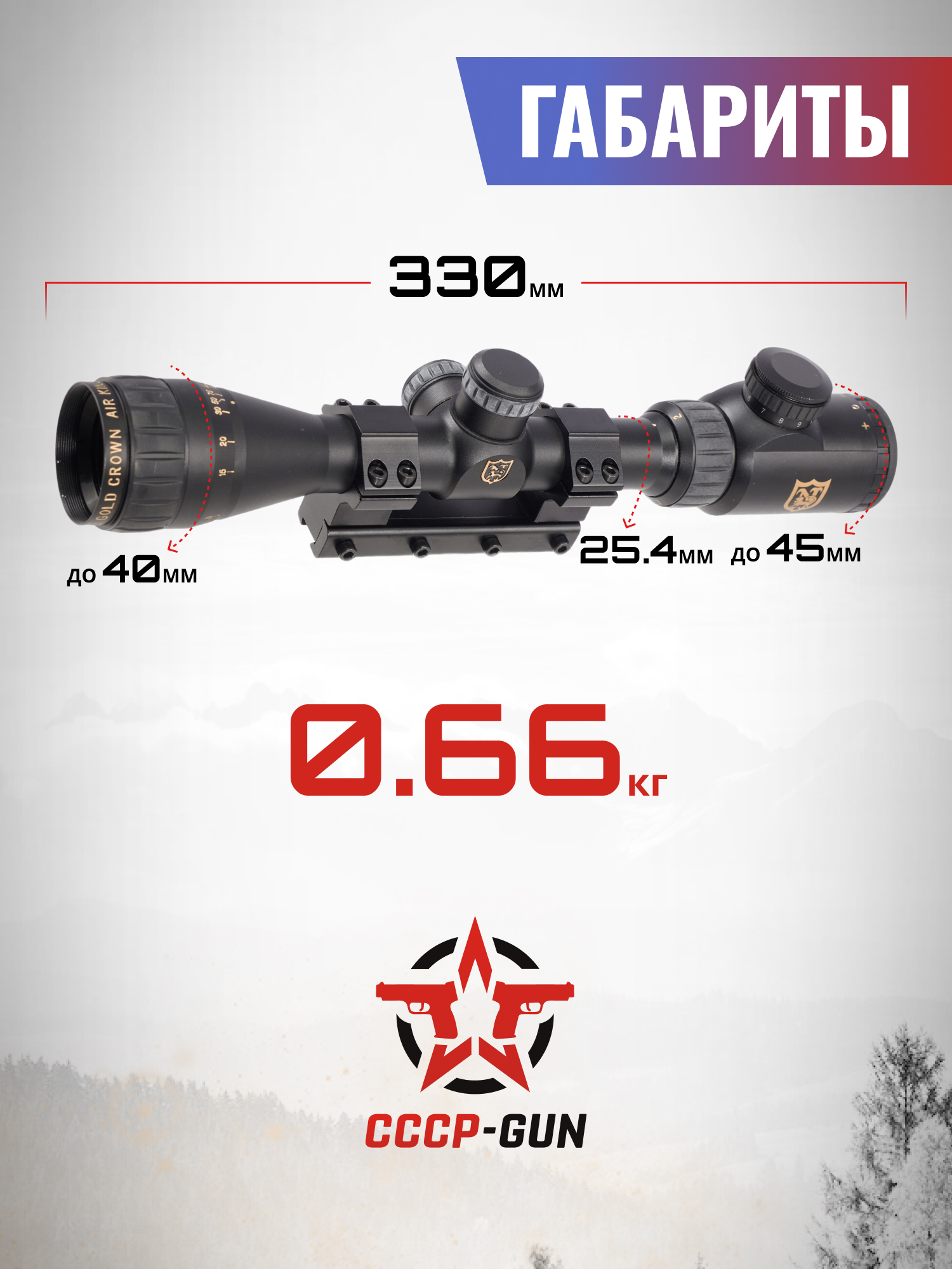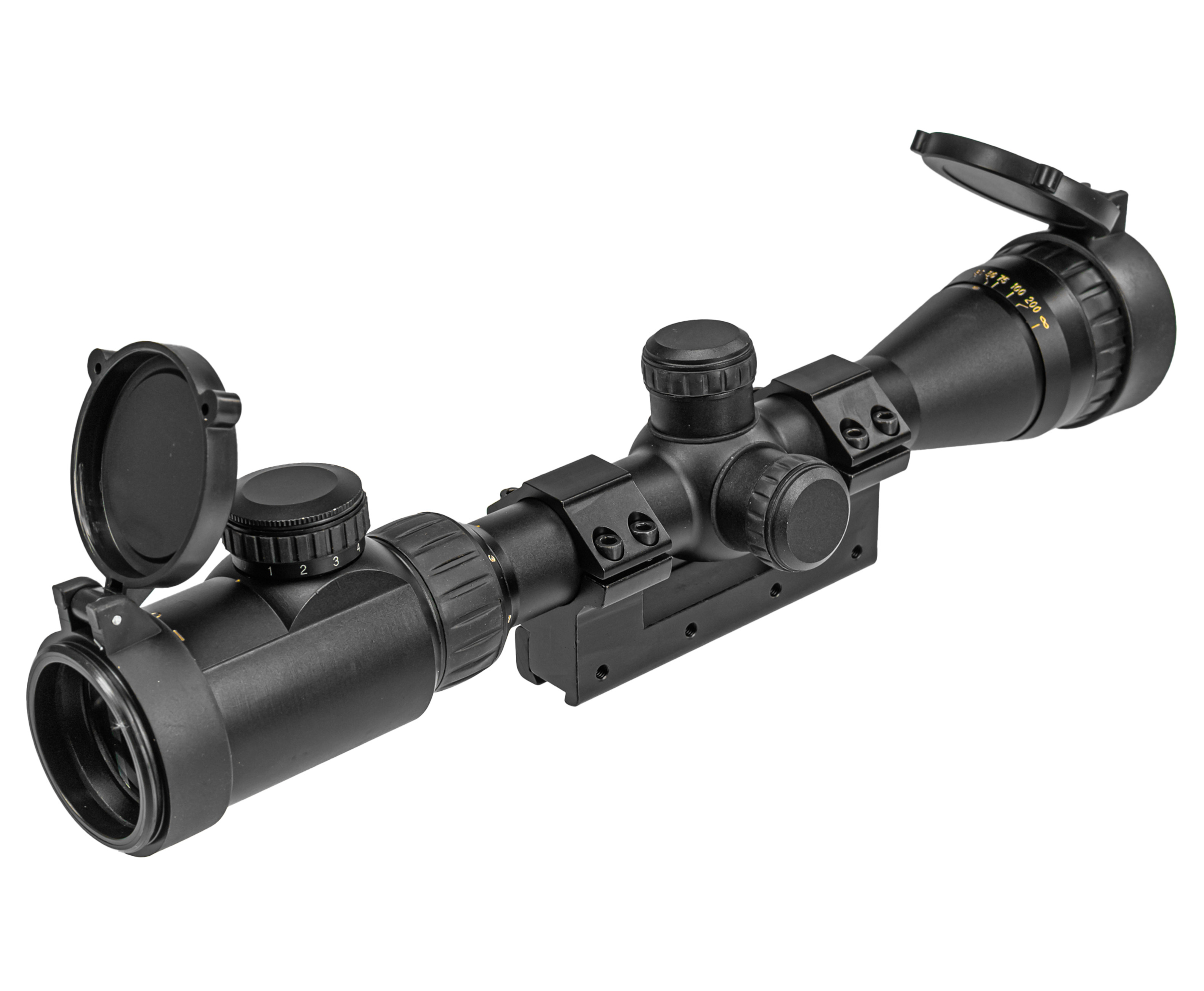 Оптический прицел с подсветкой и переменной кратностью, производимый японской компанией Никко Стирлинг. Модель поставляется вместе с моноблоком, необходимым для установки модели на оружие, под планку типа Ласточкин хвост шириной 11 мм, двумя защитными крышками и тряпочкой из микрофибры.