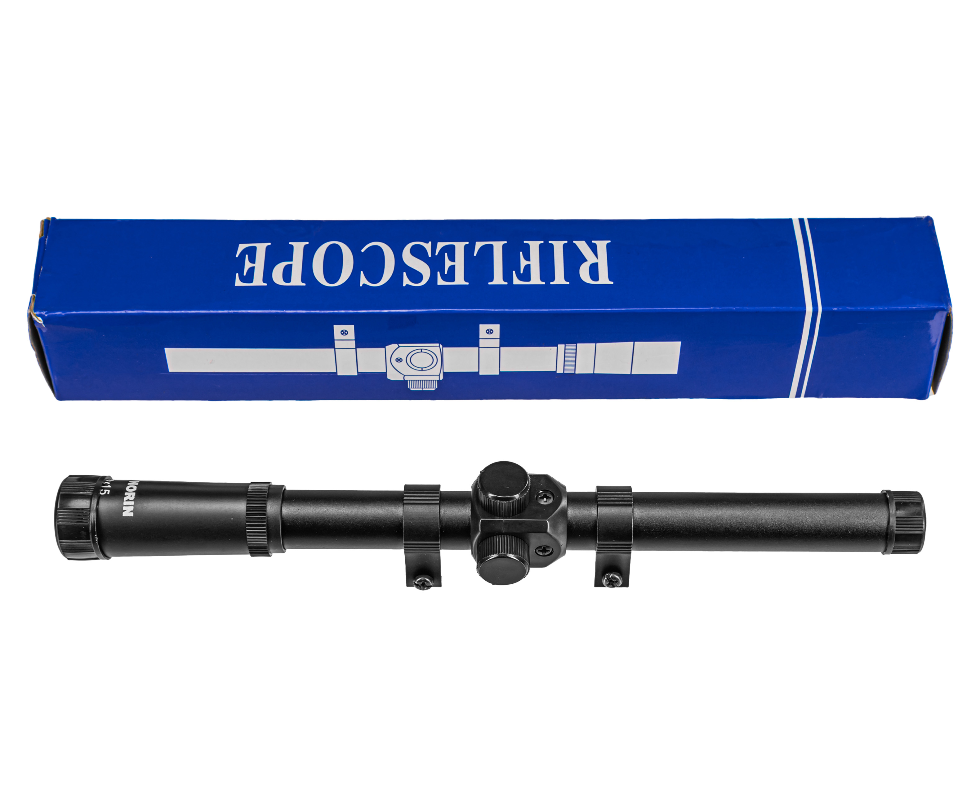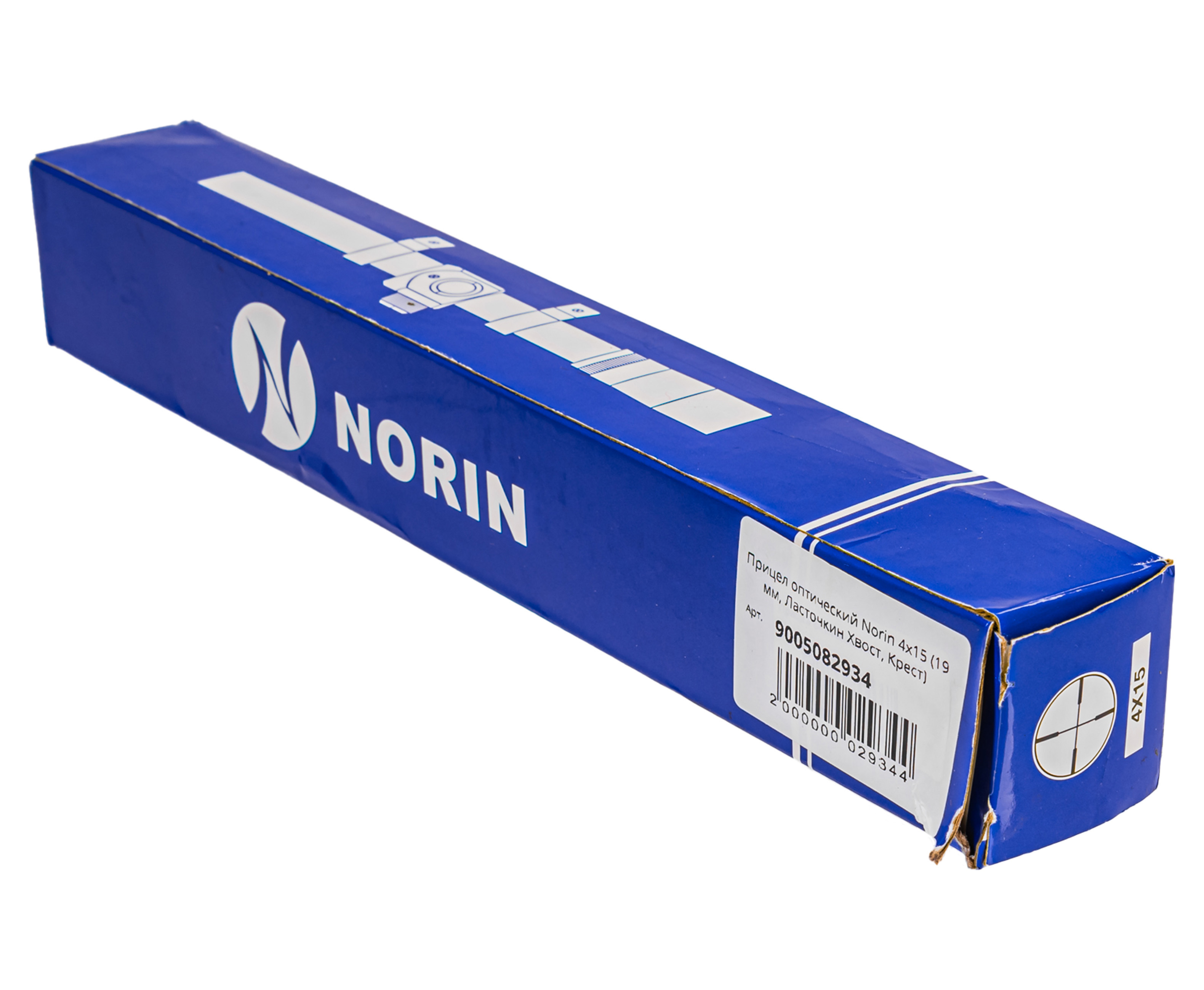 Оптический прицел Norin 4х15 поставляется в фирменной упаковке, в которой, кроме него, находится инструкция, 2 крышки, защищающие оптику от повреждений при транспортировке, а так же салфетка из микрофибры, для бережного ухода за линзами.