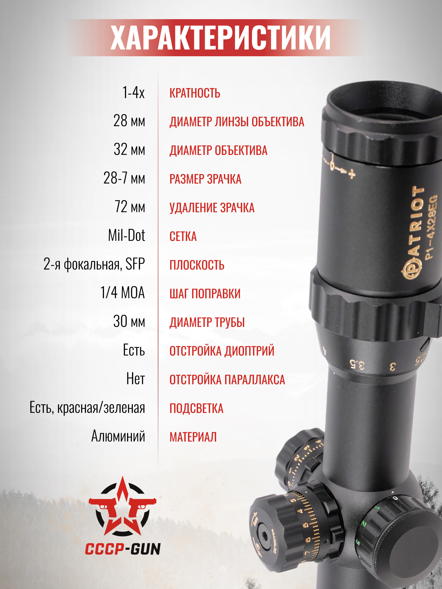Оптический прицел Patriot P 1-4х28 EG (30 мм, Mil-Dot, BH-PT148G)