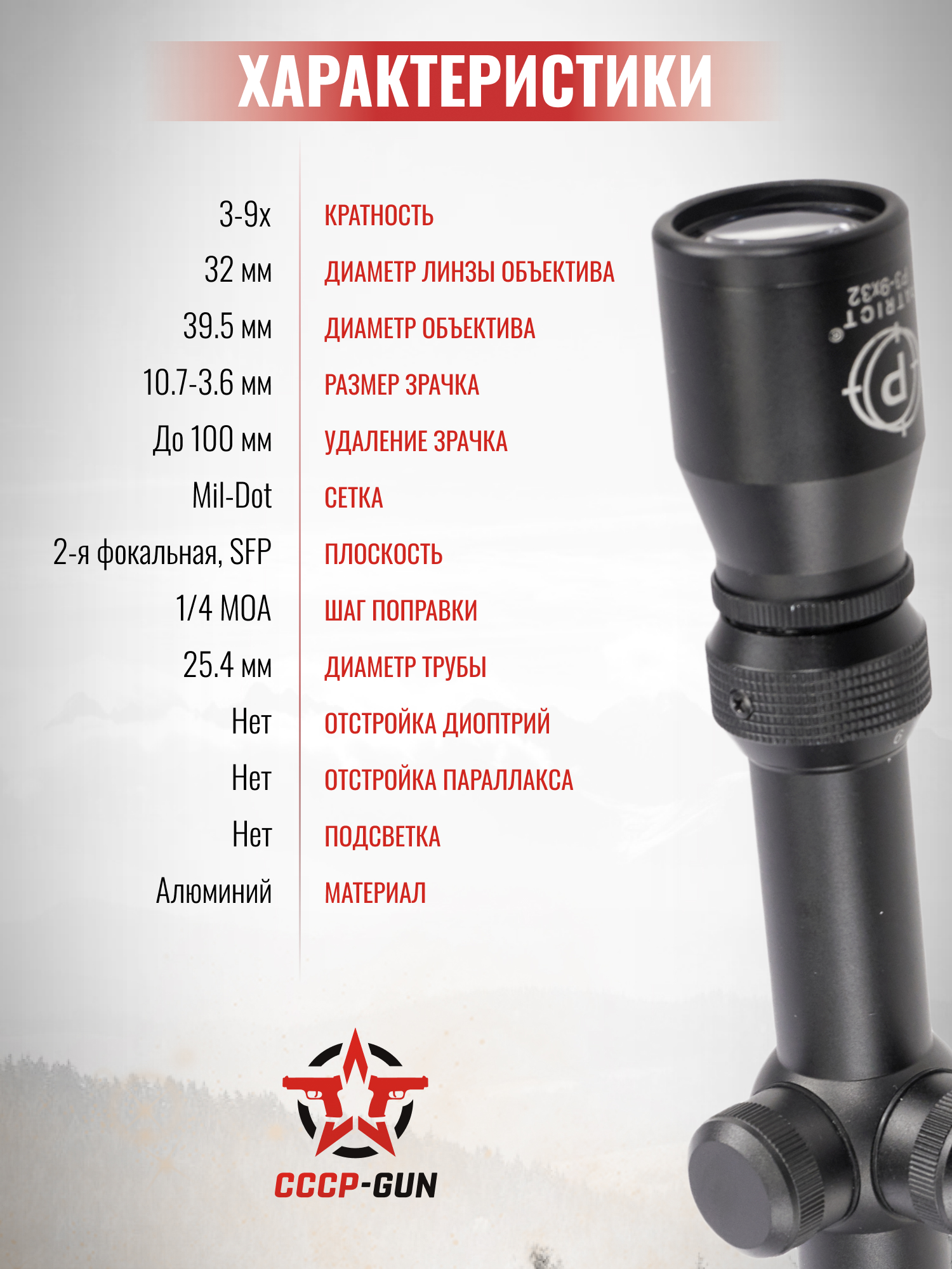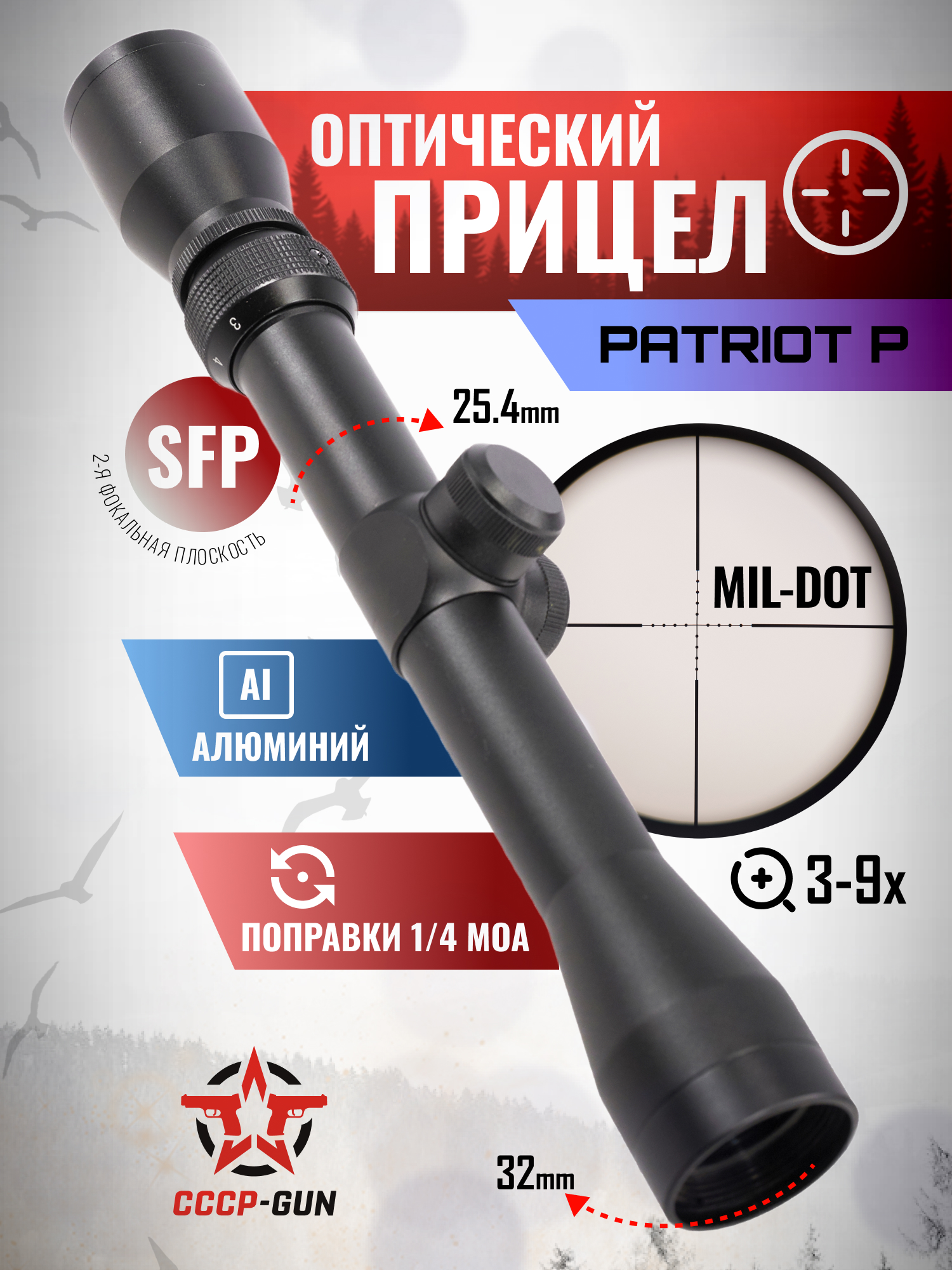 Оптический прицел Patriot P3-9х32 купить может как охотник, так и любой другой стрелок. Данный прибор отлично справляется с поставленными задачами и особенно хорошо подойдёт для установки на пневматику.