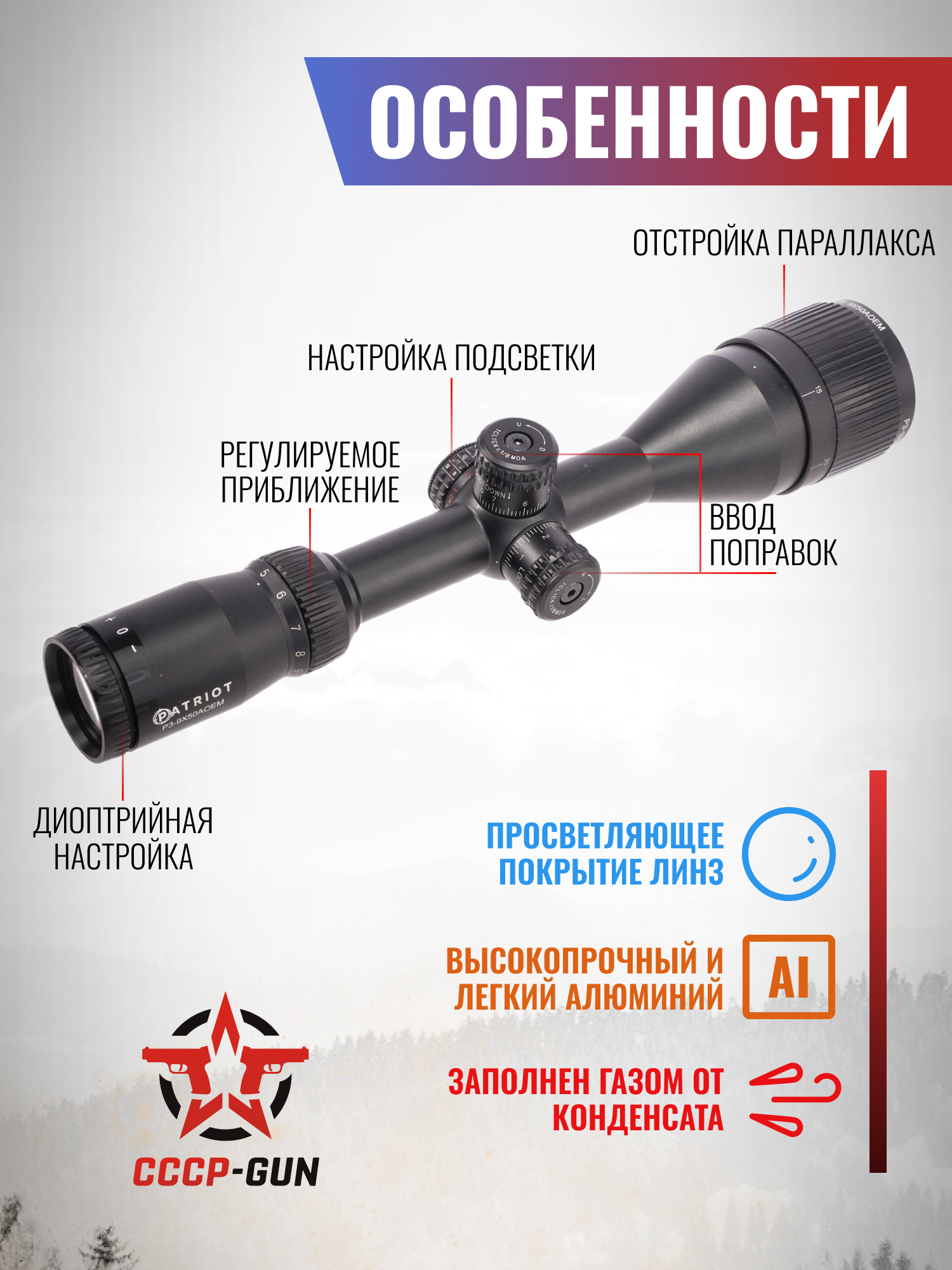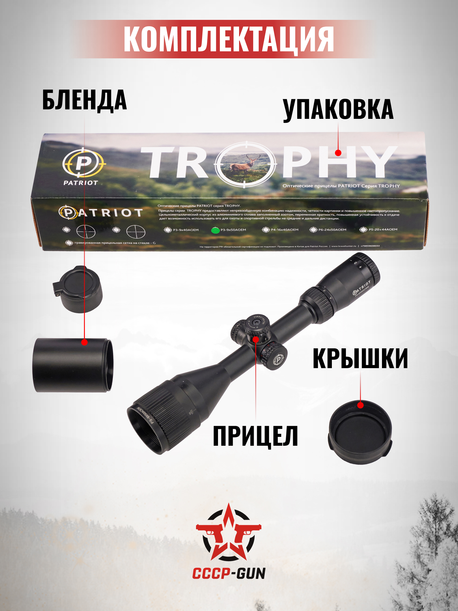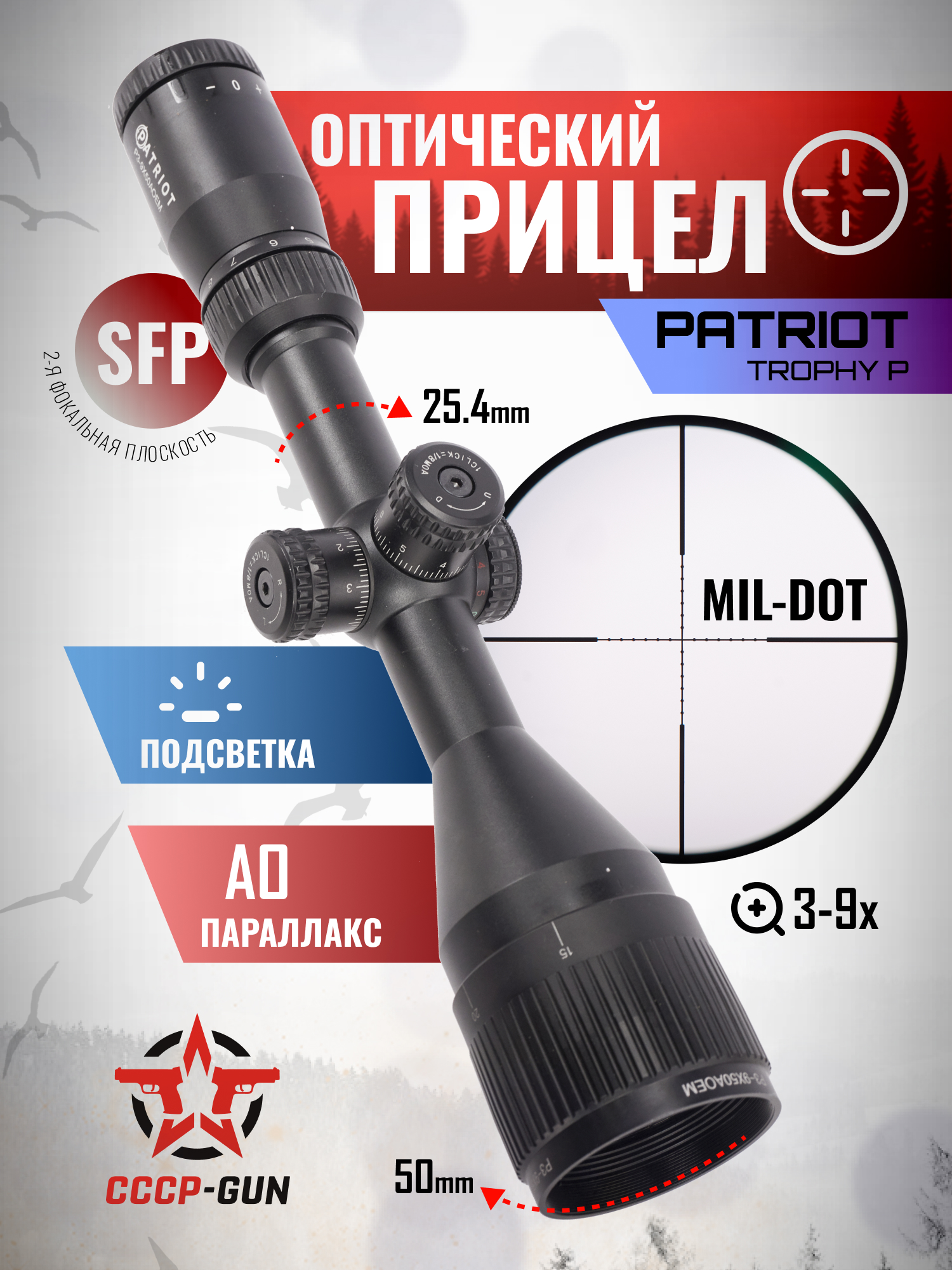 Оптический прицел Patriot Trophy P 6-24x50 AOEMG (Mil-Dot, 25.4 мм, подсветка, BH-PT624EMG)