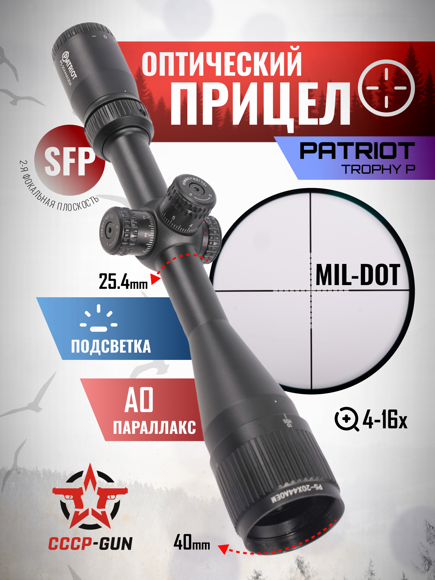 Оптический прицел Patriot P4-16x40 AOEG (BH-PT414G, Mil-Dot)