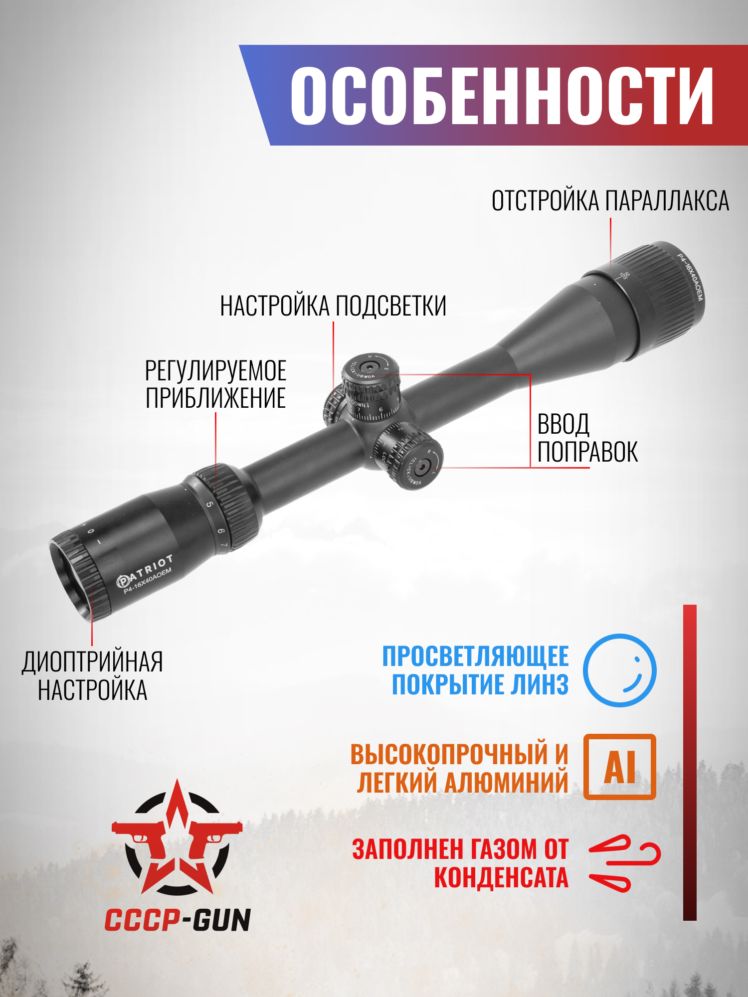 Оптический прицел Patriot P 6-24x50 AOEG (25.4 мм, подсветка, Mil-Dot, BH-PT624G)
