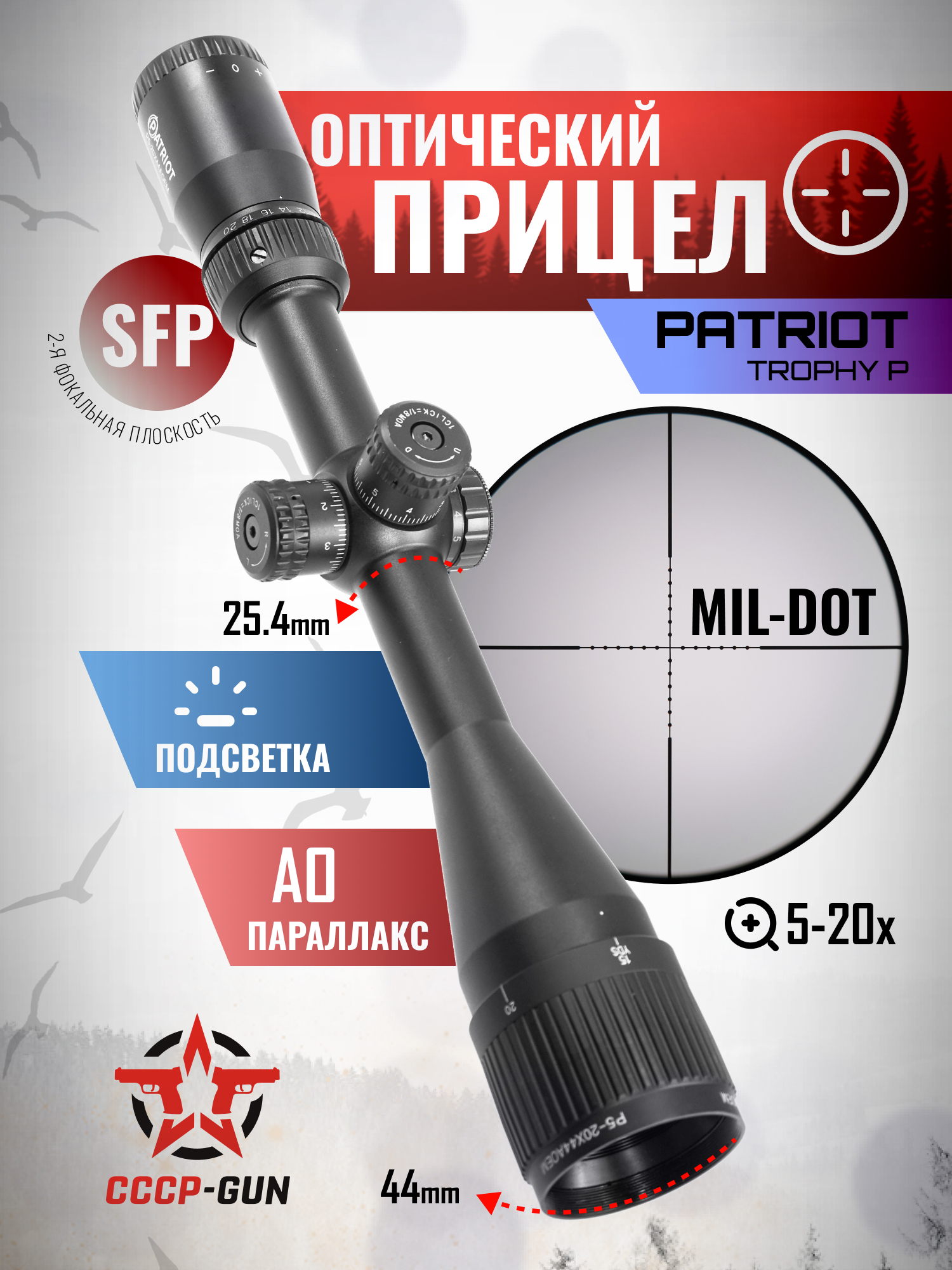 Оптический прицел Patriot Trophy P 6-24x50 AOEMG (Mil-Dot, 25.4 мм, подсветка, BH-PT624EMG)
