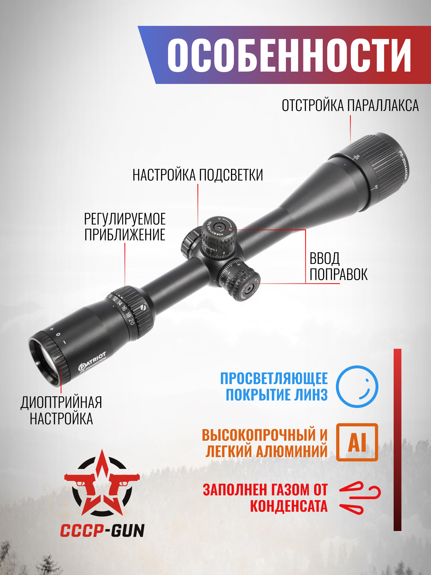 Оптический прицел Patriot P 6-24x50 AOEG (25.4 мм, подсветка, Mil-Dot, BH-PT624G)