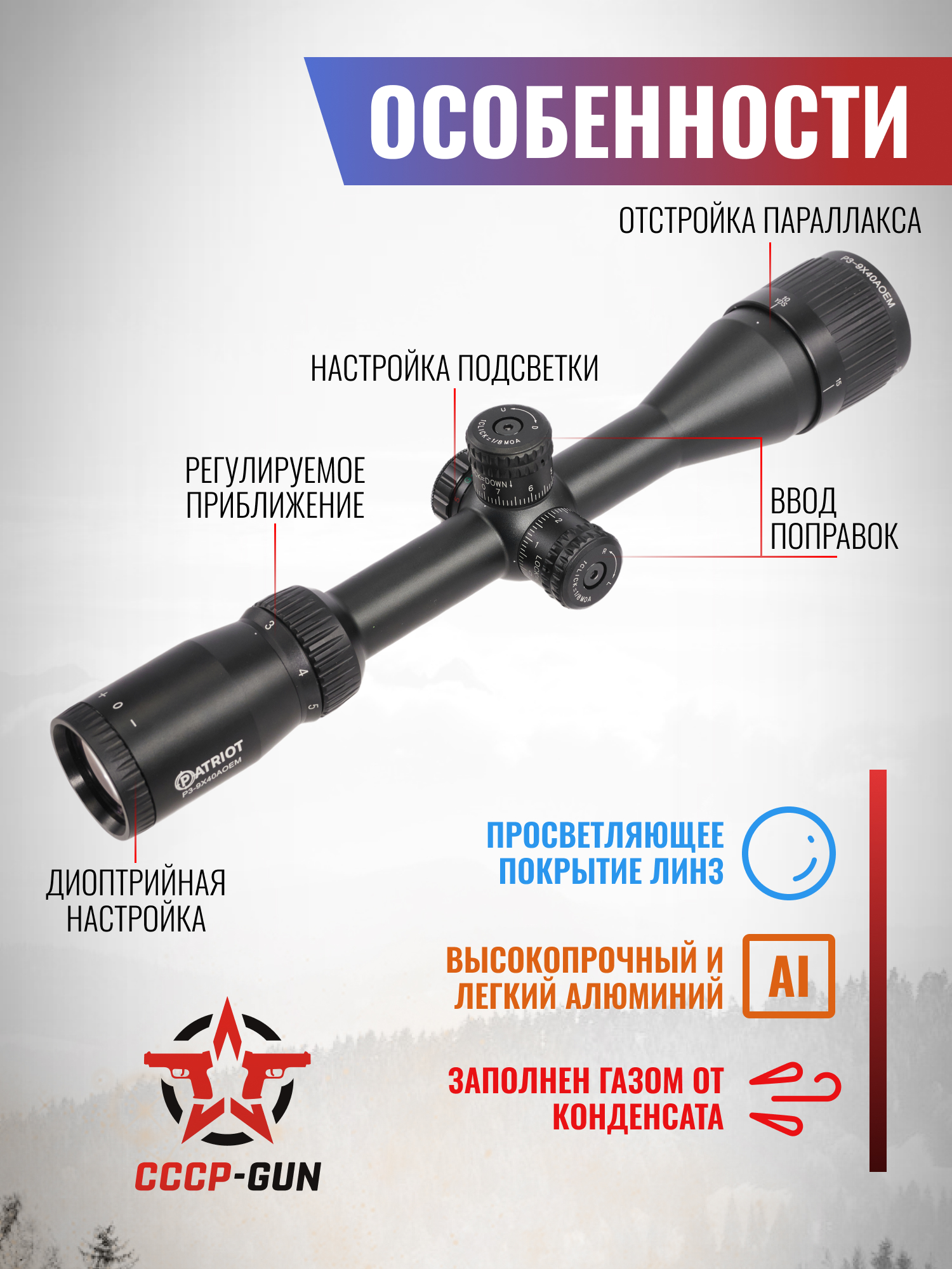 Оптический прицел Patriot P3-9x40 AOEG (BH-PT394G, Mil-Dot)