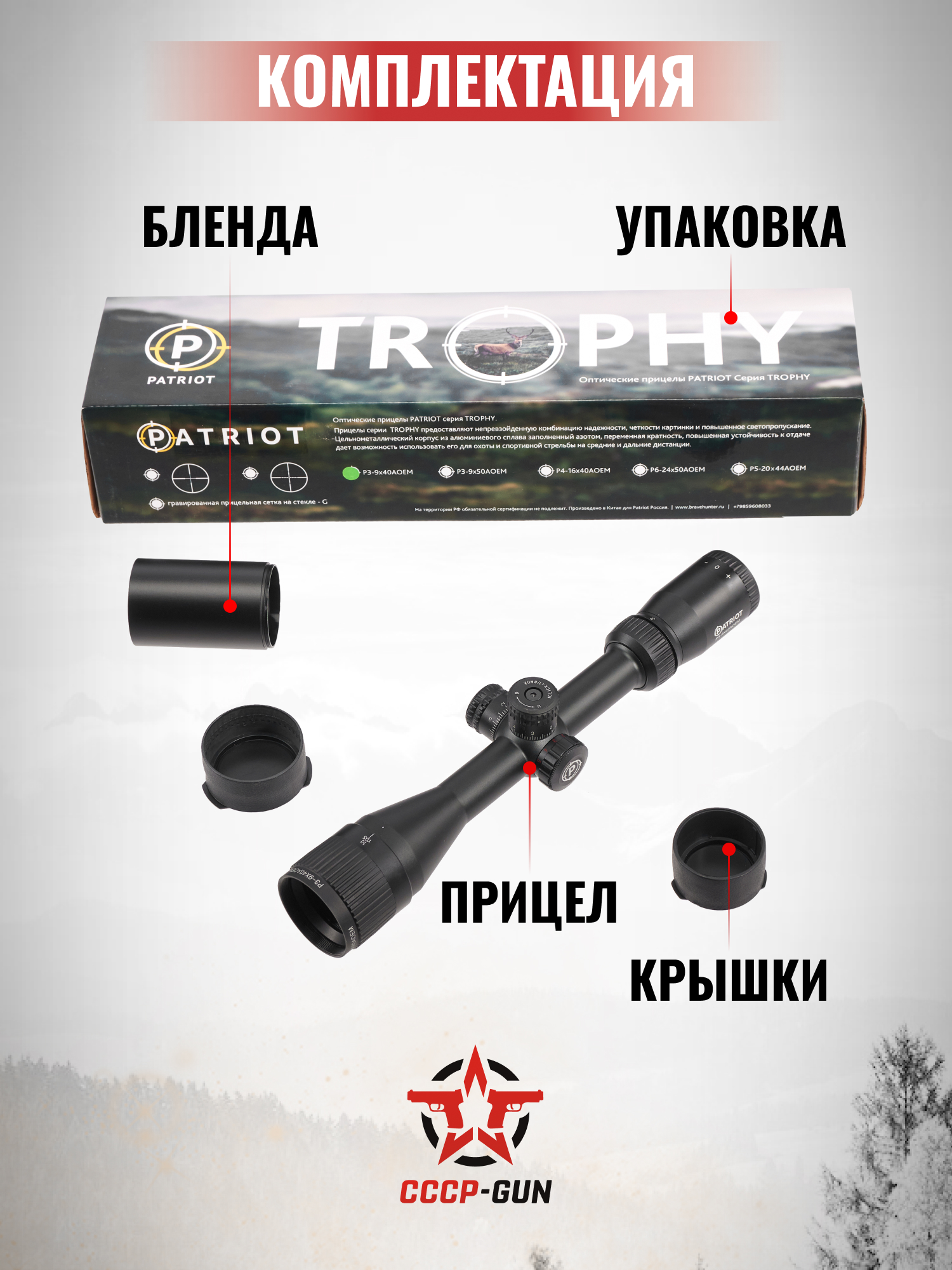 Оптический прицел Patriot Trophy P 6-24x50 AOEMG (Mil-Dot, 25.4 мм, подсветка, BH-PT624EMG)
