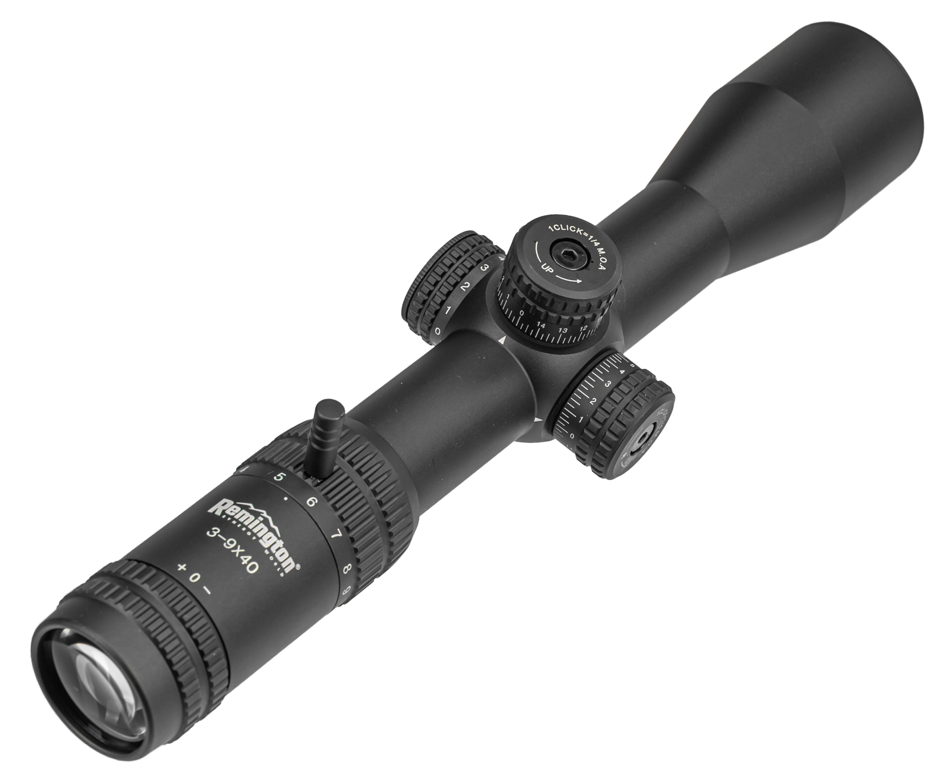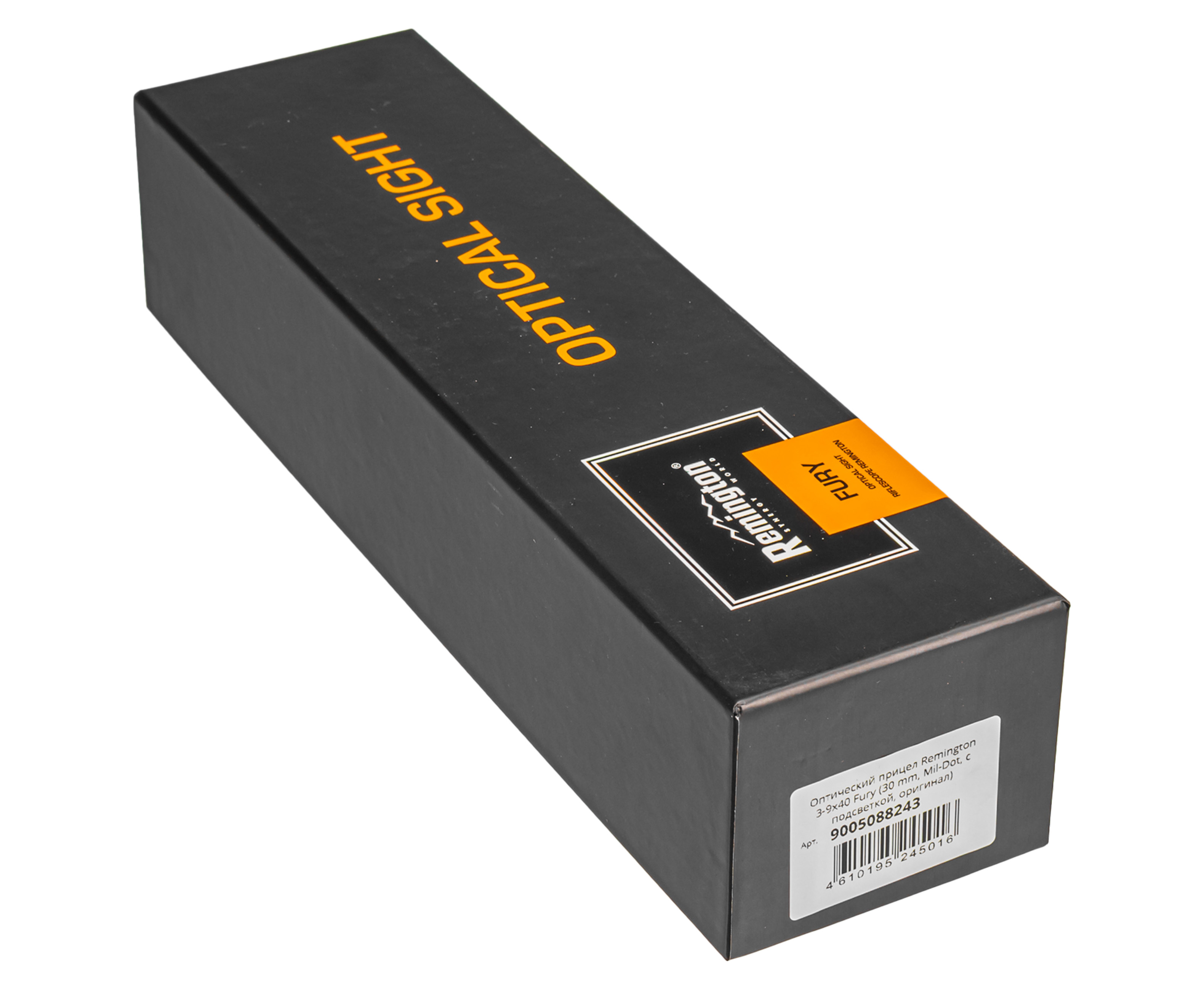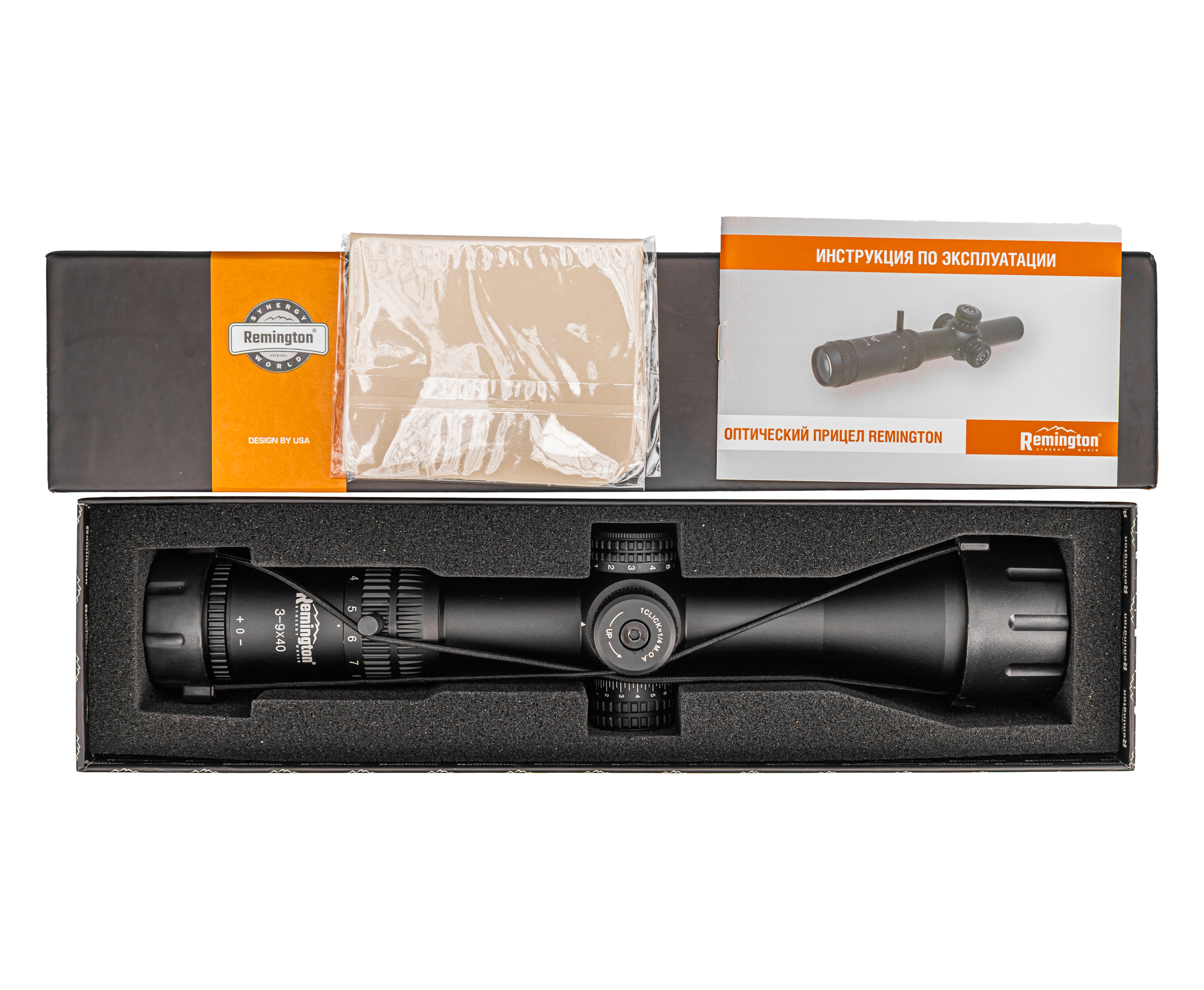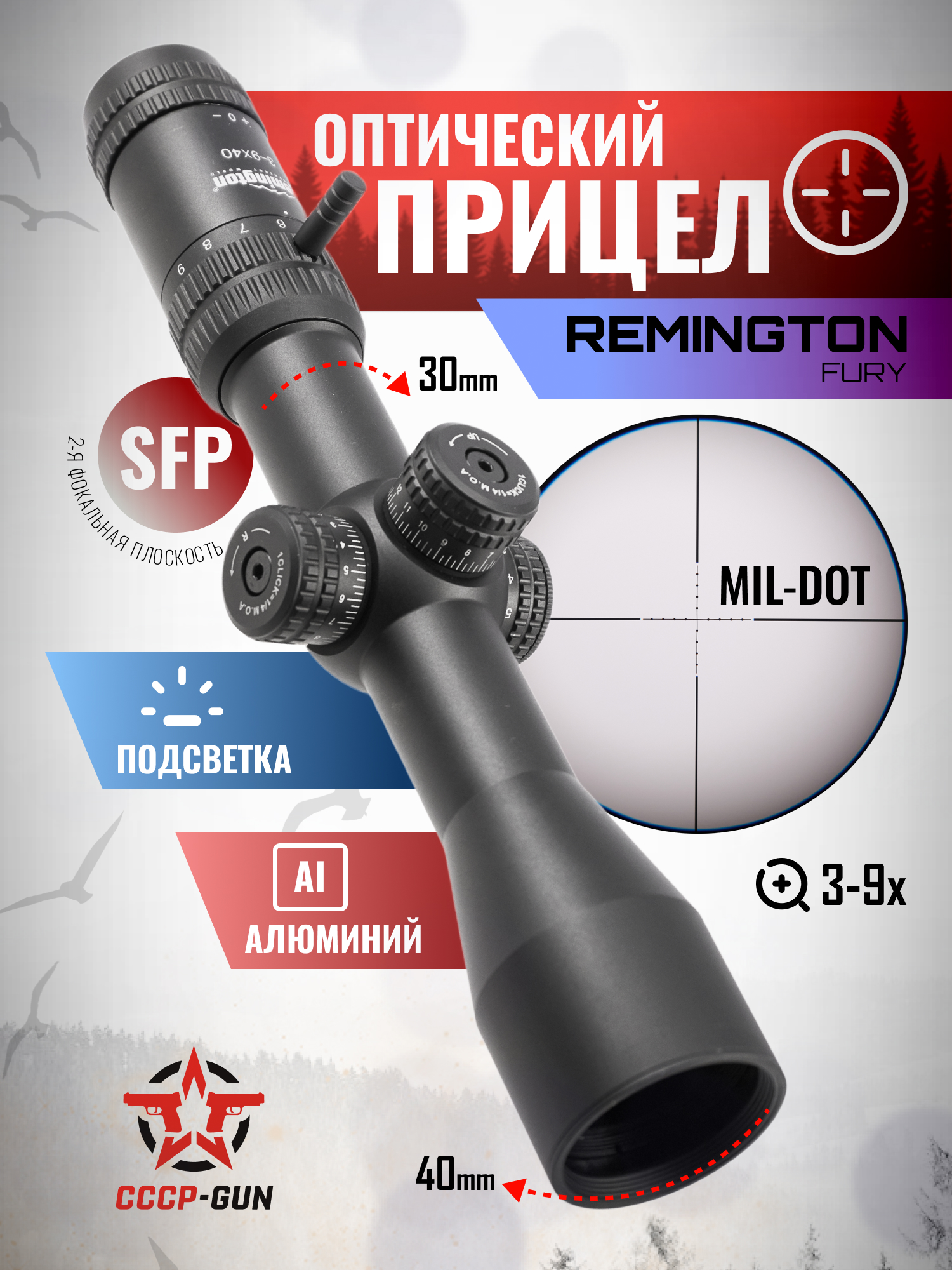 Прицел Remington оптический 3 9x40 Fury включает метку Mil-Dot, которая выполнена в виде двух линий с дополнительными отметками для расчета дистанции и поправок. Для юстировки положения марки во время пристрелки под конкретный образец оружия экземпляр имеет два маховика, вращение которых вызывает смещение перекрестия по вертикальной и горизонтальной осям с величиной шага 0.25 угловой минуты.