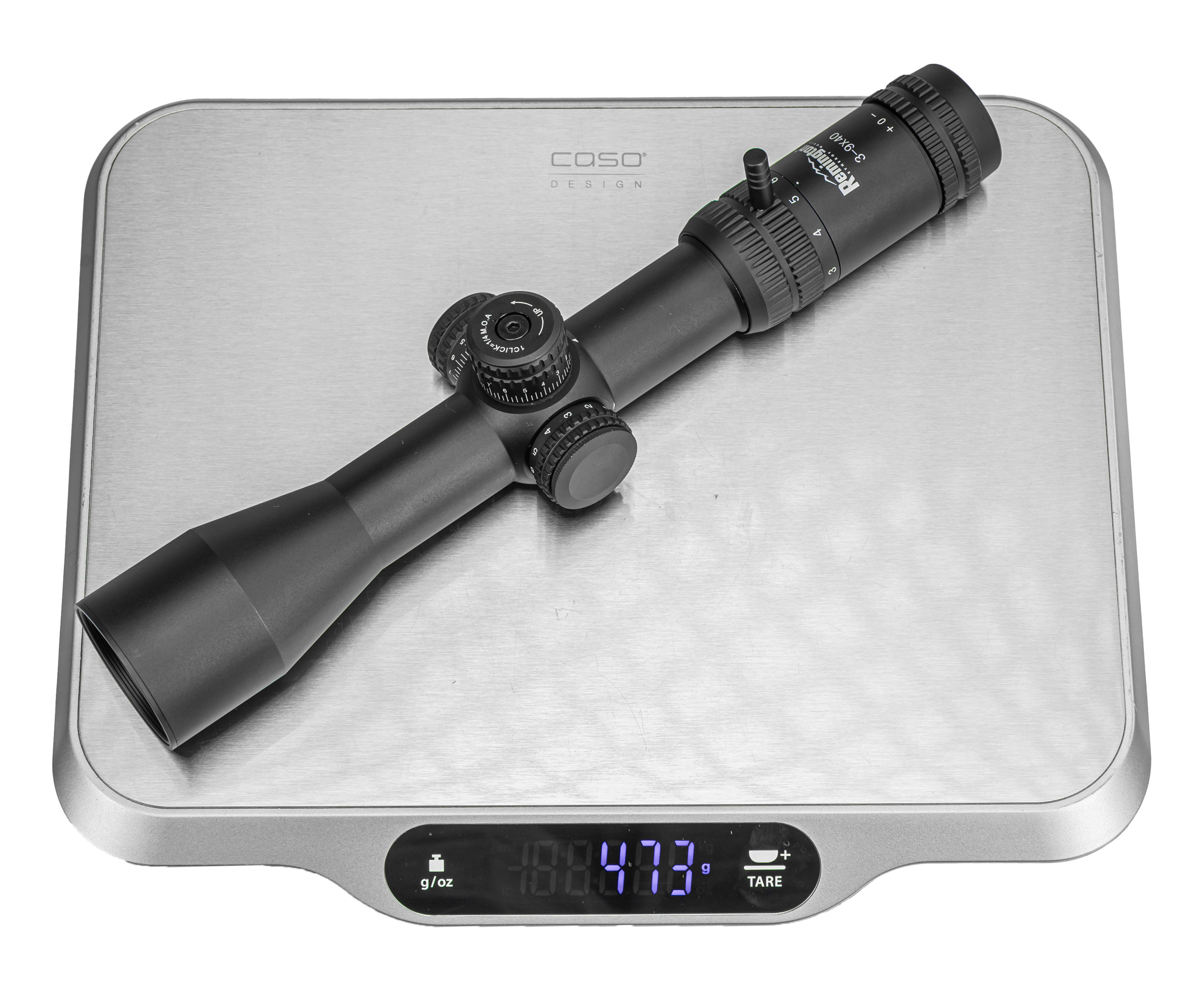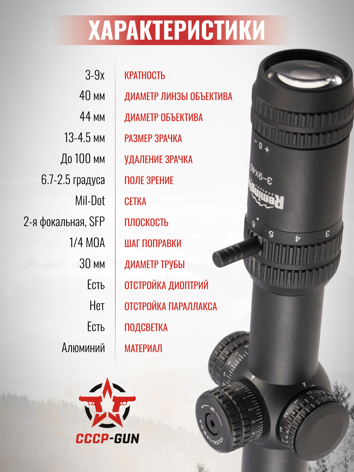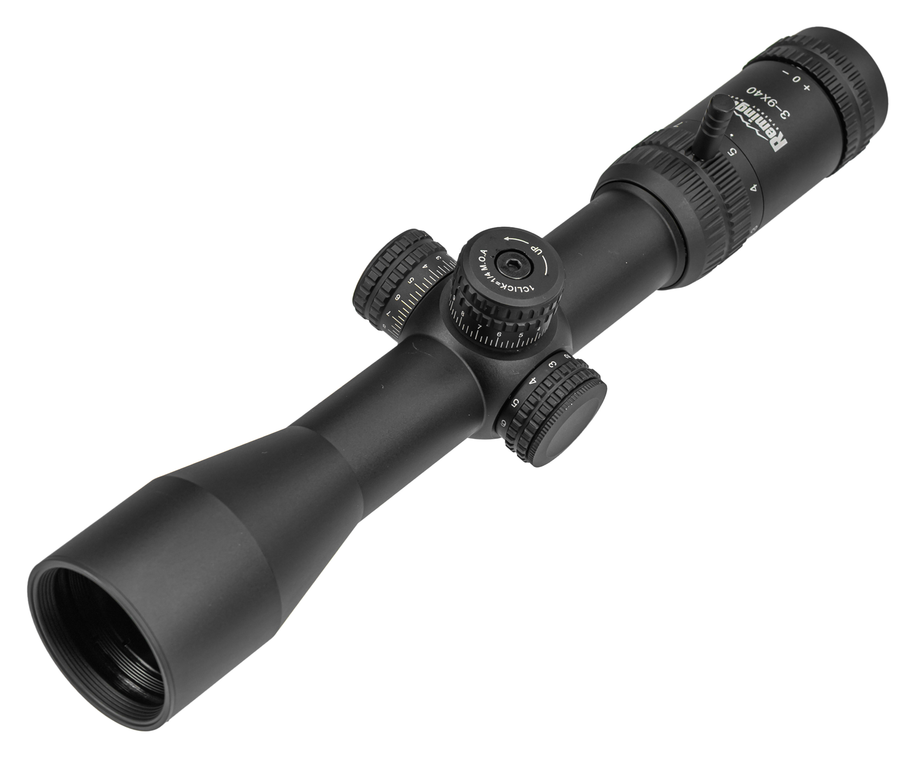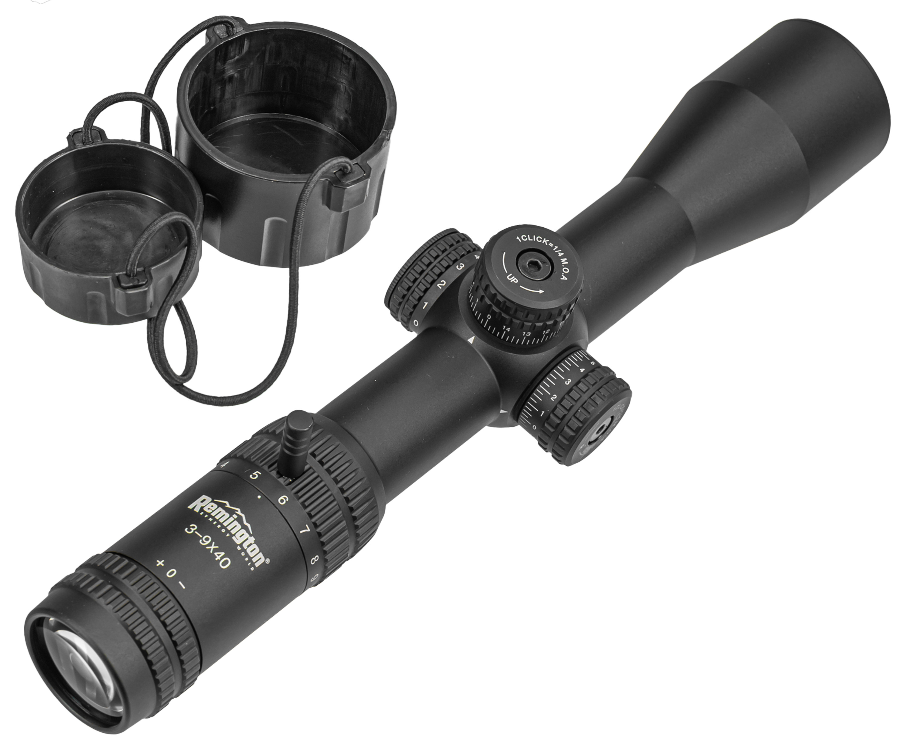 Прицел Remington оптический 3 9x40 Fury включает метку Mil-Dot, которая выполнена в виде двух линий с дополнительными отметками для расчета дистанции и поправок. Для юстировки положения марки во время пристрелки под конкретный образец оружия экземпляр имеет два маховика, вращение которых вызывает смещение перекрестия по вертикальной и горизонтальной осям с величиной шага 0.25 угловой минуты.