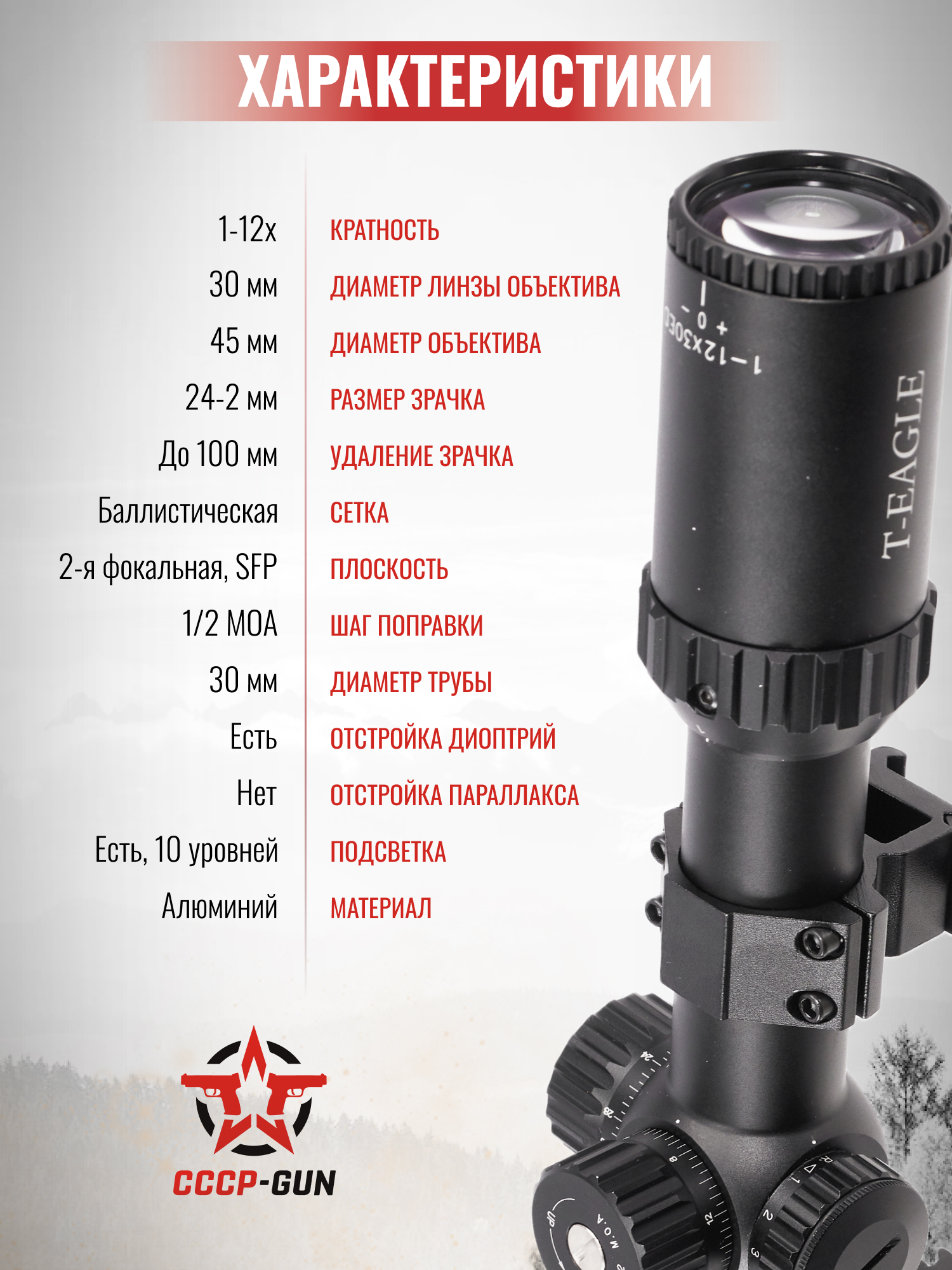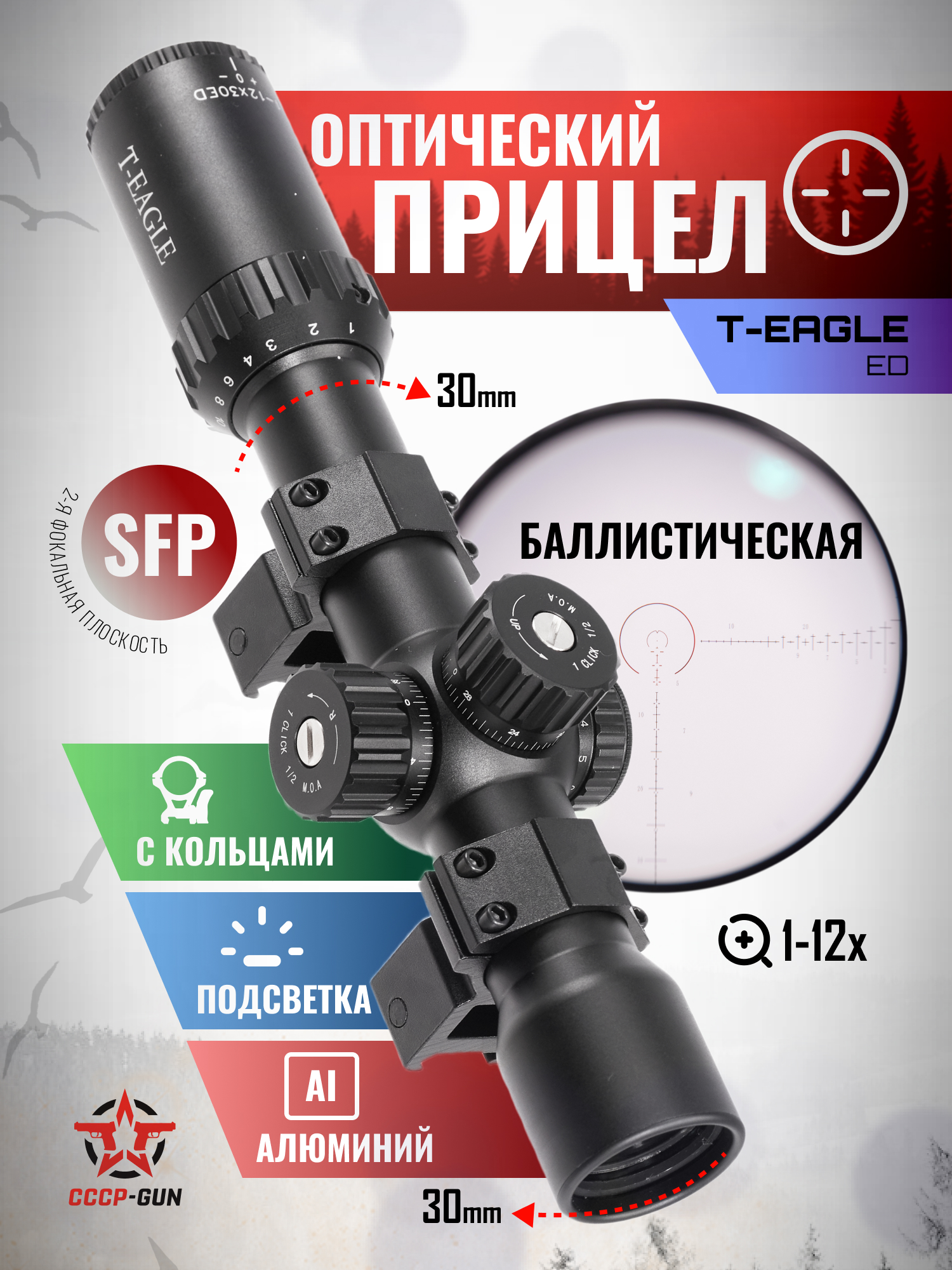 Оптический прицел T-Eagle SR 10x44 SF IR (30 мм, подсветка)