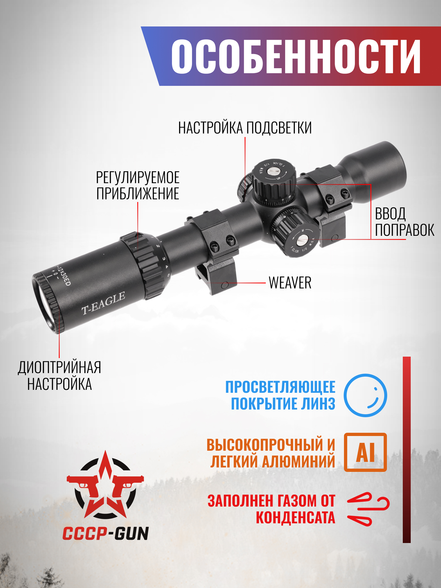 Оптический прицел T-Eagle MR 1-8x24 IR-RU SFP (30 мм, подсветка)