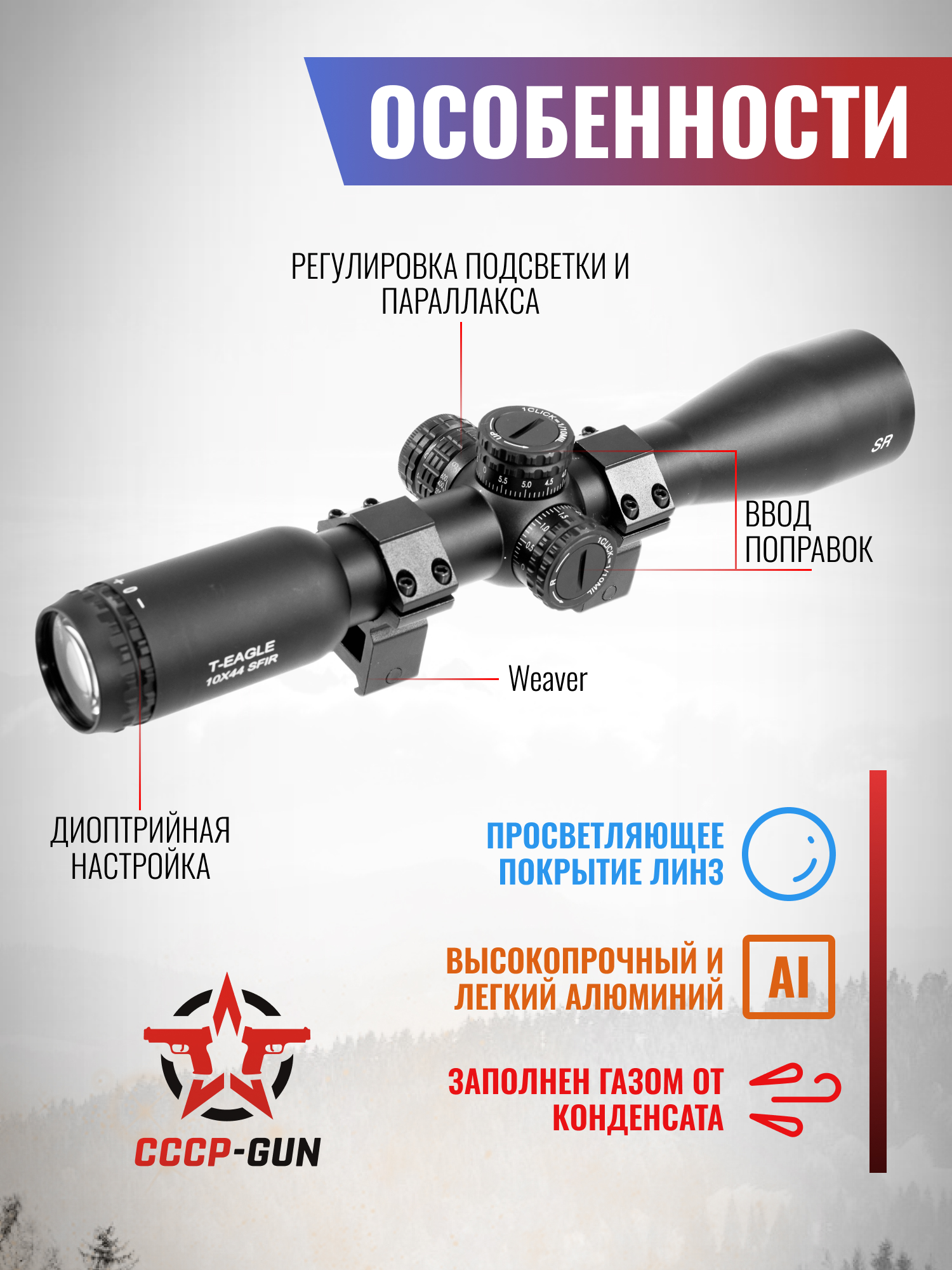 Оптический прицел T-Eagle TF 4-16x44 AO IR FP SFP (25.4 мм, подсветка)