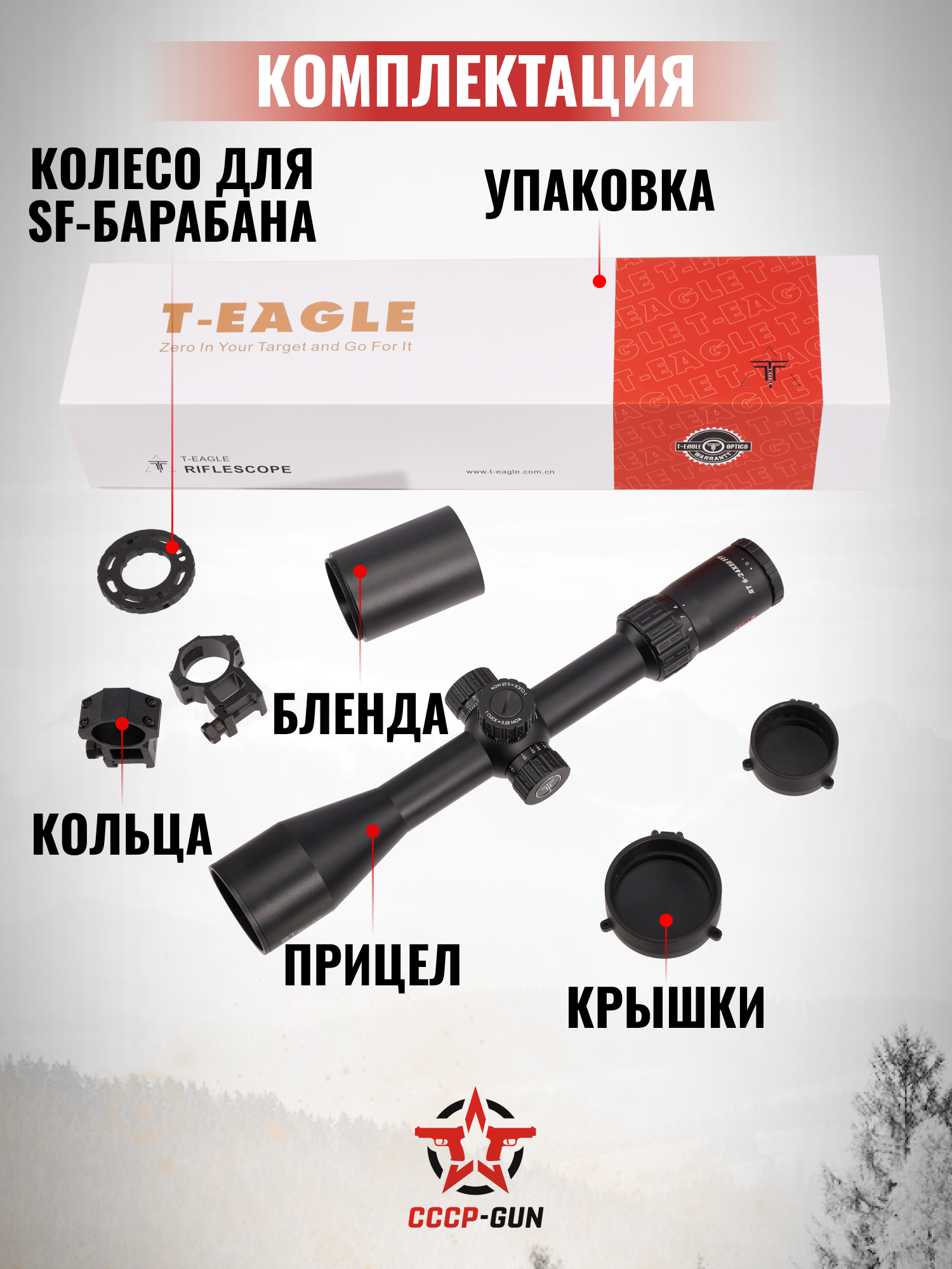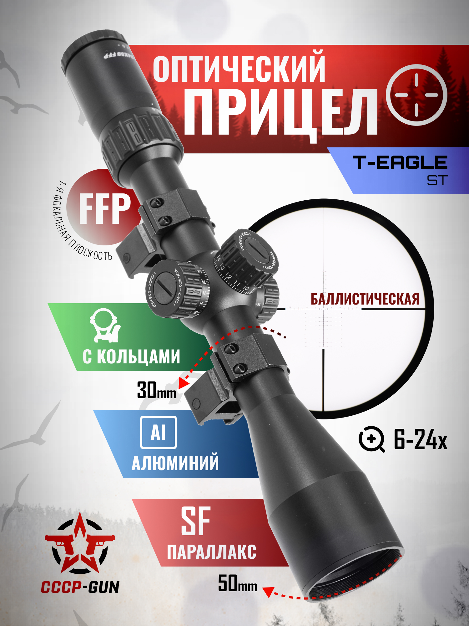 Оптический прицел T-Eagle EOS 6-24x50 AOE HK SFP (25.4 мм, подсветка)