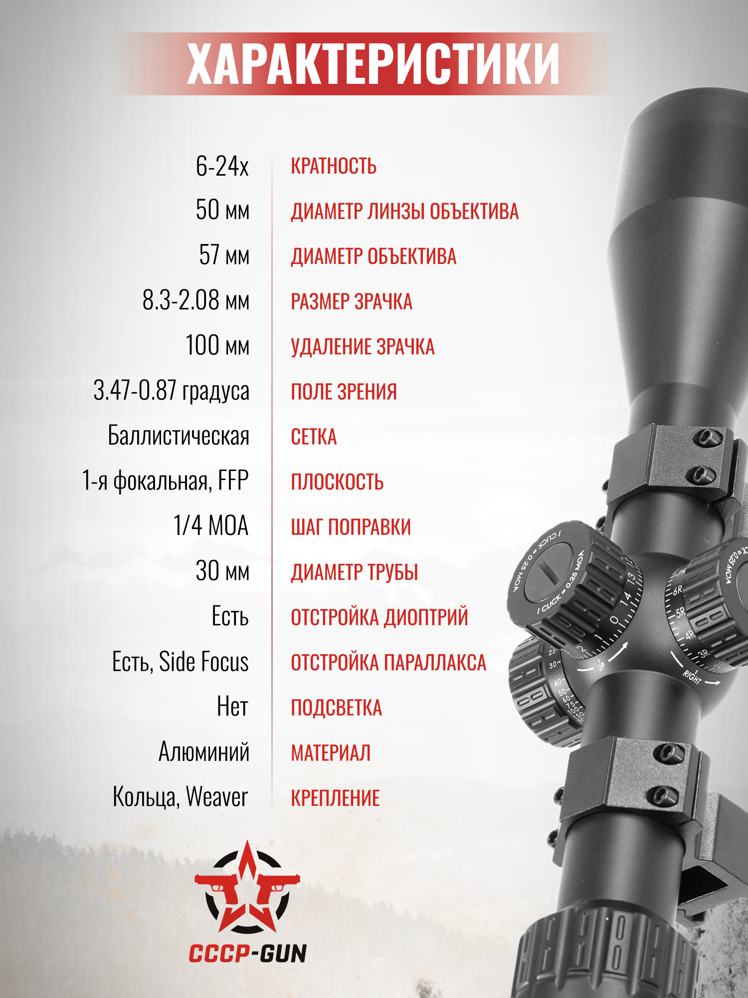 Оптический прицел T-Eagle MR 1-6x24 IR-RU SFP (30 мм, подсветка)