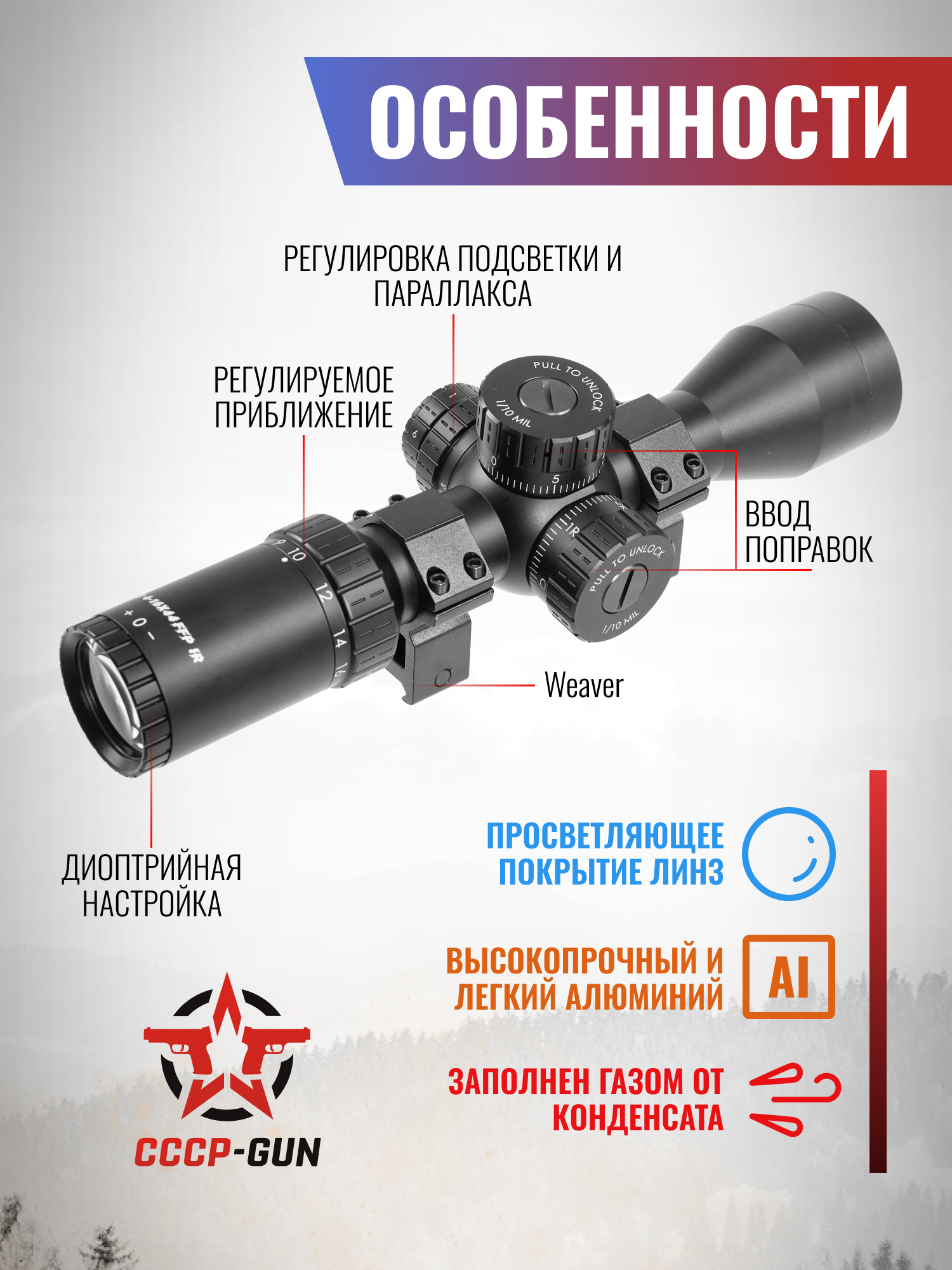 Оптический прицел T-Eagle TF 4-16x44 AO IR FP SFP (25.4 мм, подсветка)