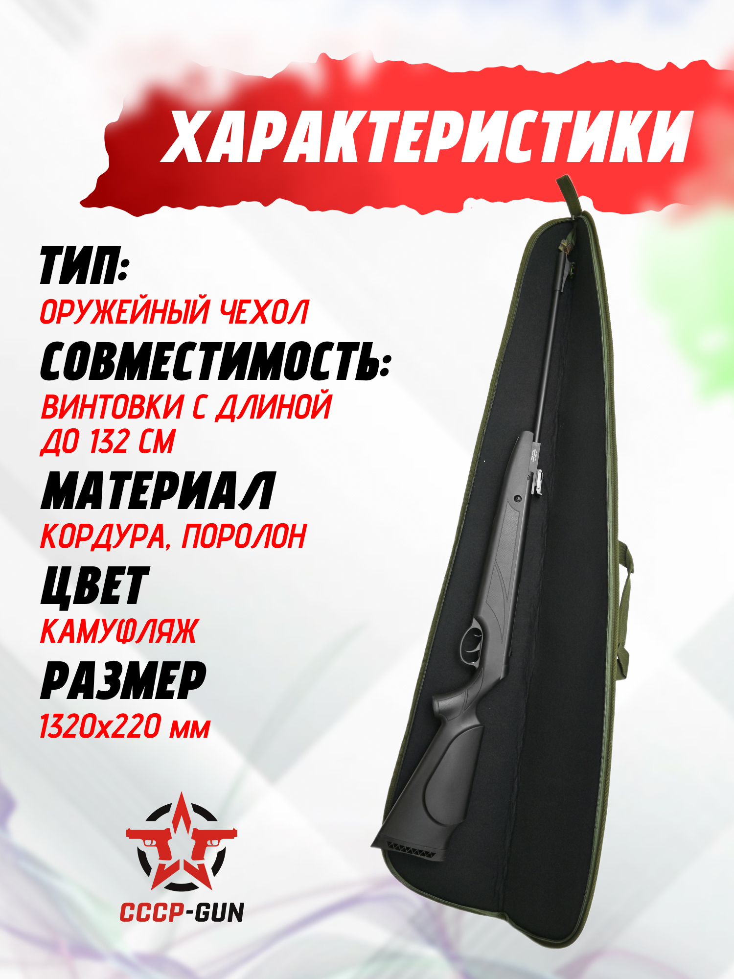 Оружейный чехол Brave Hunter BGA122 (с карманами, 100-122 см, универсальный, высота 25 см)